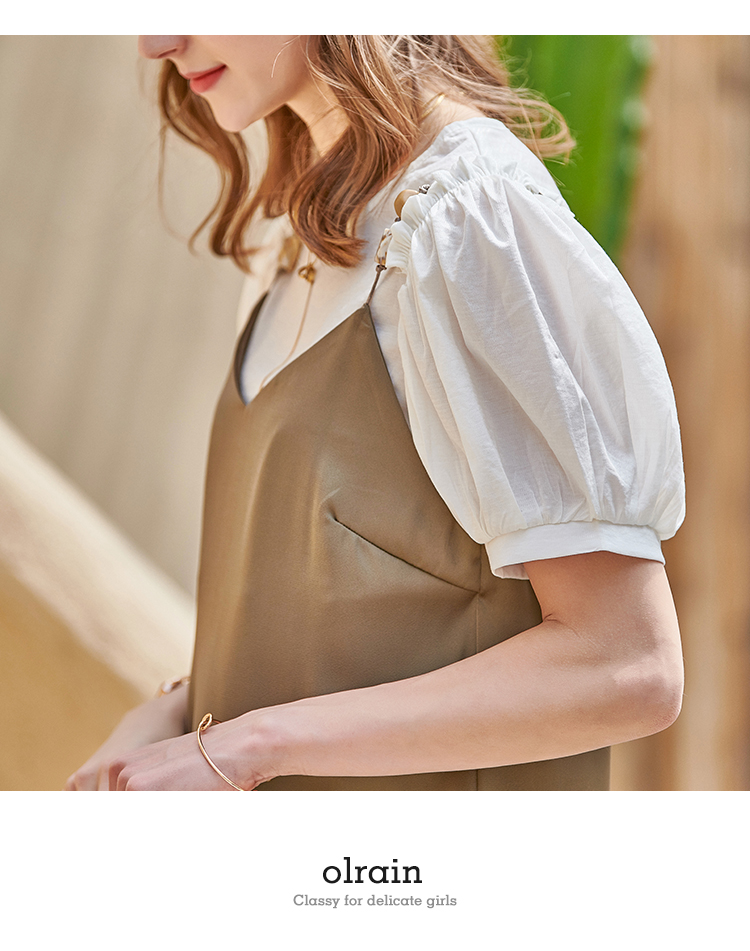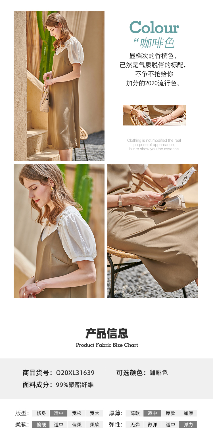 欧芮儿杏粉色连衣裙2021新款夏收腰显瘦法式泡泡纱优雅仙气女神裙