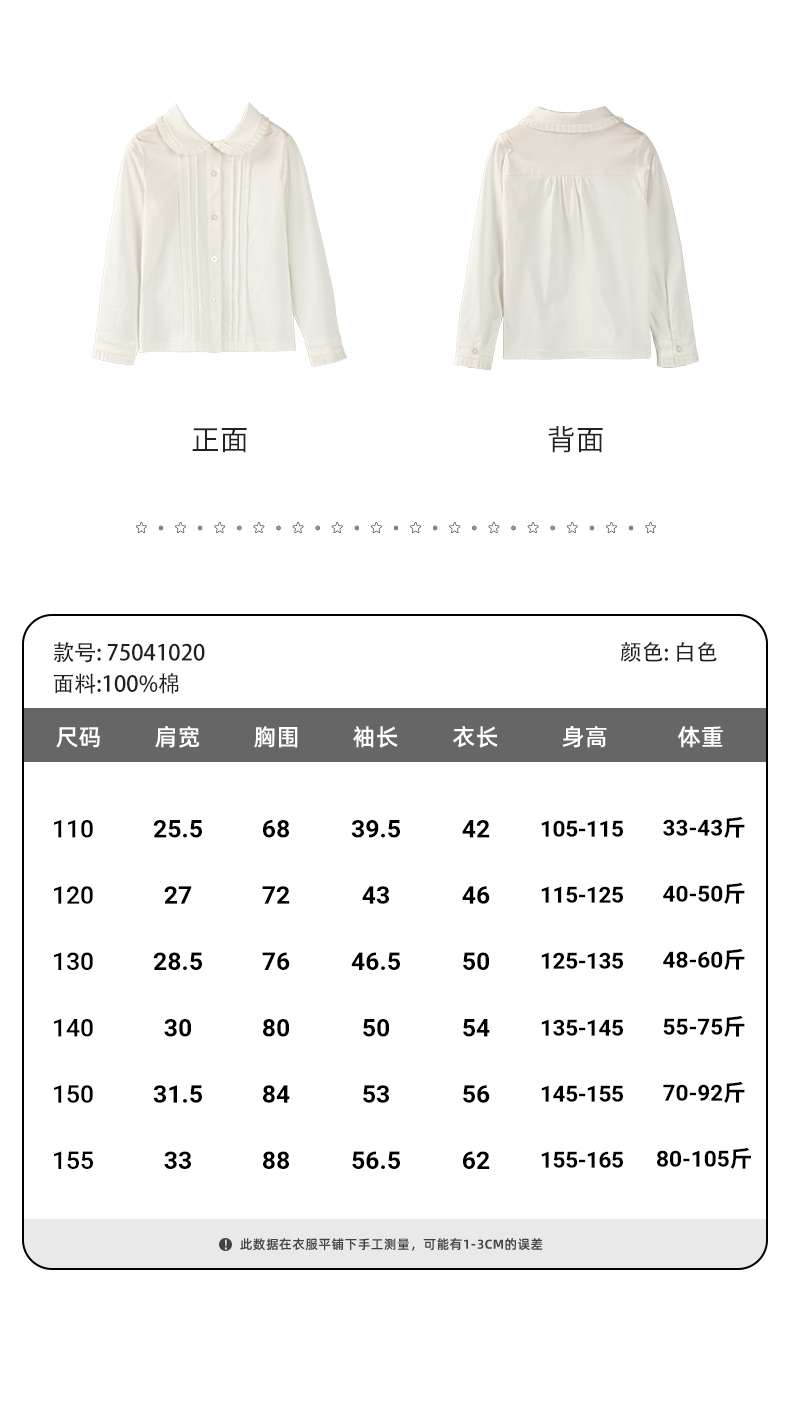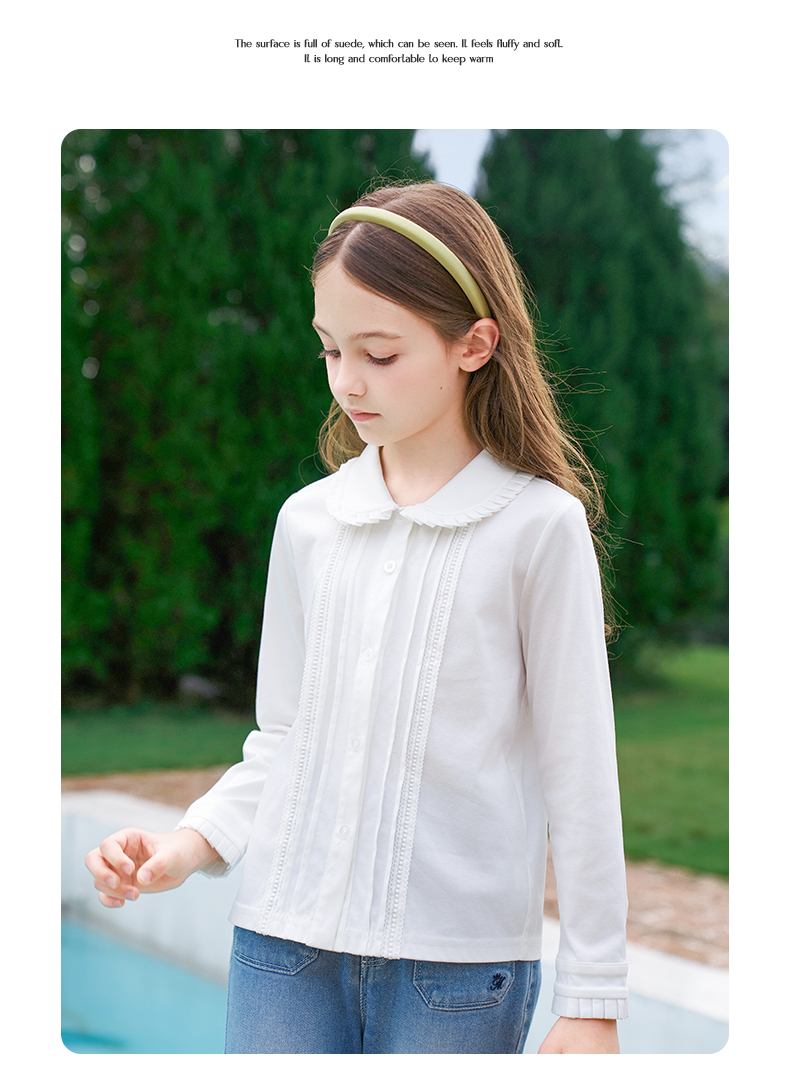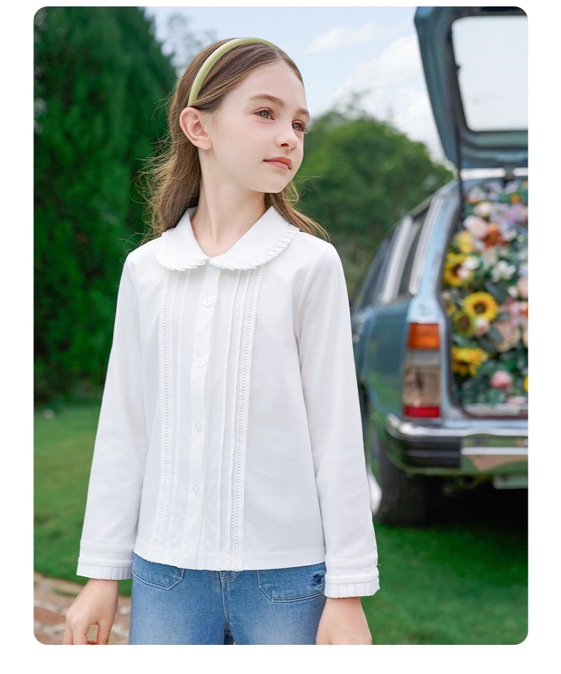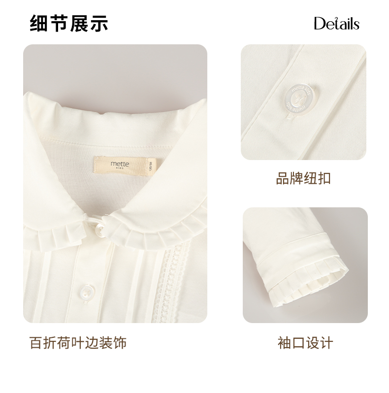 mettekids女童衬衫2024春秋白色甜美百搭衬衣儿童纯棉上衣童装