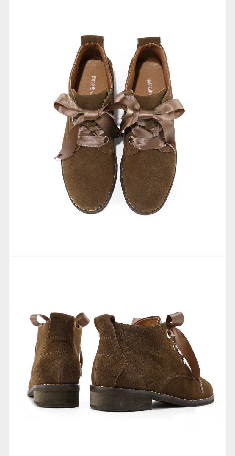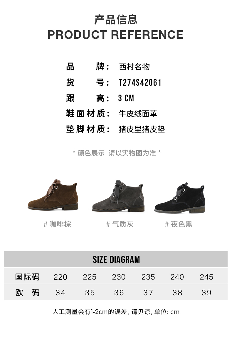 西村名物春季款低跟短靴女英伦风低帮切尔西反绒面马丁靴子T274S42061