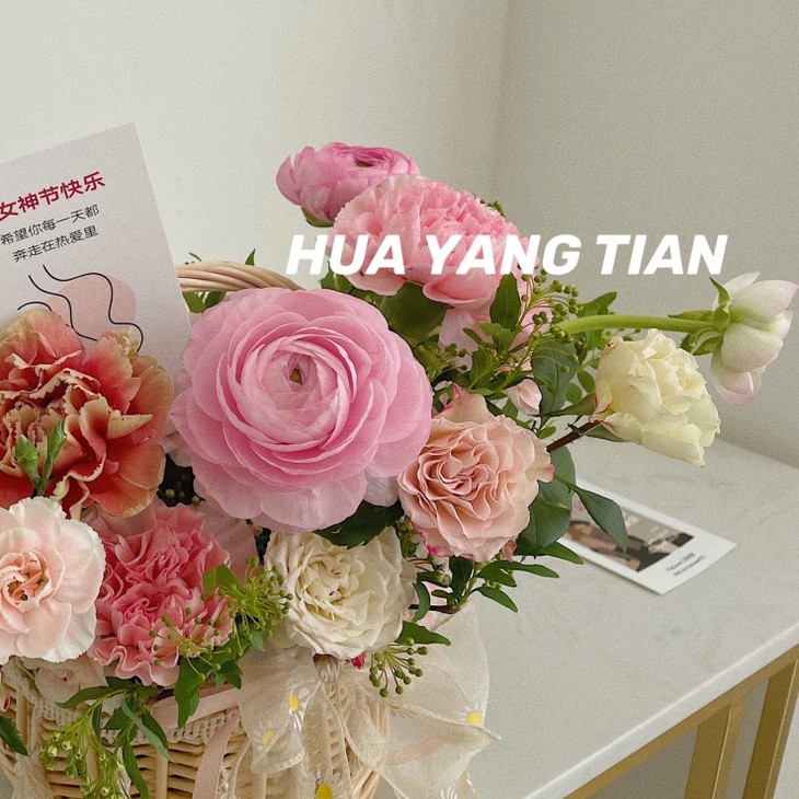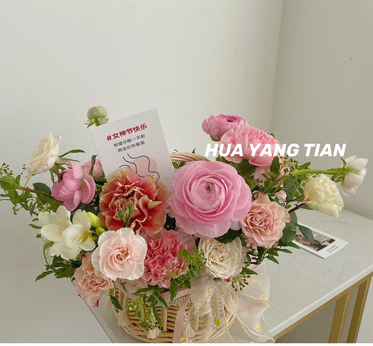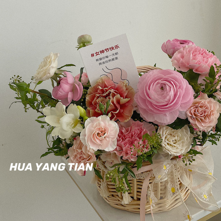满满一篮盛放的鲜花