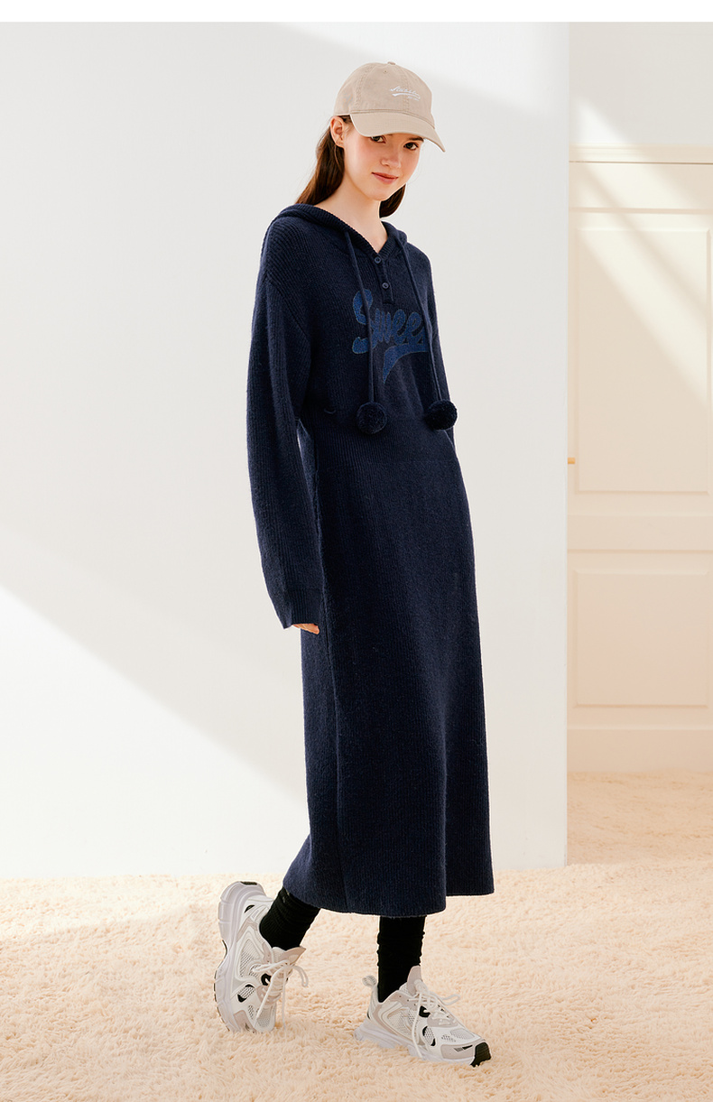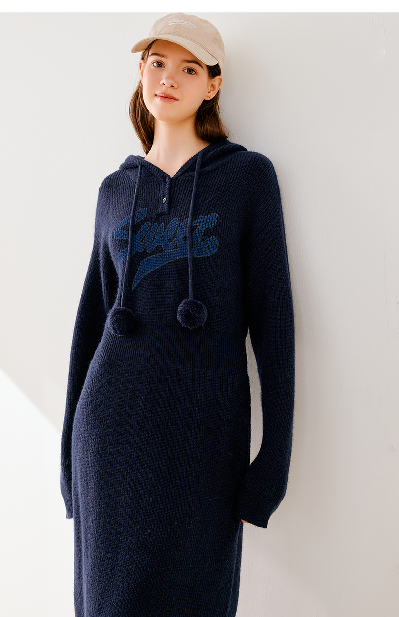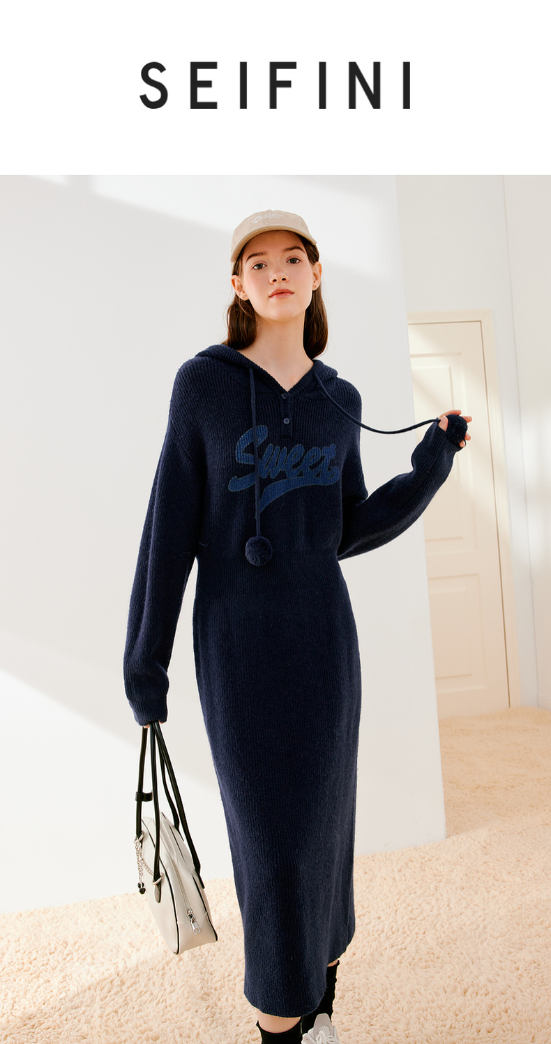 【严选】诗凡黎冬连帽字母印花针织连衣裙SEB190881
