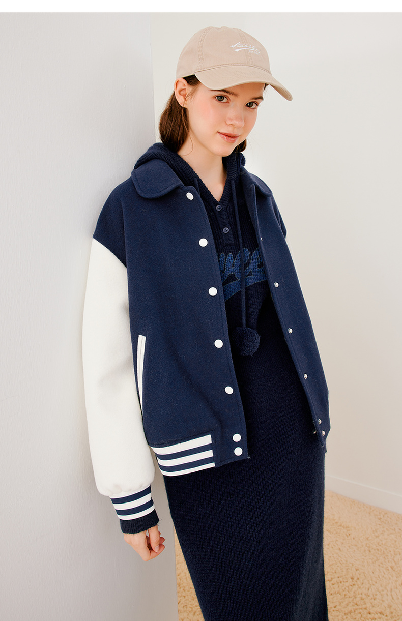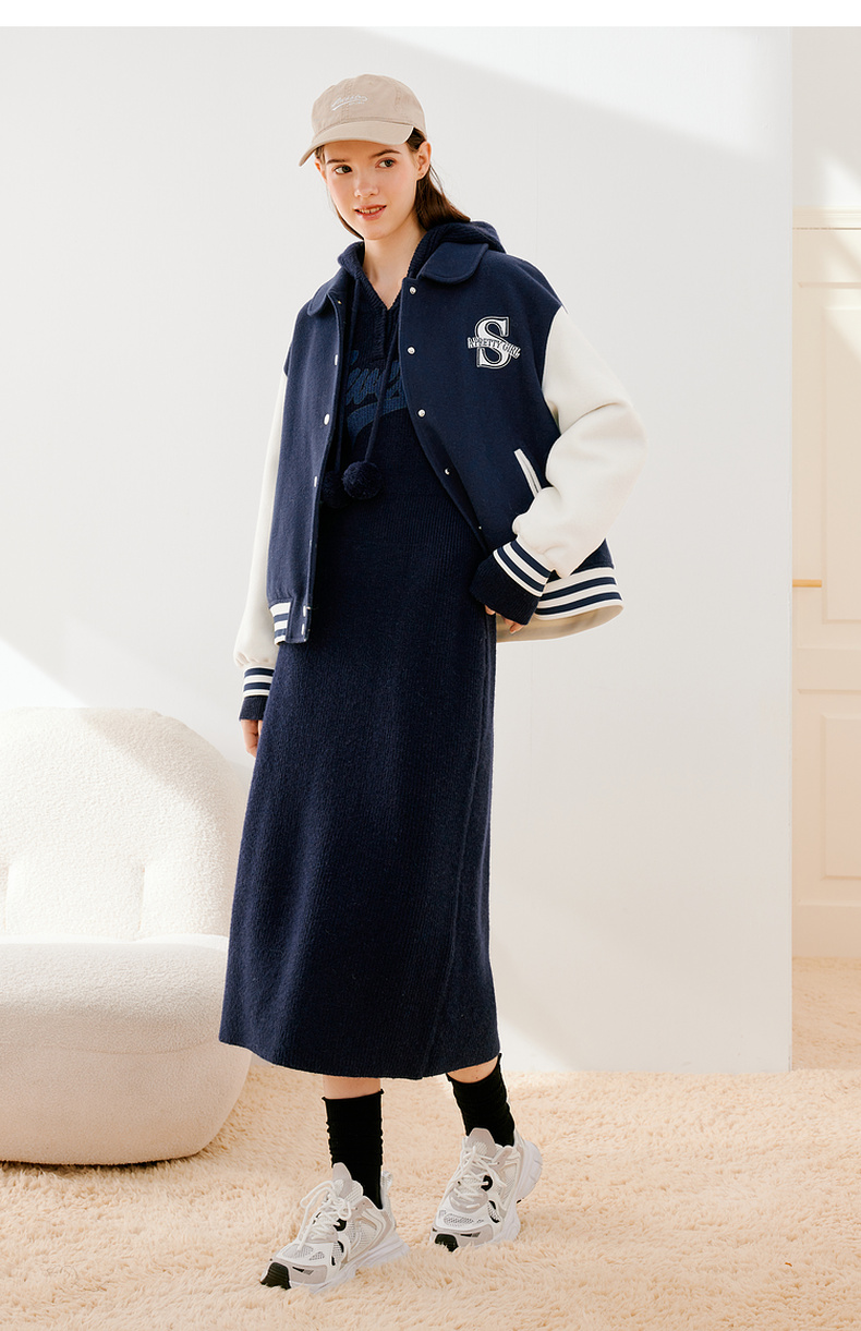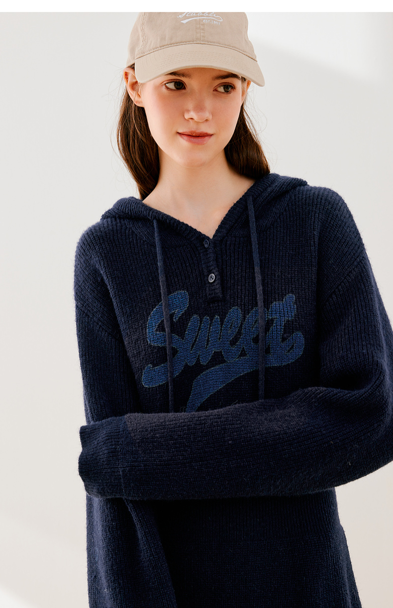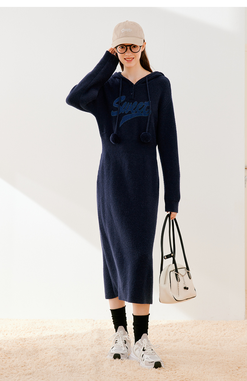 【严选】诗凡黎冬连帽字母印花针织连衣裙SEB190881