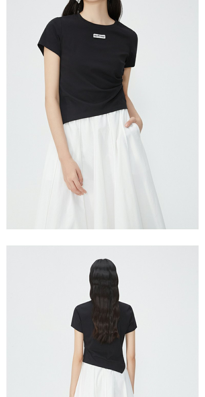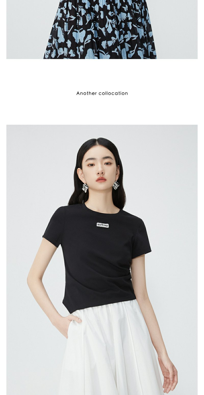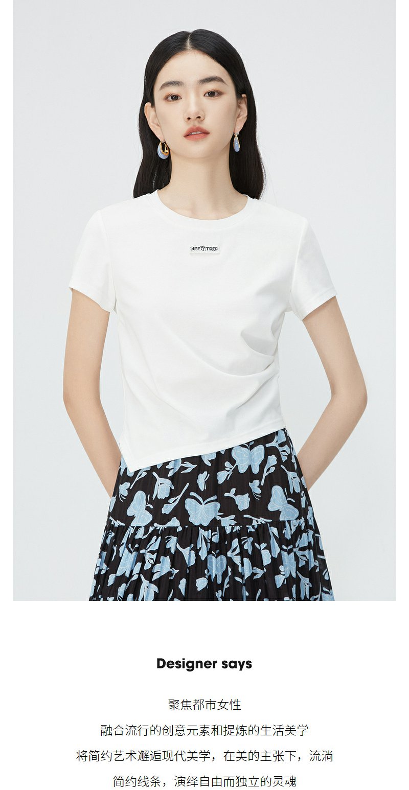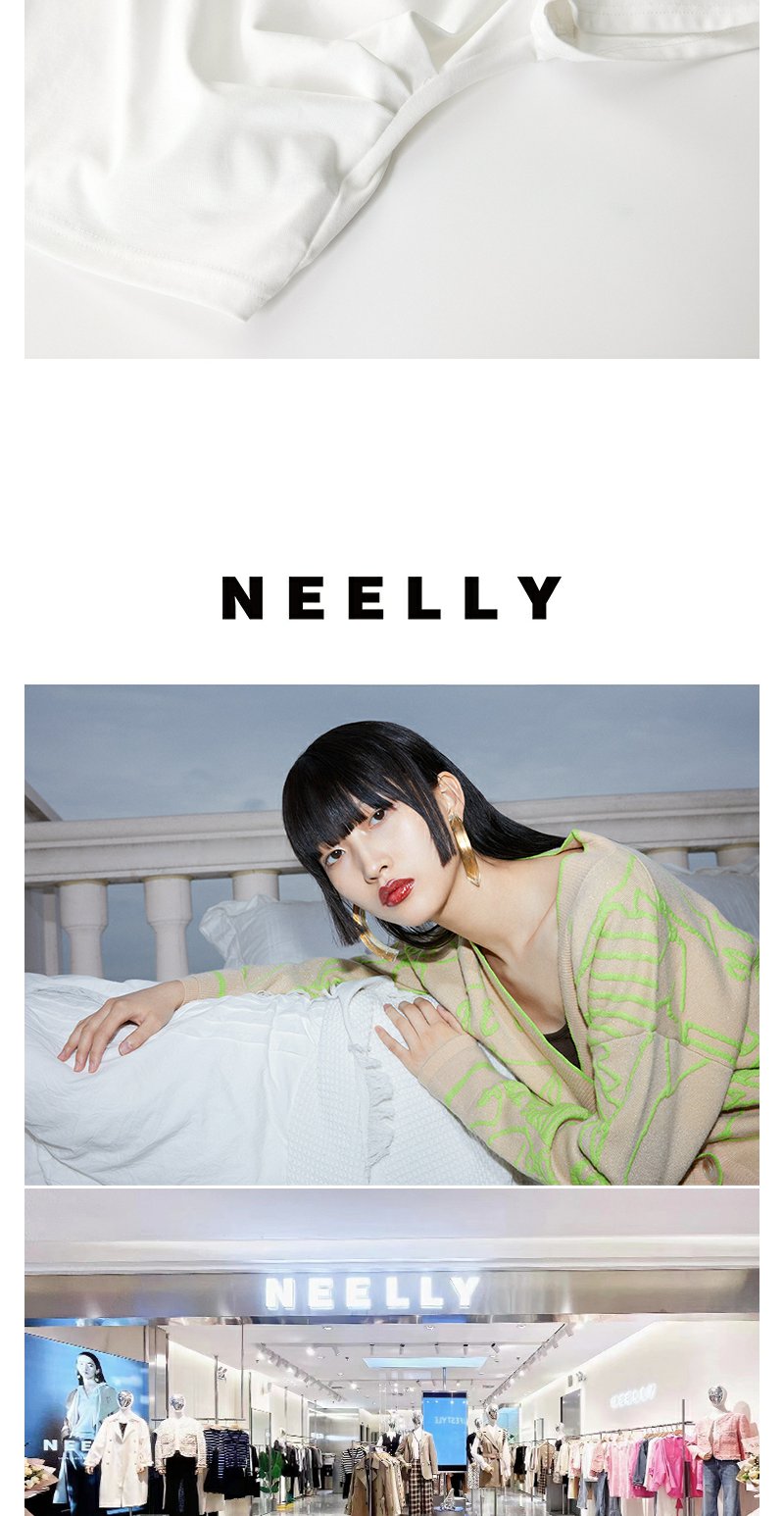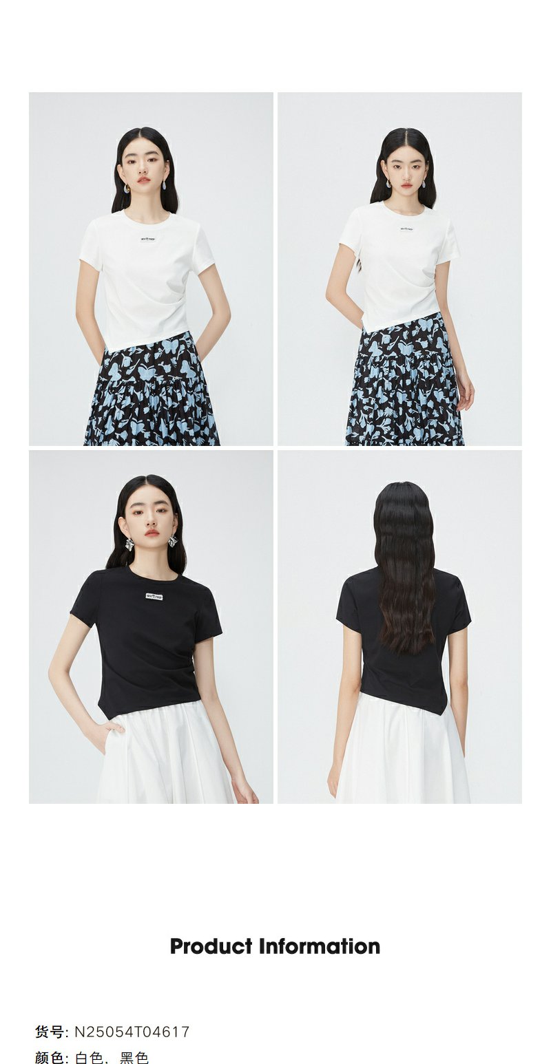 NEELLY纳俪商场同款夏新款正肩字母T恤女修身显瘦时尚不规则上衣N25054T04617