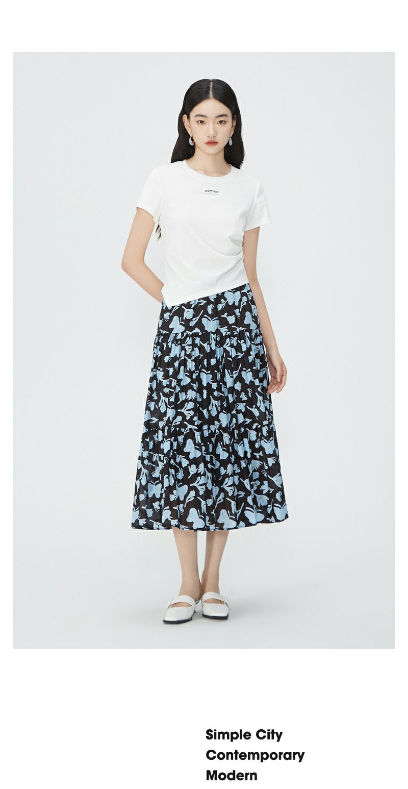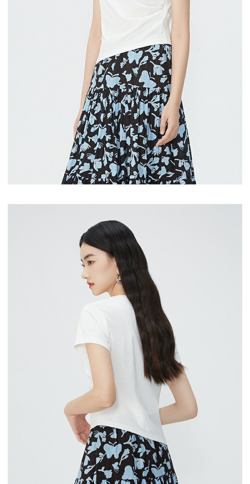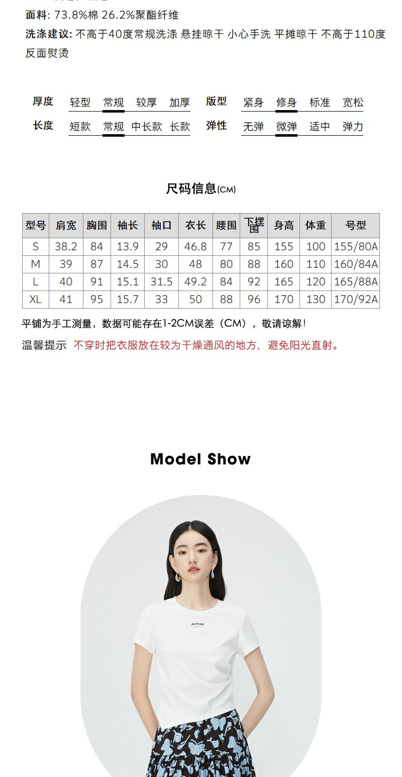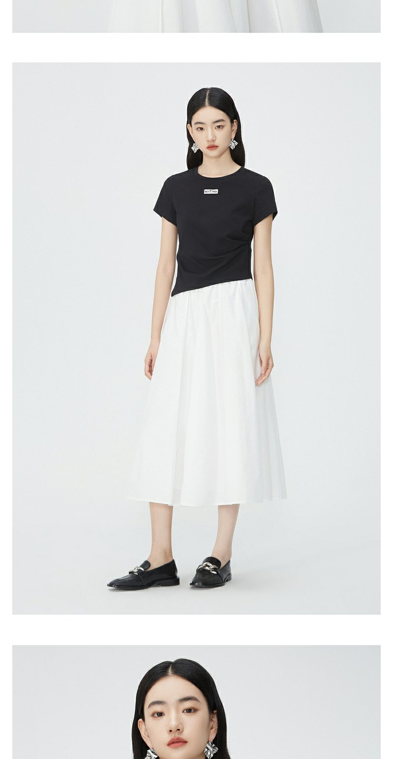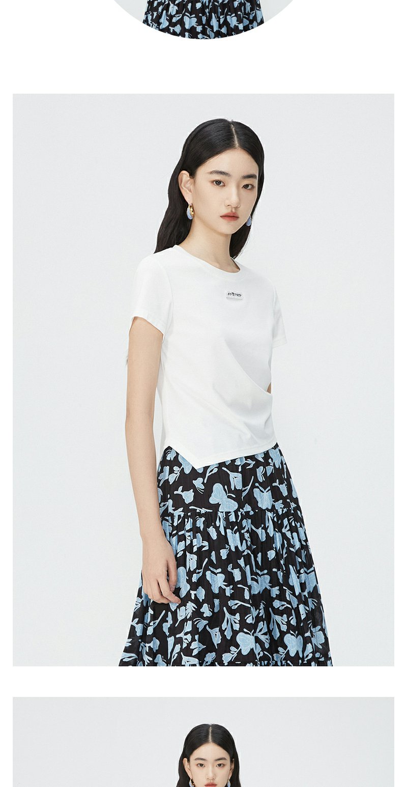 NEELLY纳俪商场同款夏新款正肩字母T恤女修身显瘦时尚不规则上衣N25054T04617