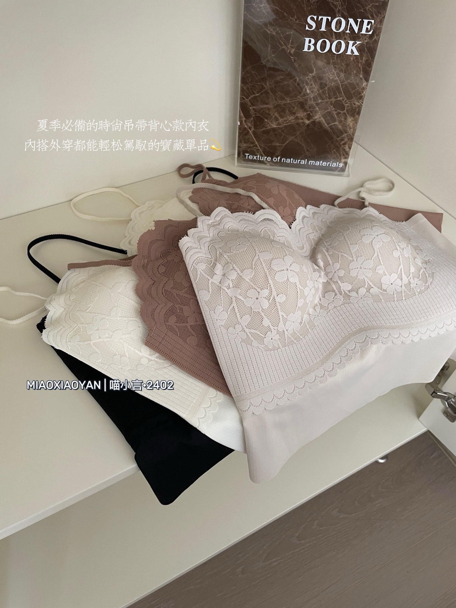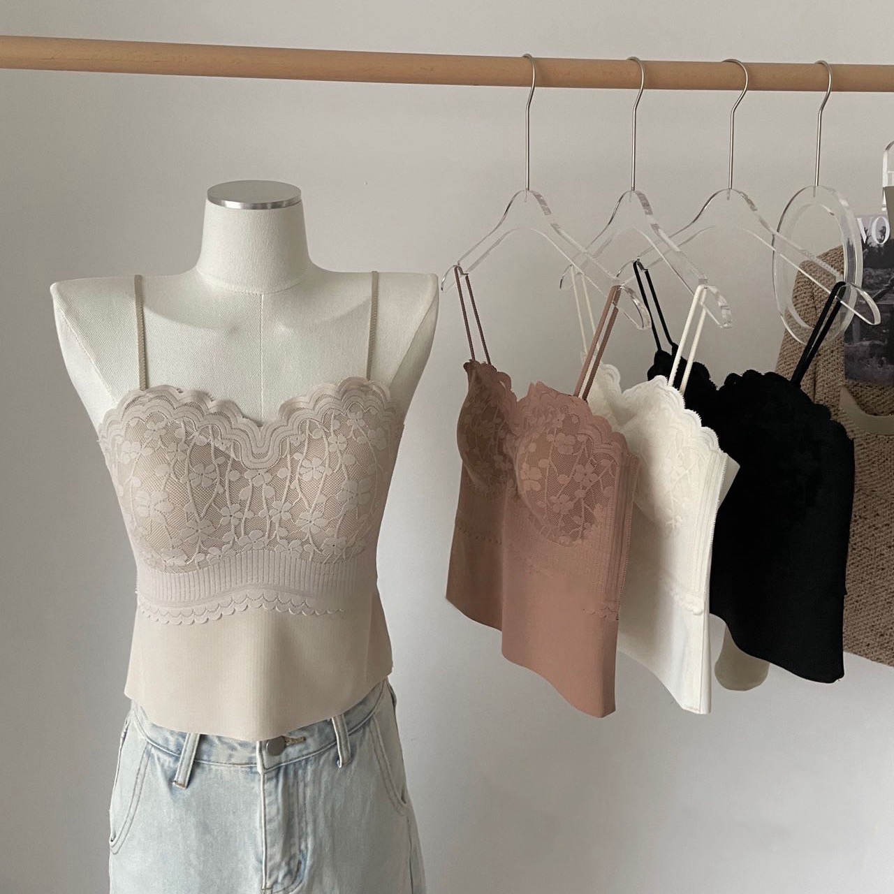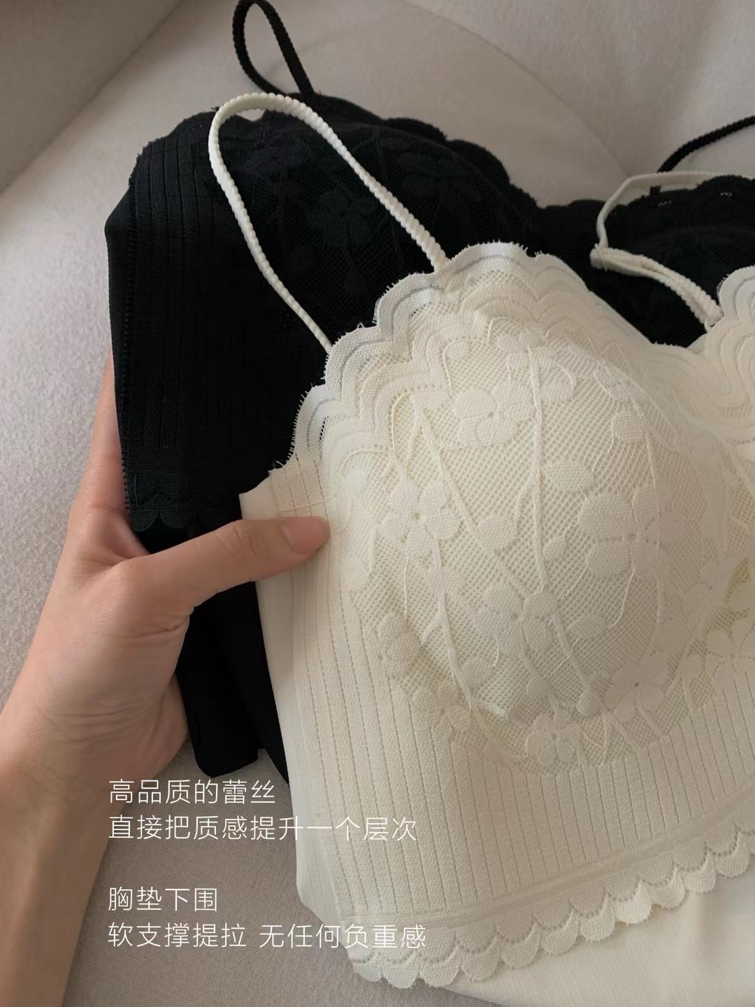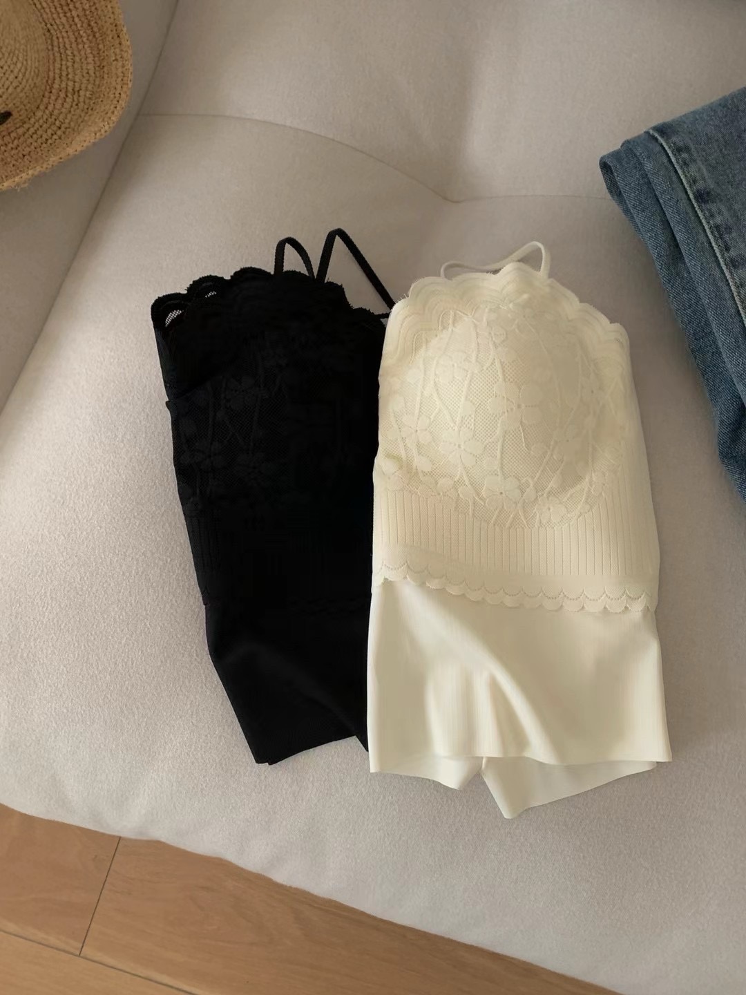 老米优品🎈2件包邮《高颜值🌸微醺蕾丝免文胸小吊带》自带胸垫,浪漫蕾丝小花纹,满满少女心!DD240516A