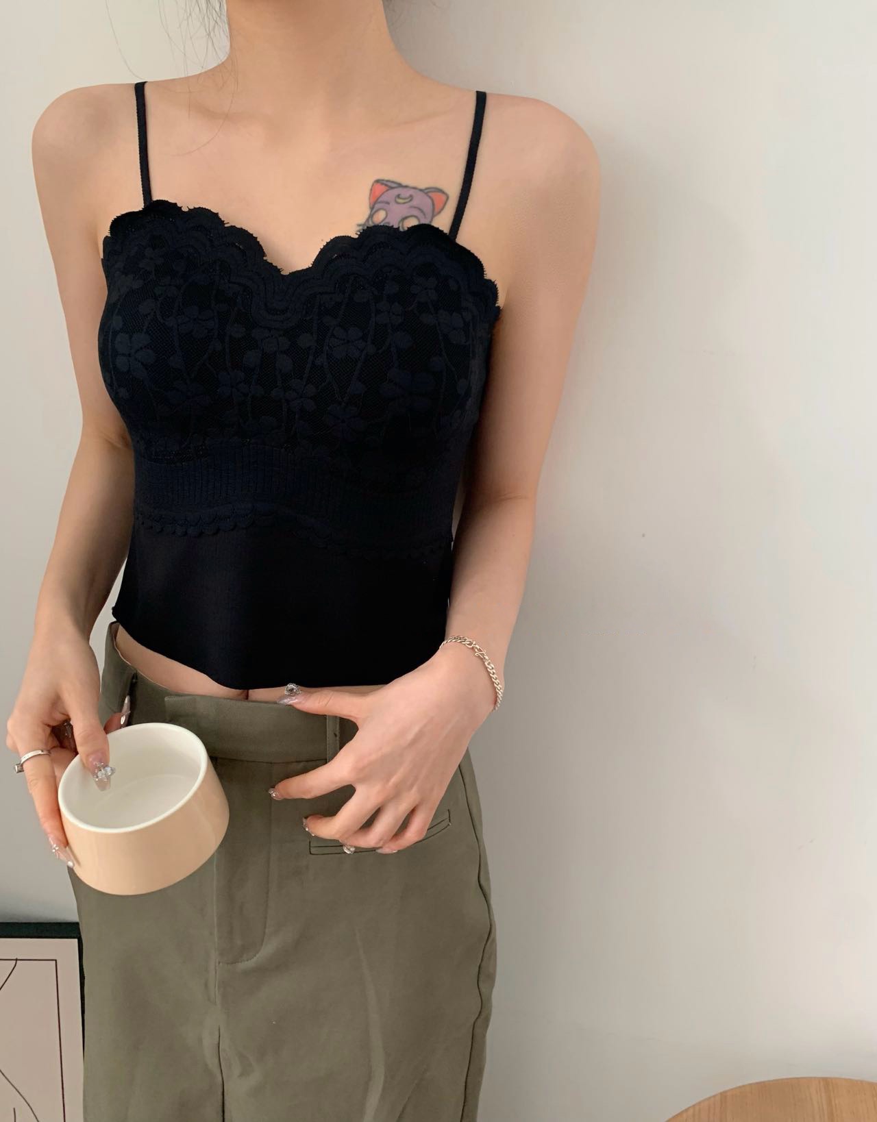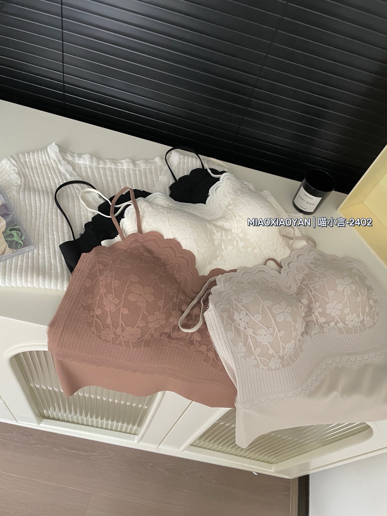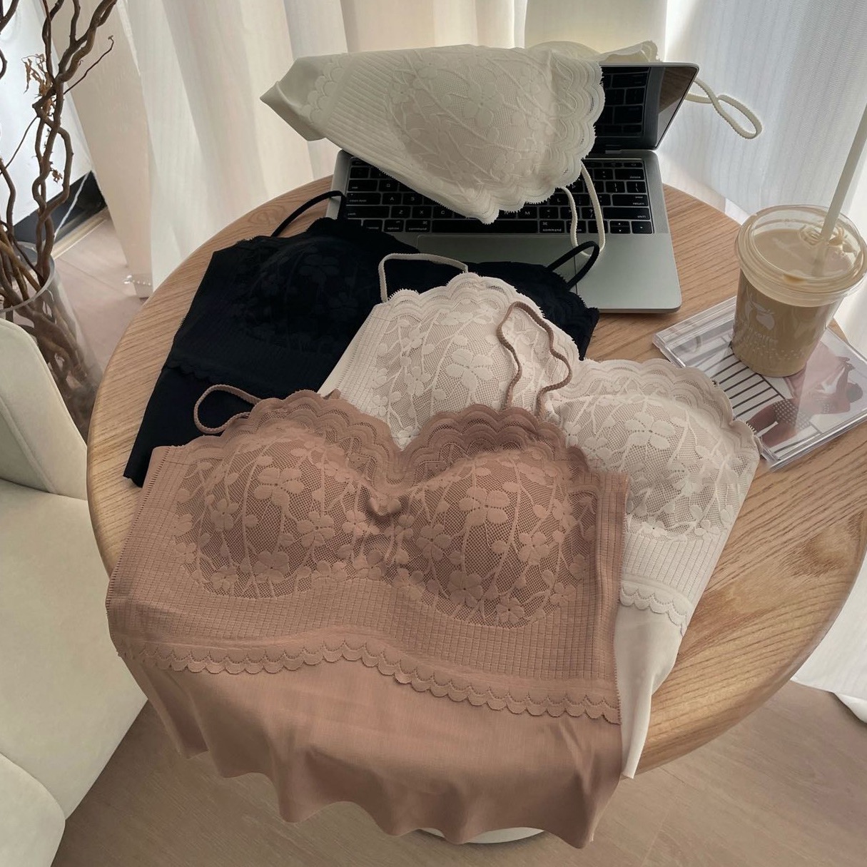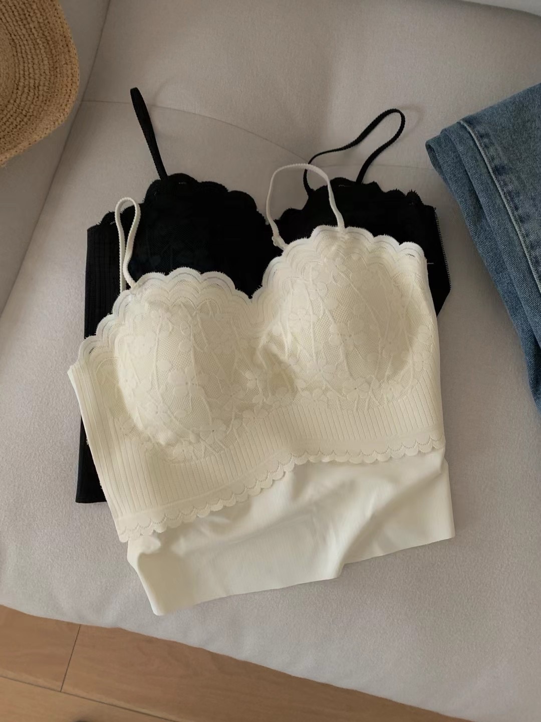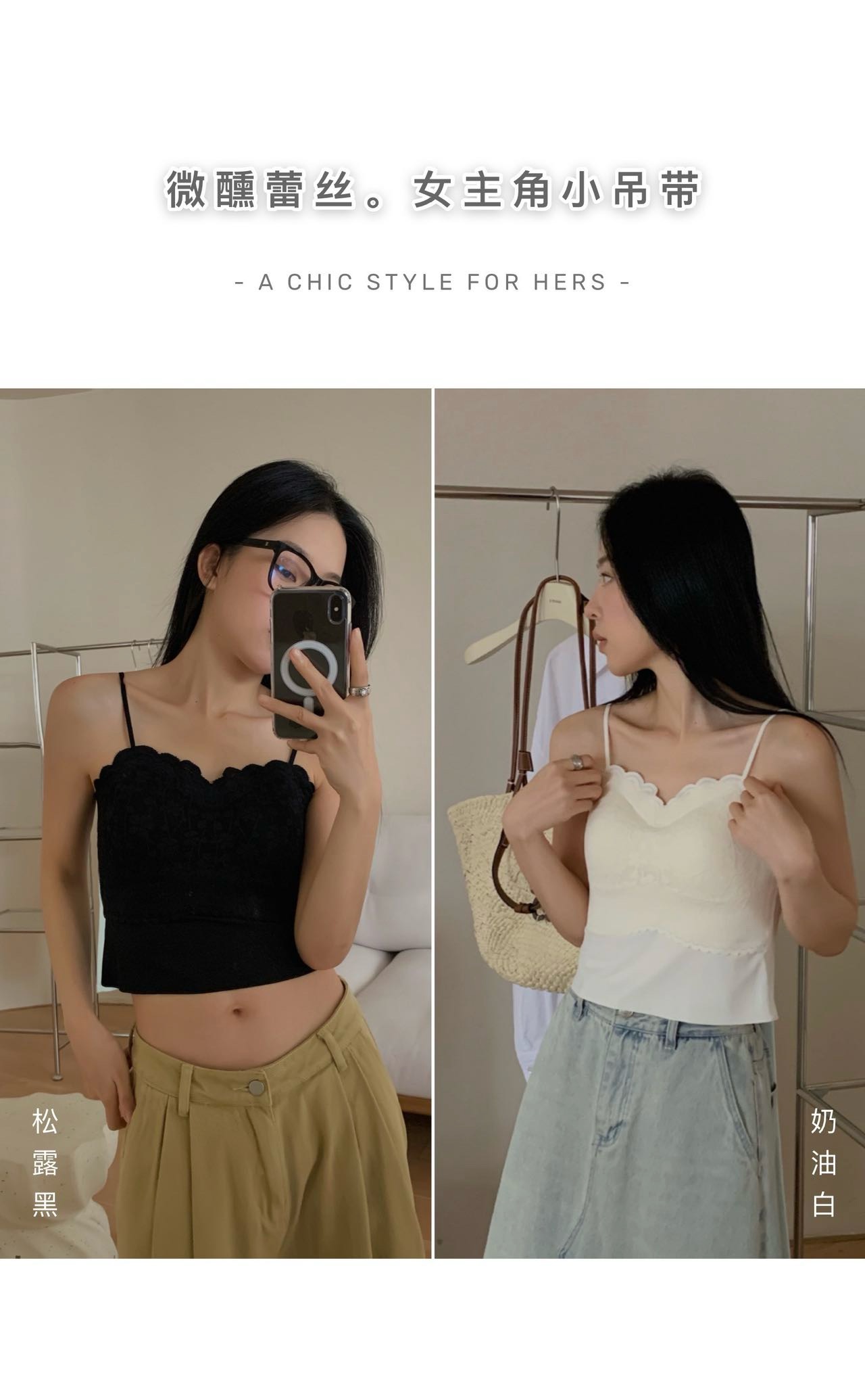 老米优品🎈2件包邮《高颜值🌸微醺蕾丝免文胸小吊带》自带胸垫,浪漫蕾丝小花纹,满满少女心!DD240516A