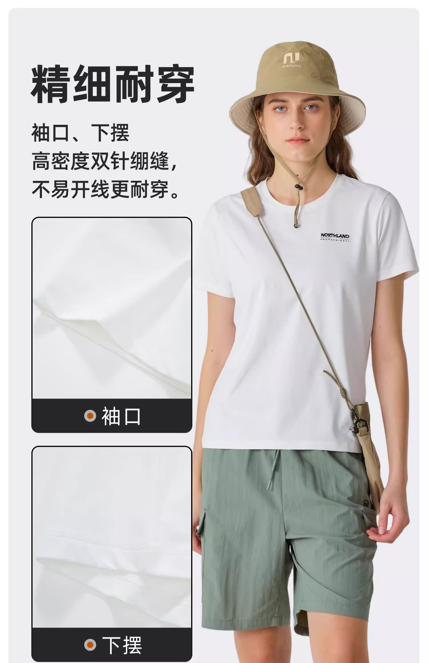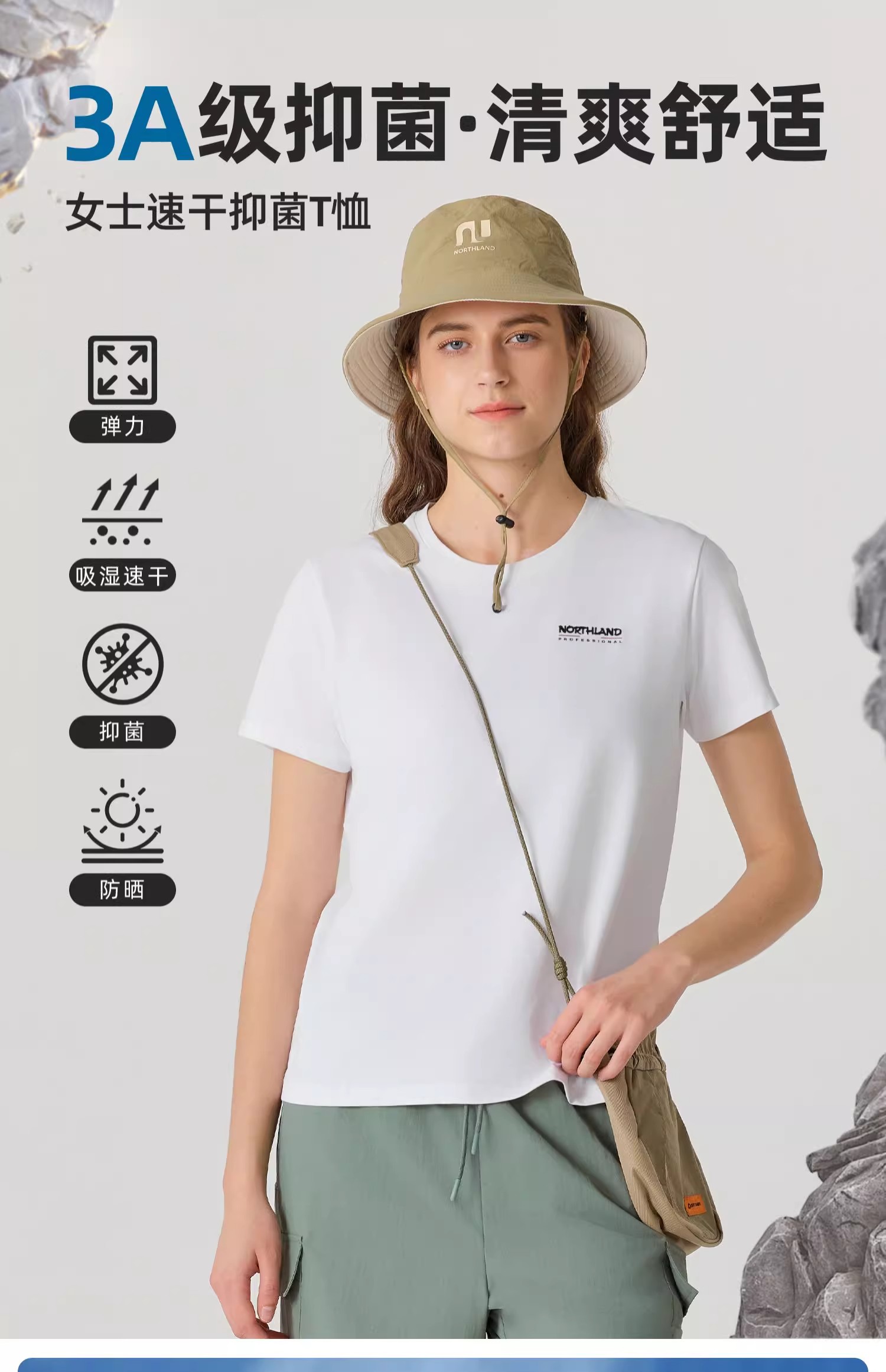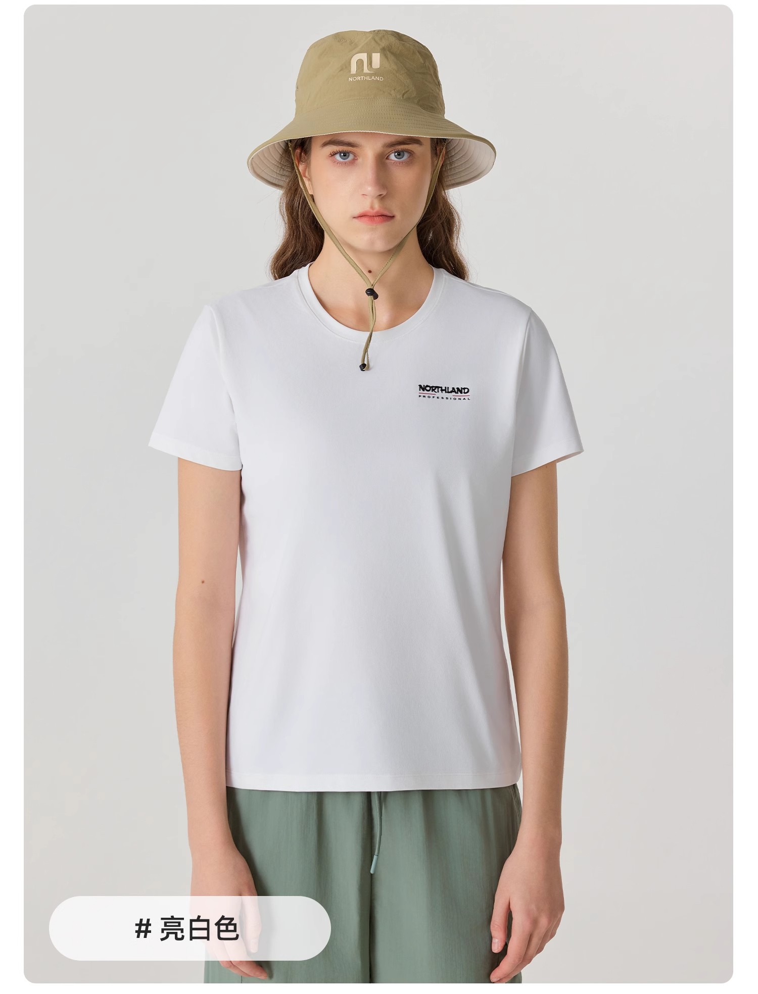 诺诗兰女士速干短袖T恤25春夏新款户外圆领防晒弹力运动徒步上衣向岳女式圆领短袖T恤NTSFT2227E
