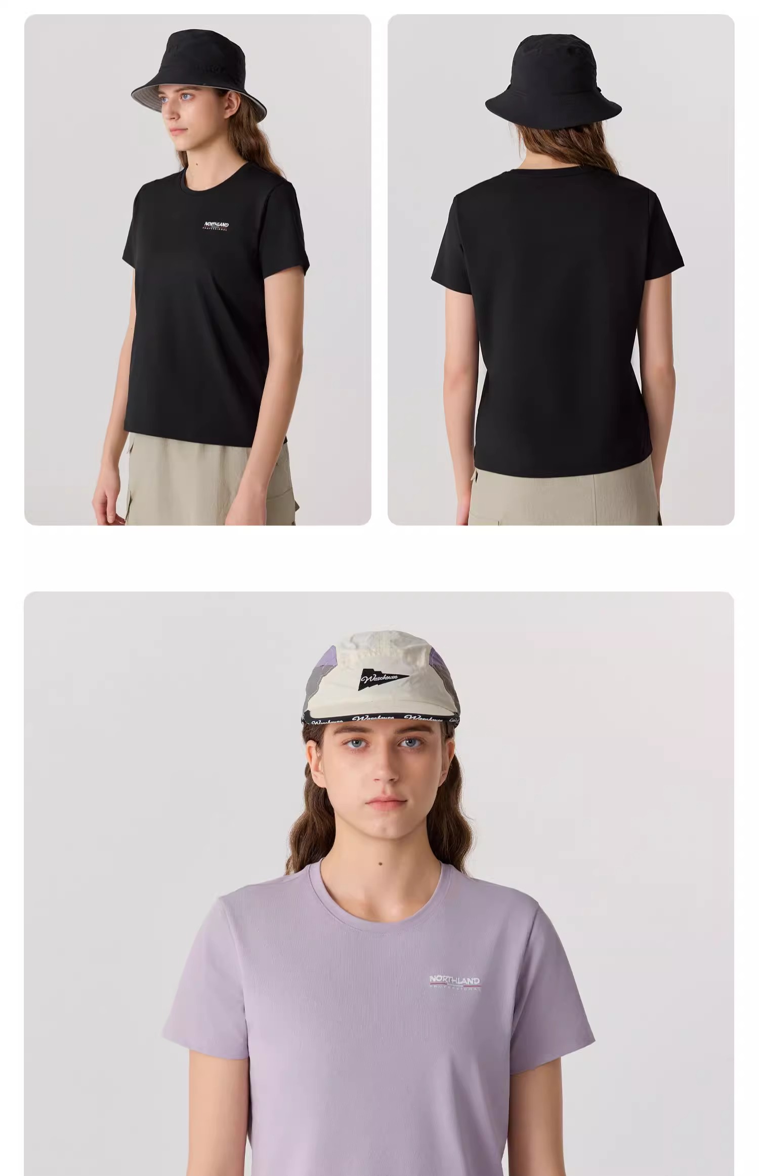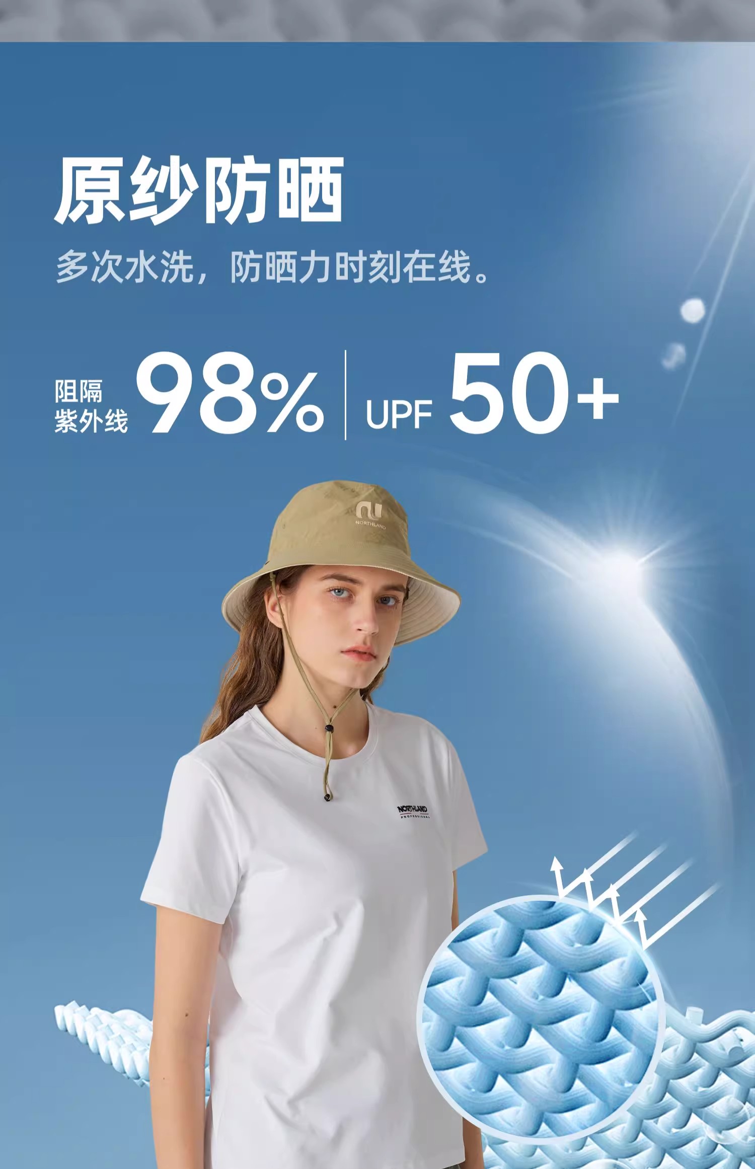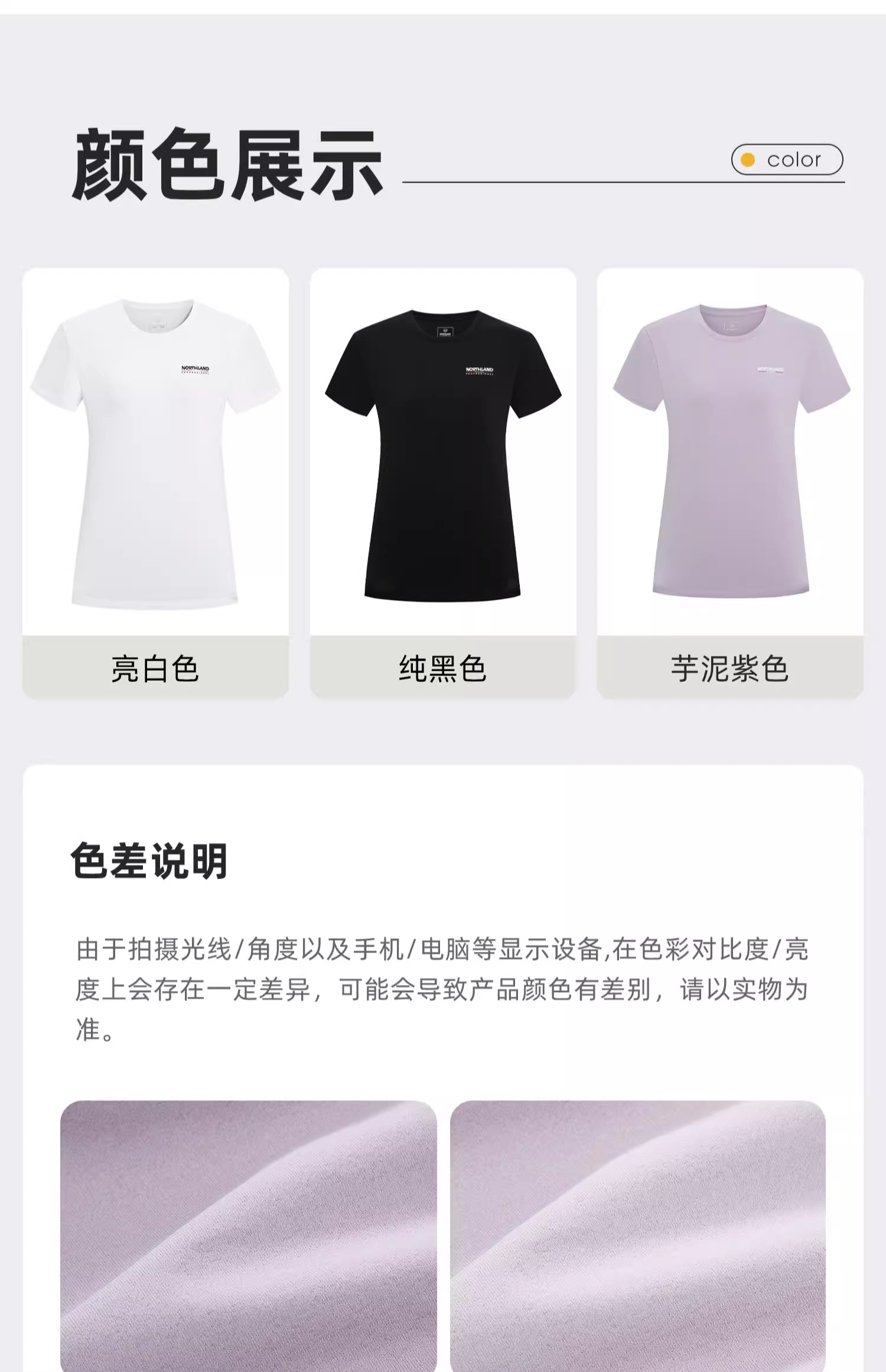 诺诗兰女士速干短袖T恤25春夏新款户外圆领防晒弹力运动徒步上衣向岳女式圆领短袖T恤NTSFT2227E