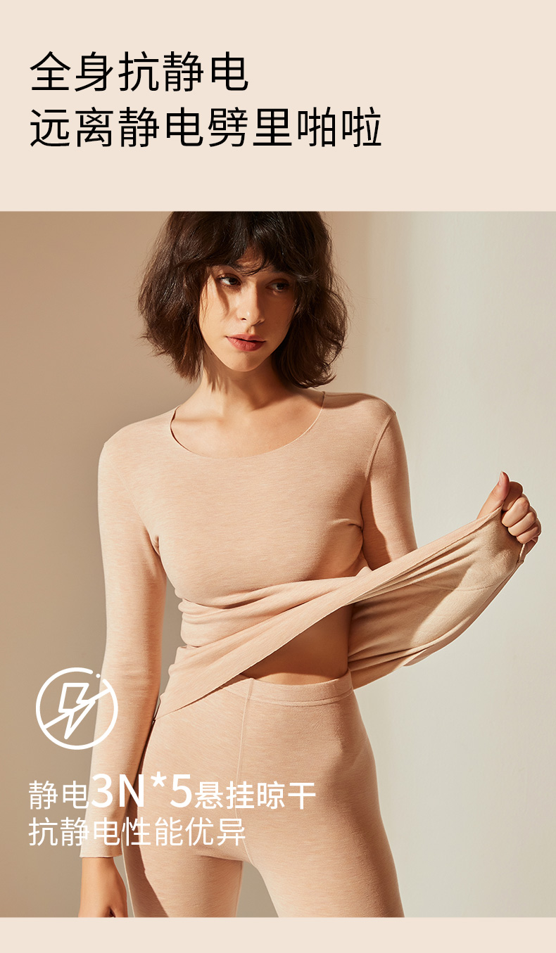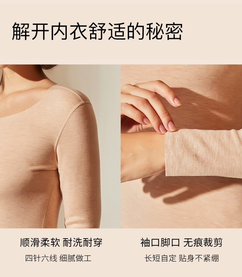 爱帝女士山羊绒蚕丝无痕保暖内衣套装
