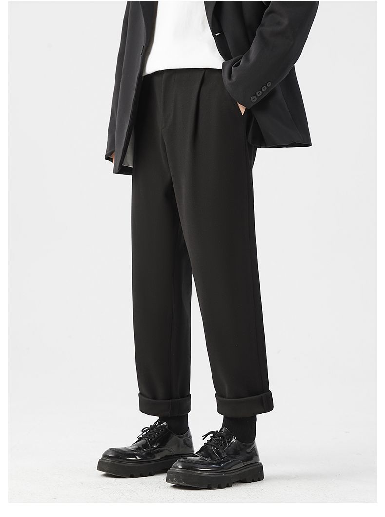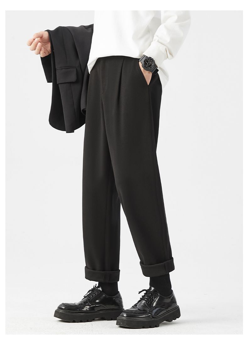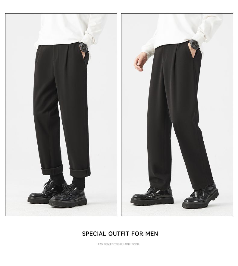 回力休闲裤子男2025秋季新款百搭九分西裤韩版修身黑色上班男裤子