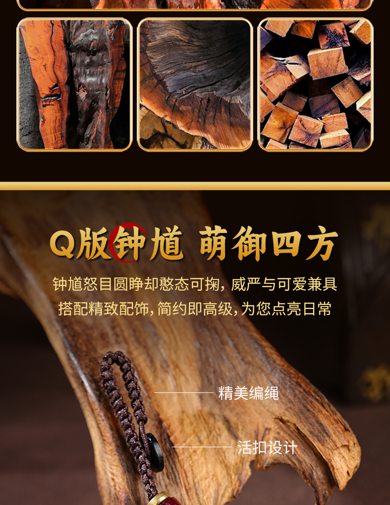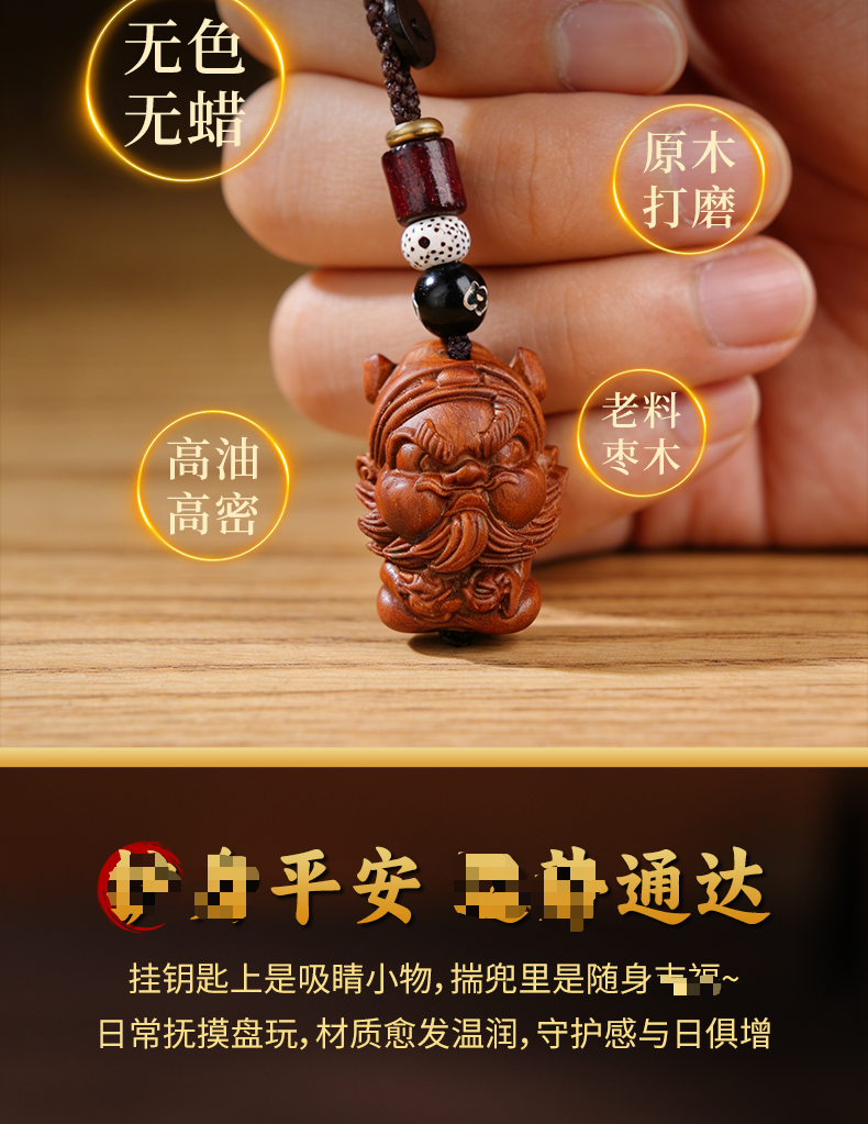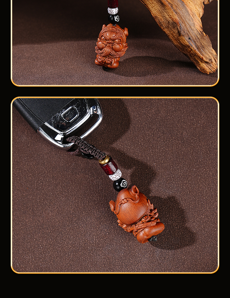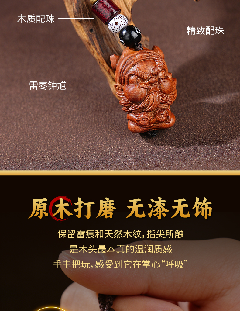 雷击木钥匙挂件钟馗装饰雕刻吊坠装饰小巧随身饰品