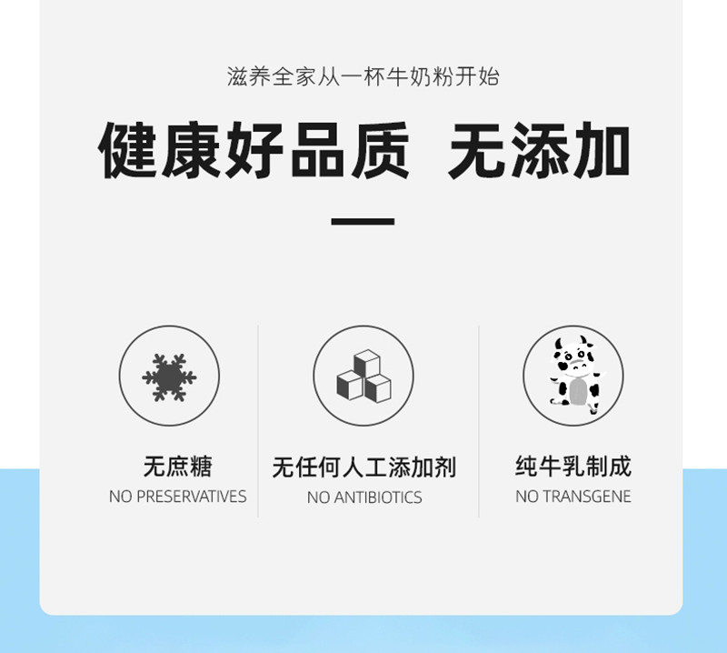 【中欧班列精选】俄罗斯品牌 库伦纳达小白奶牛生牛乳粉全脂高钙无加糖速溶500g/袋 成人奶粉