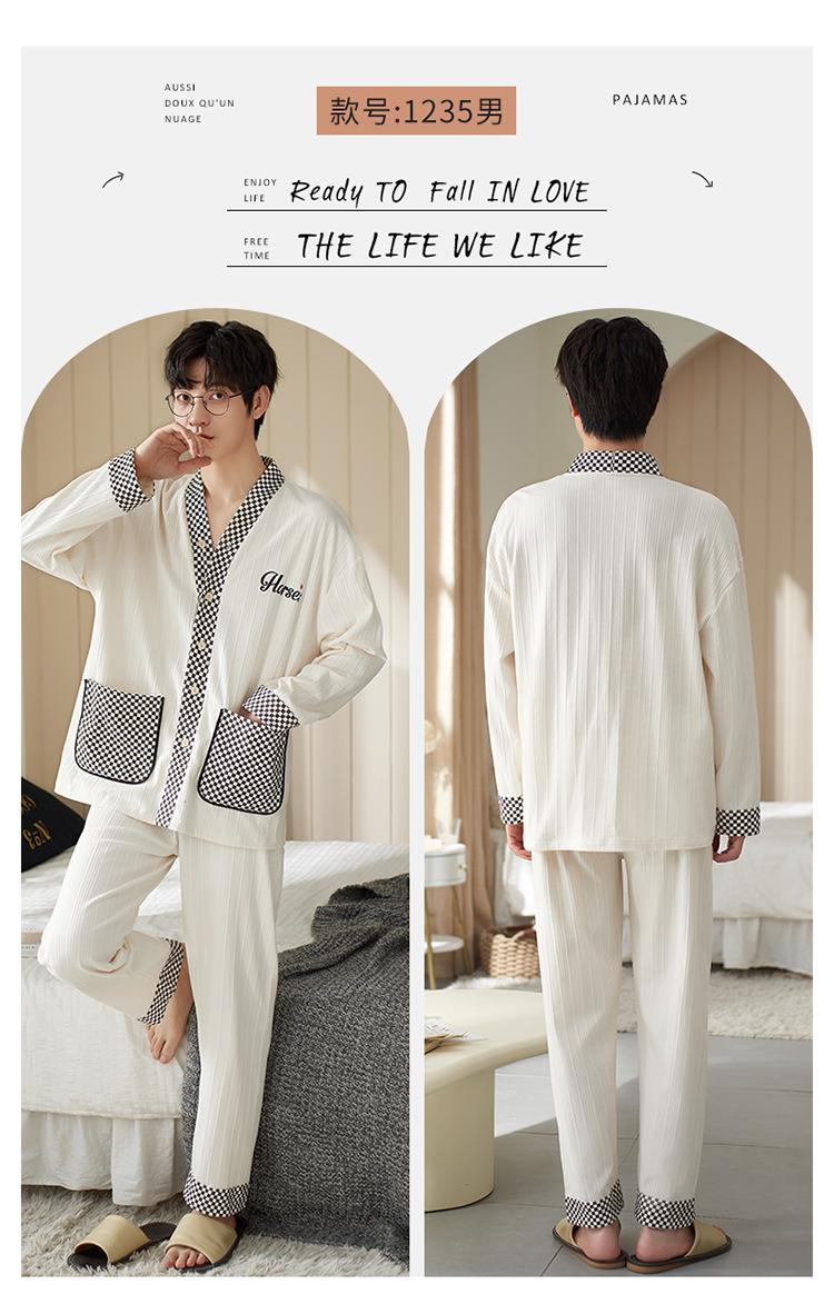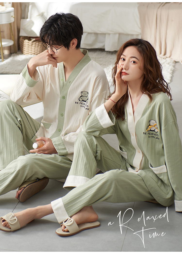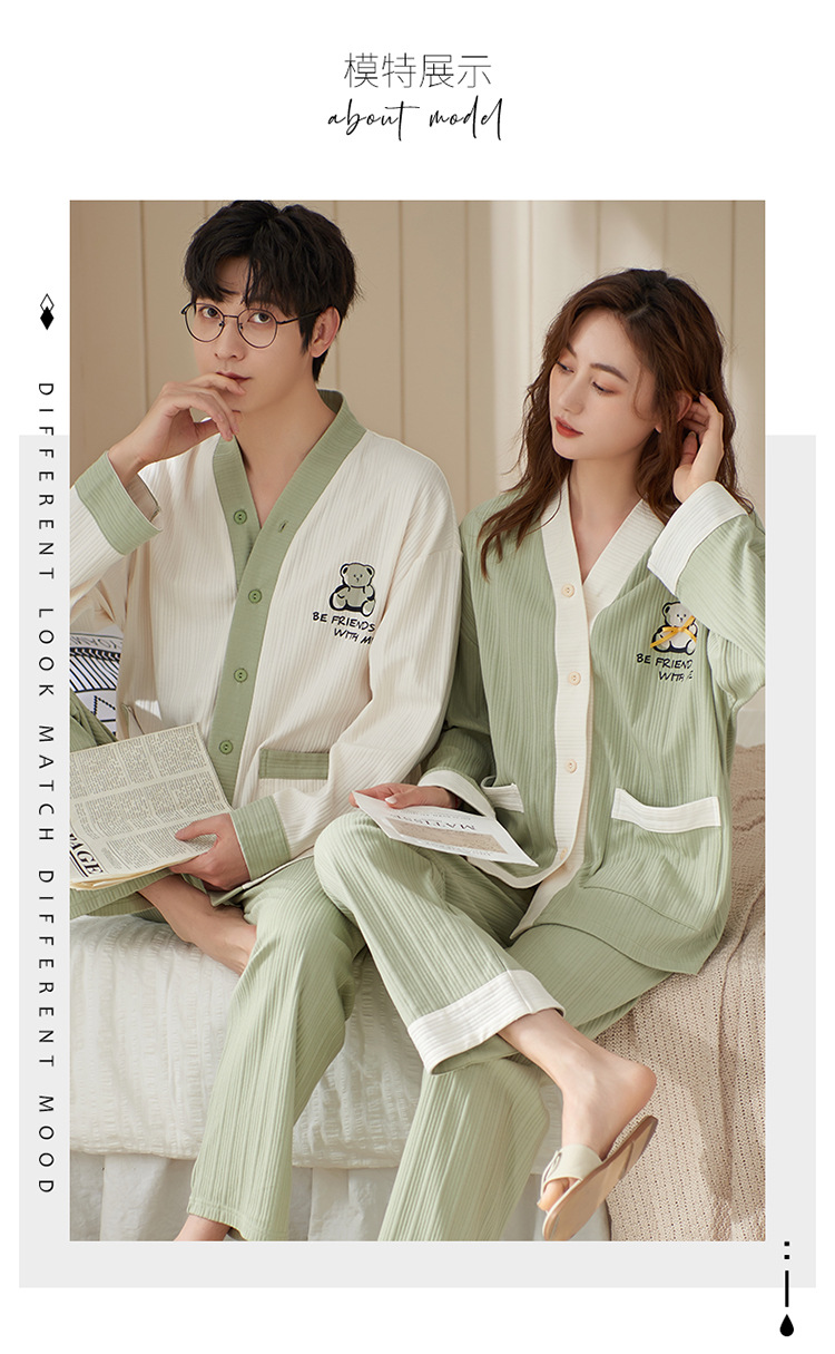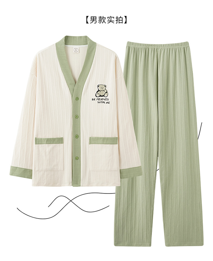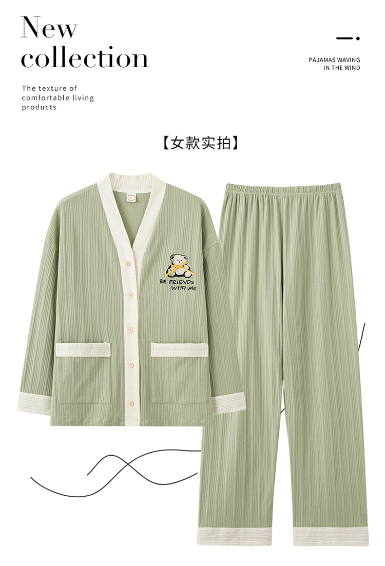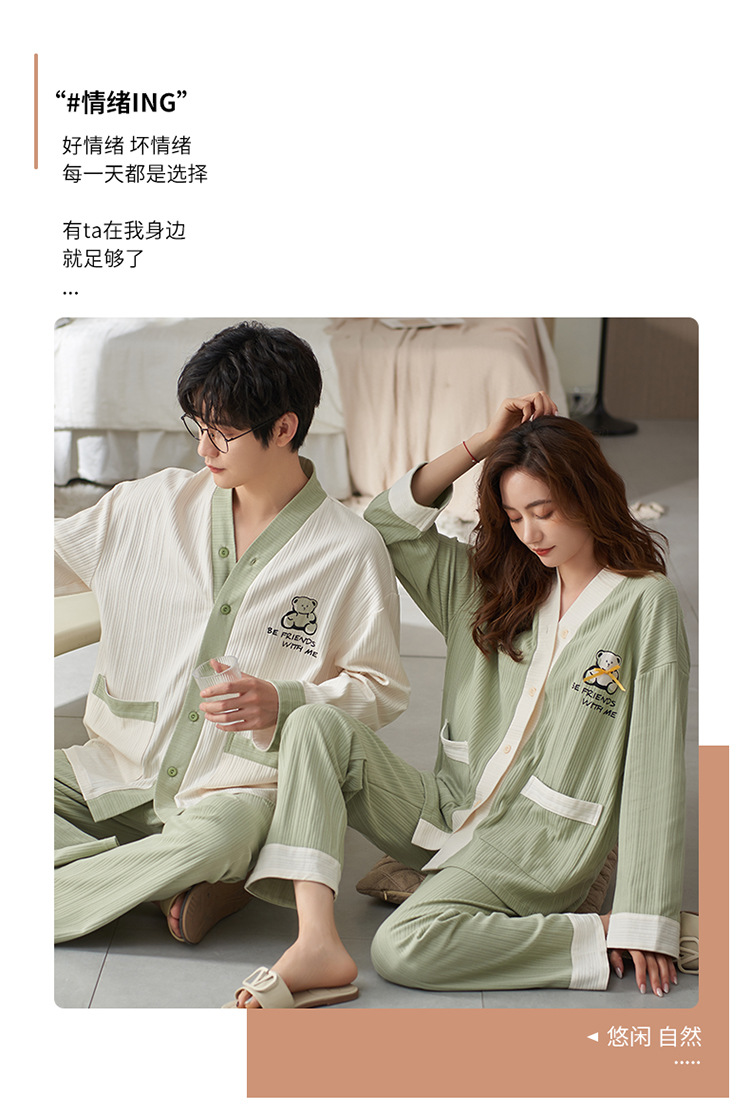 【情侣睡衣!家居服可外穿套装】春秋情侣睡衣开衫长袖两件套舒适时尚男女家居服可外穿套装