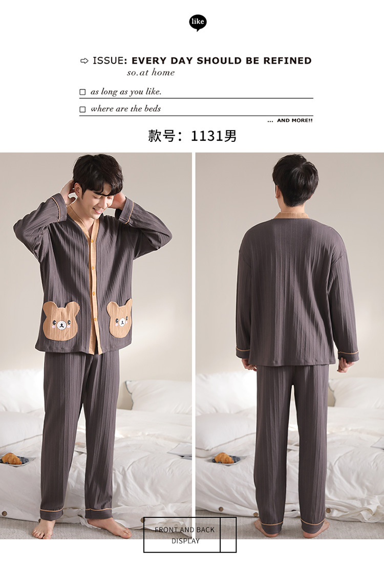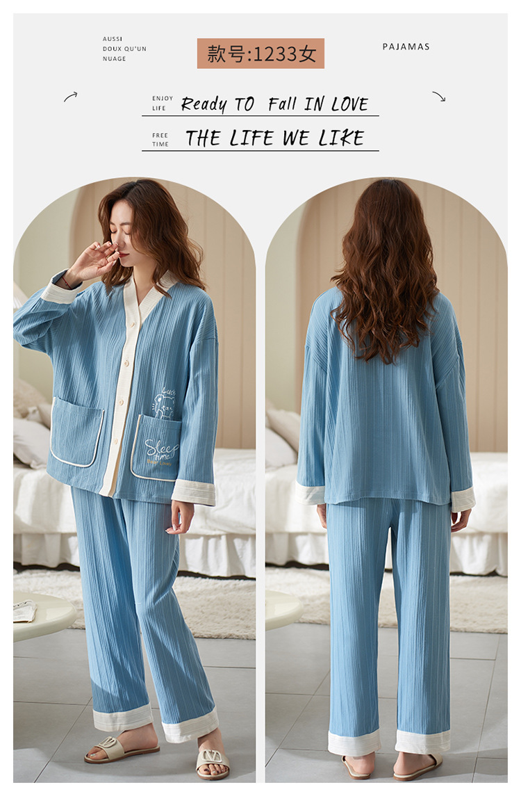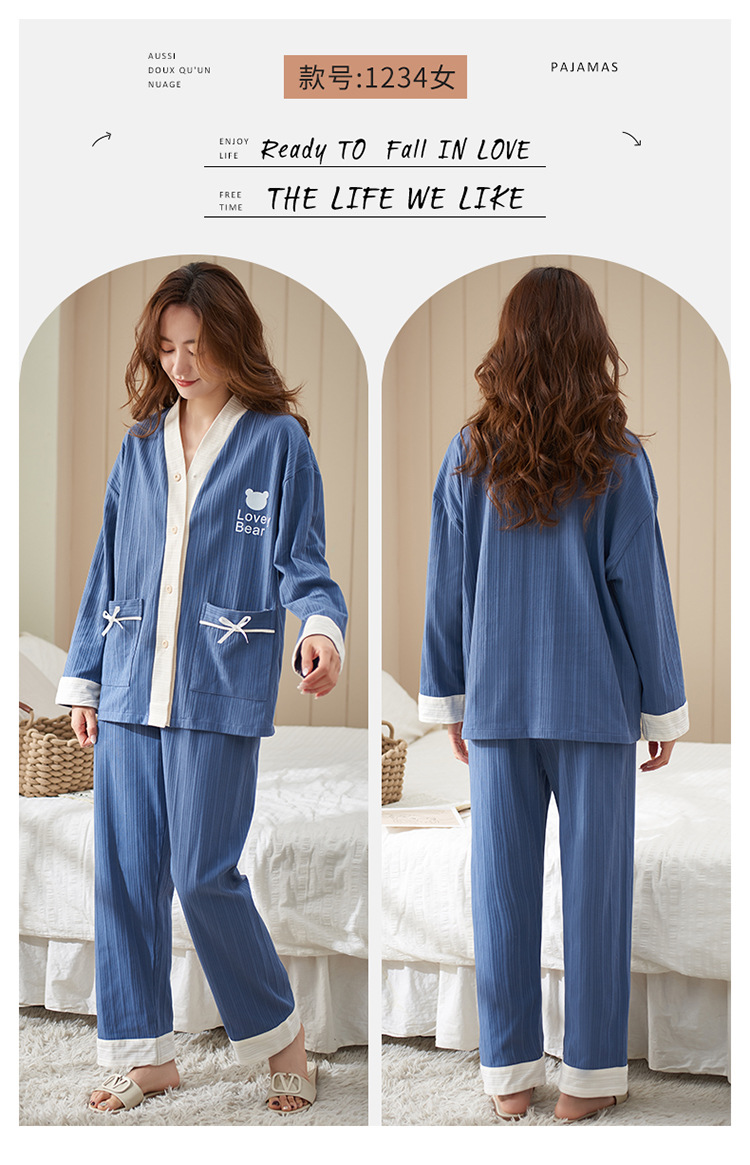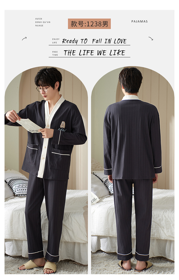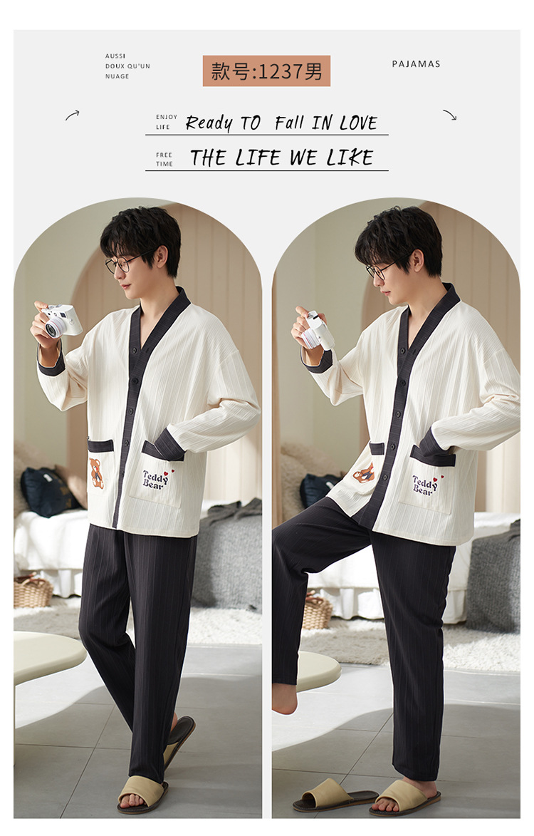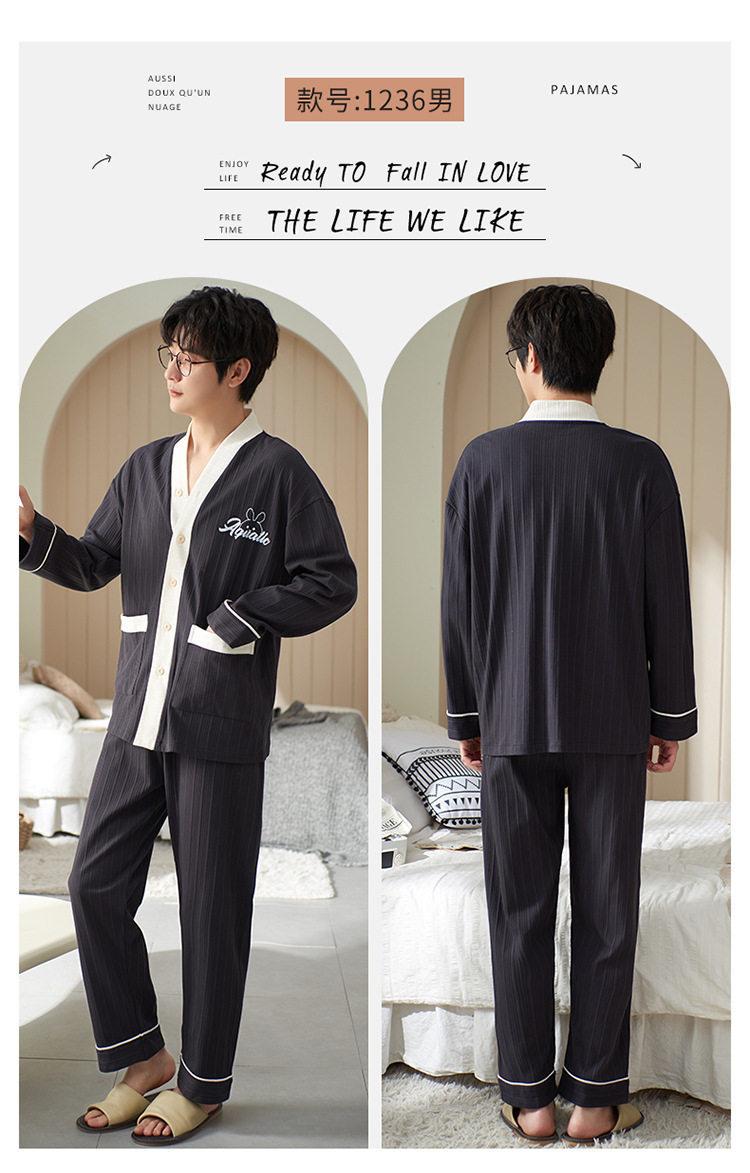 【情侣睡衣!家居服可外穿套装】春秋情侣睡衣开衫长袖两件套舒适时尚男女家居服可外穿套装