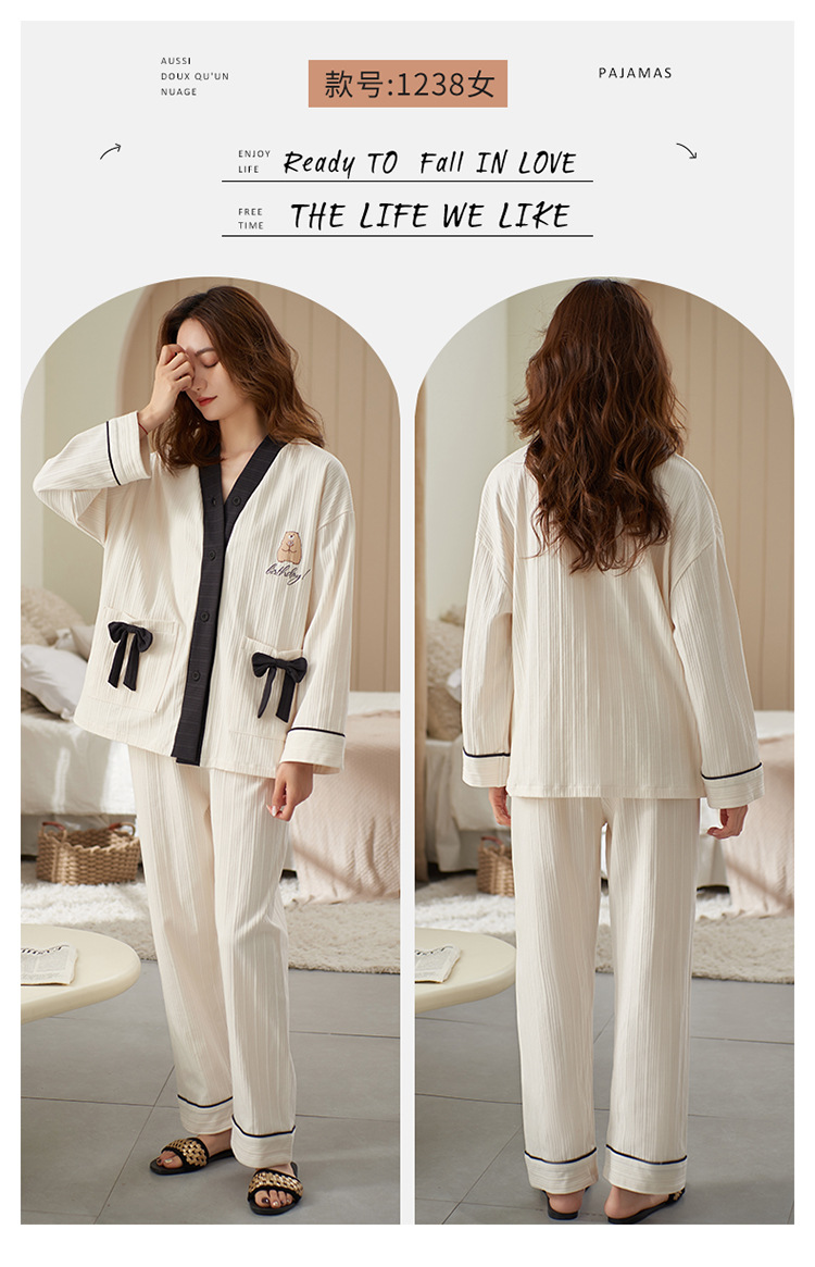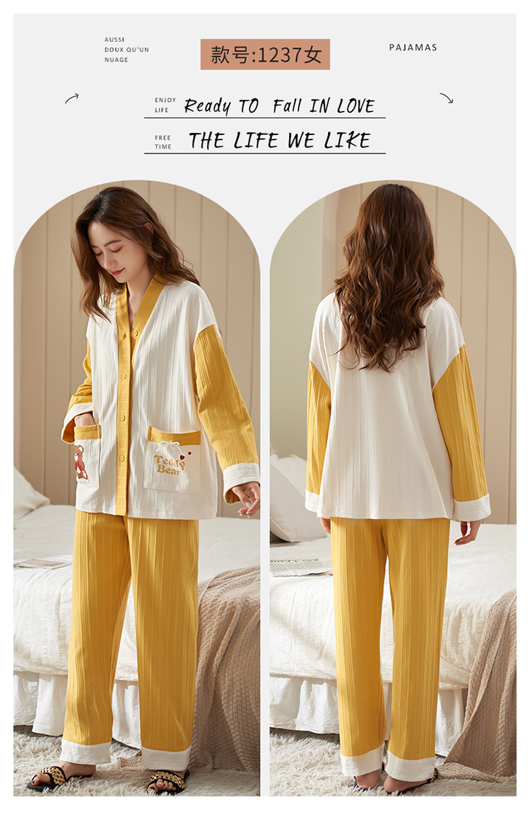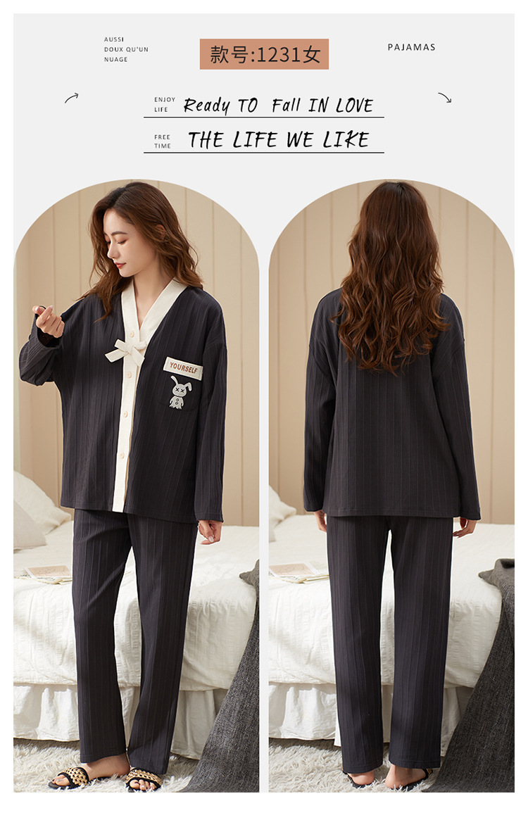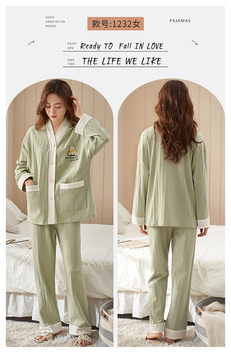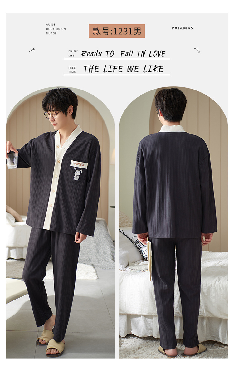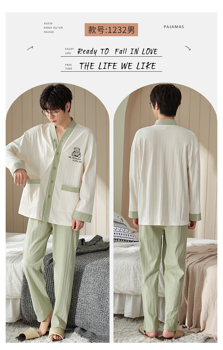 【情侣睡衣!家居服可外穿套装】春秋情侣睡衣开衫长袖两件套舒适时尚男女家居服可外穿套装