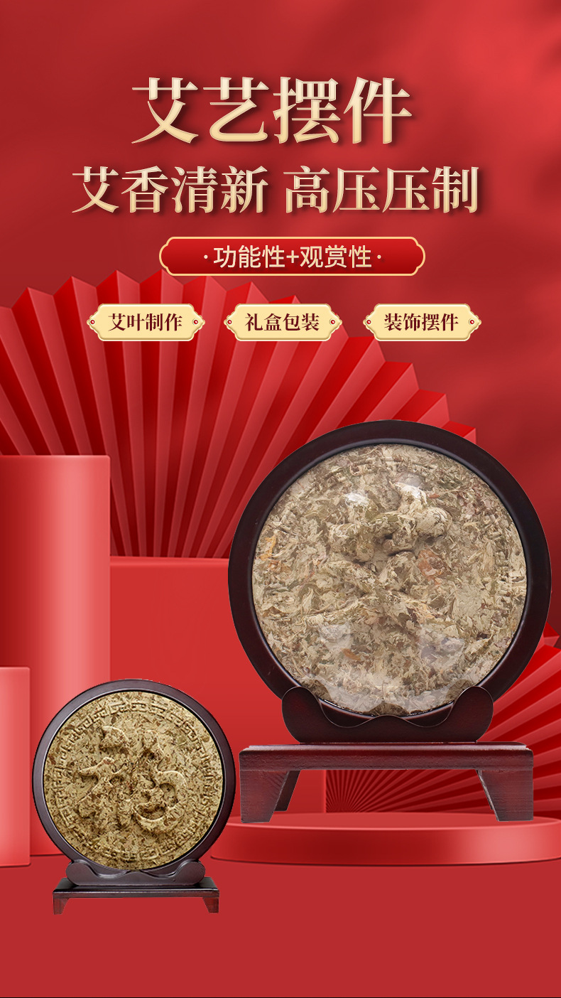 【艾饼艾绒摆件礼盒】礼品伴手礼艾叶艾草饼挂件