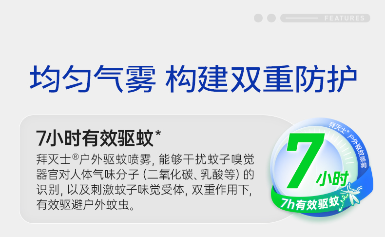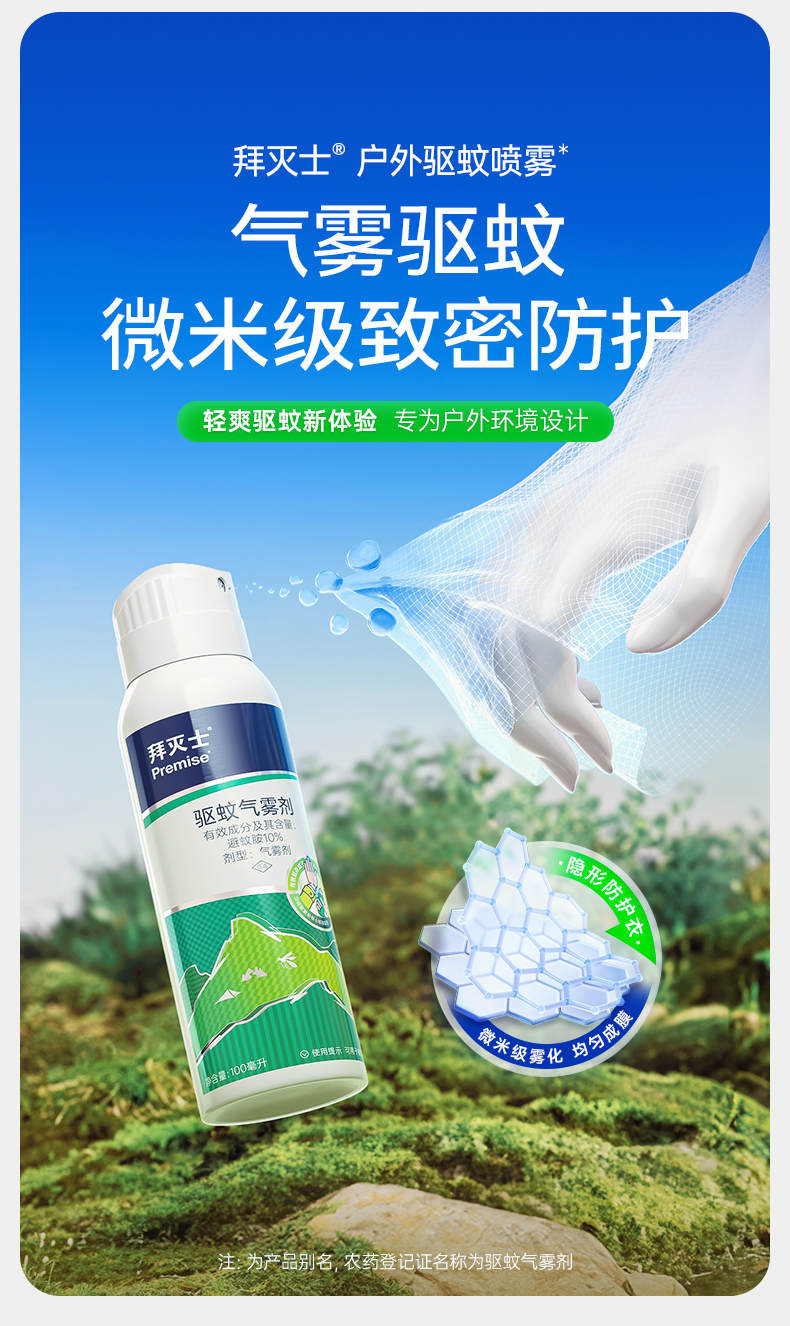 拜灭士户外驱蚊喷雾 微米级雾化 均匀成膜 打造户外隐形防护衣