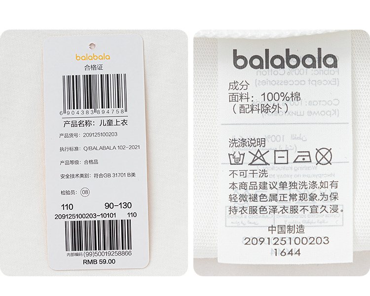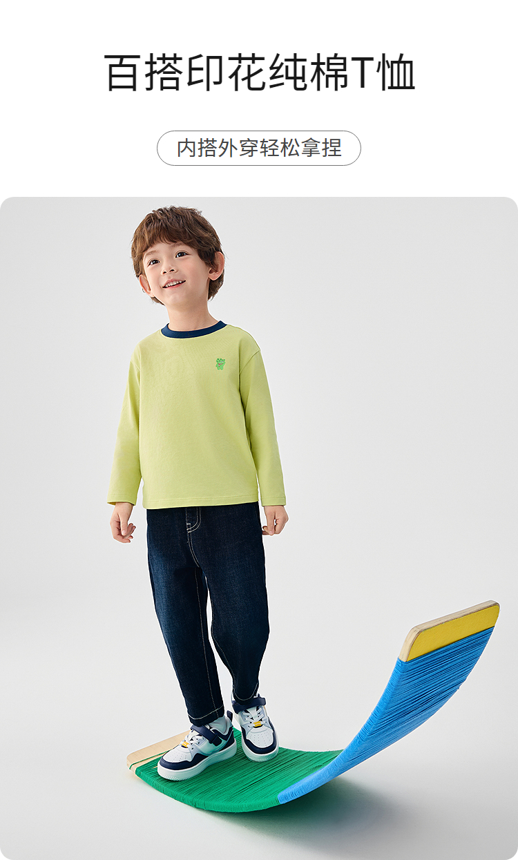 巴拉巴拉童装儿童长袖t恤男童女童2025新款春装纯棉百搭打底衫潮
