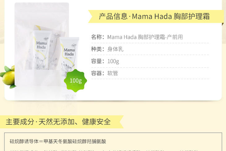 【保税仓】日本Mama Hada 曼丹胸部护理霜-产前用100g