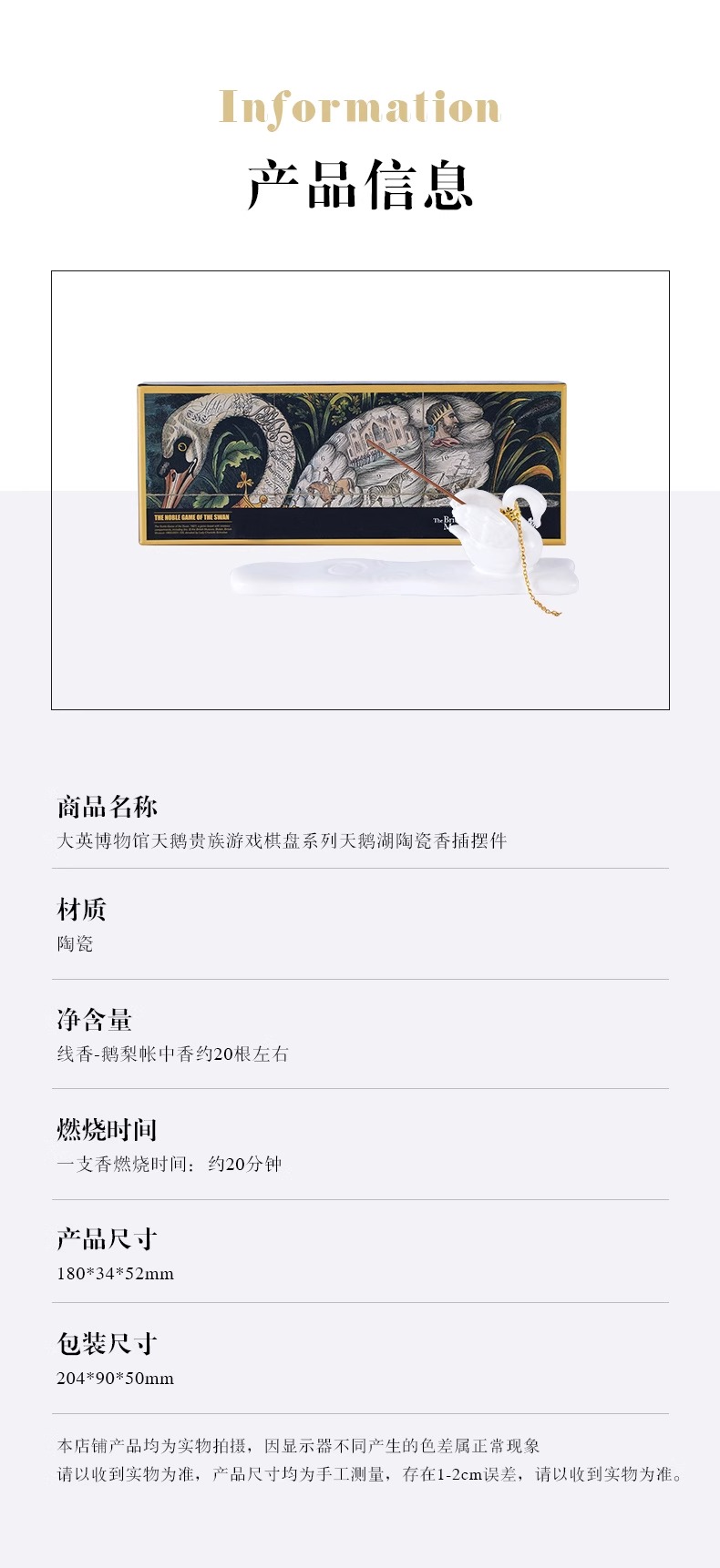 大英博物馆天鹅贵族游戏棋盘系列 天鹅湖线香陶瓷香插摆件礼盒
