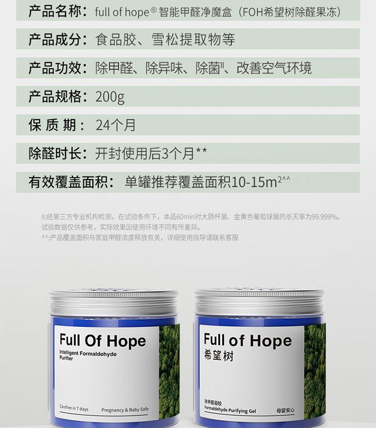 (买赠甲醛检测盒+除醛喷雾!)希望树Full of Hope智能甲醛净魔盒200g 新房家用FOH去除甲醛果冻 小蓝罐