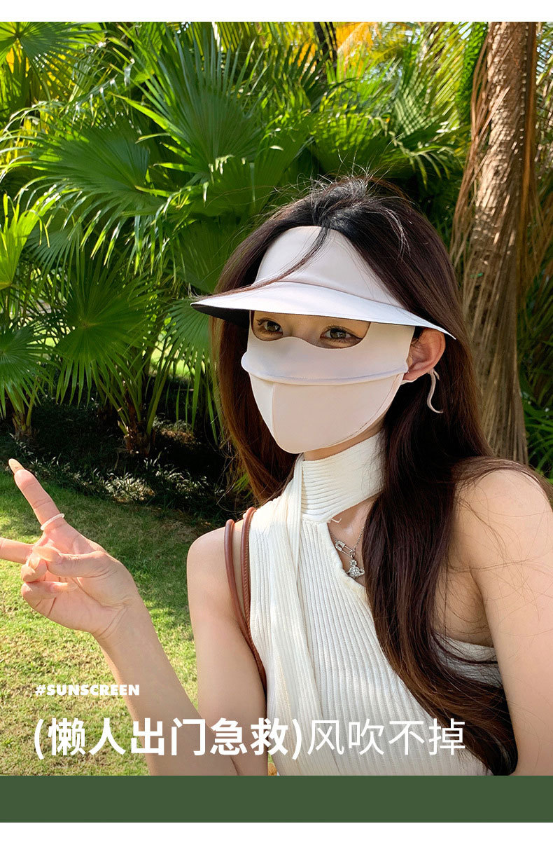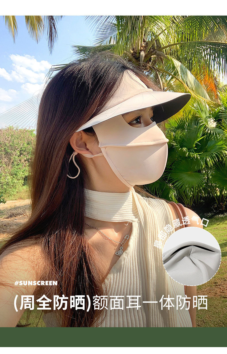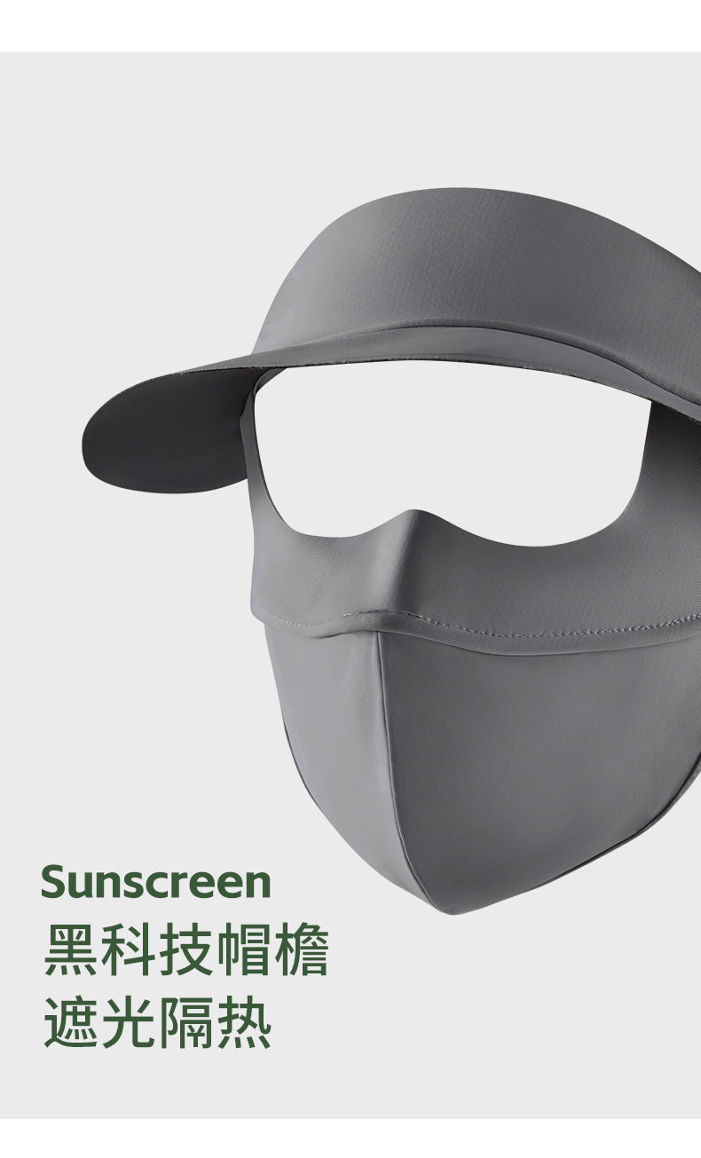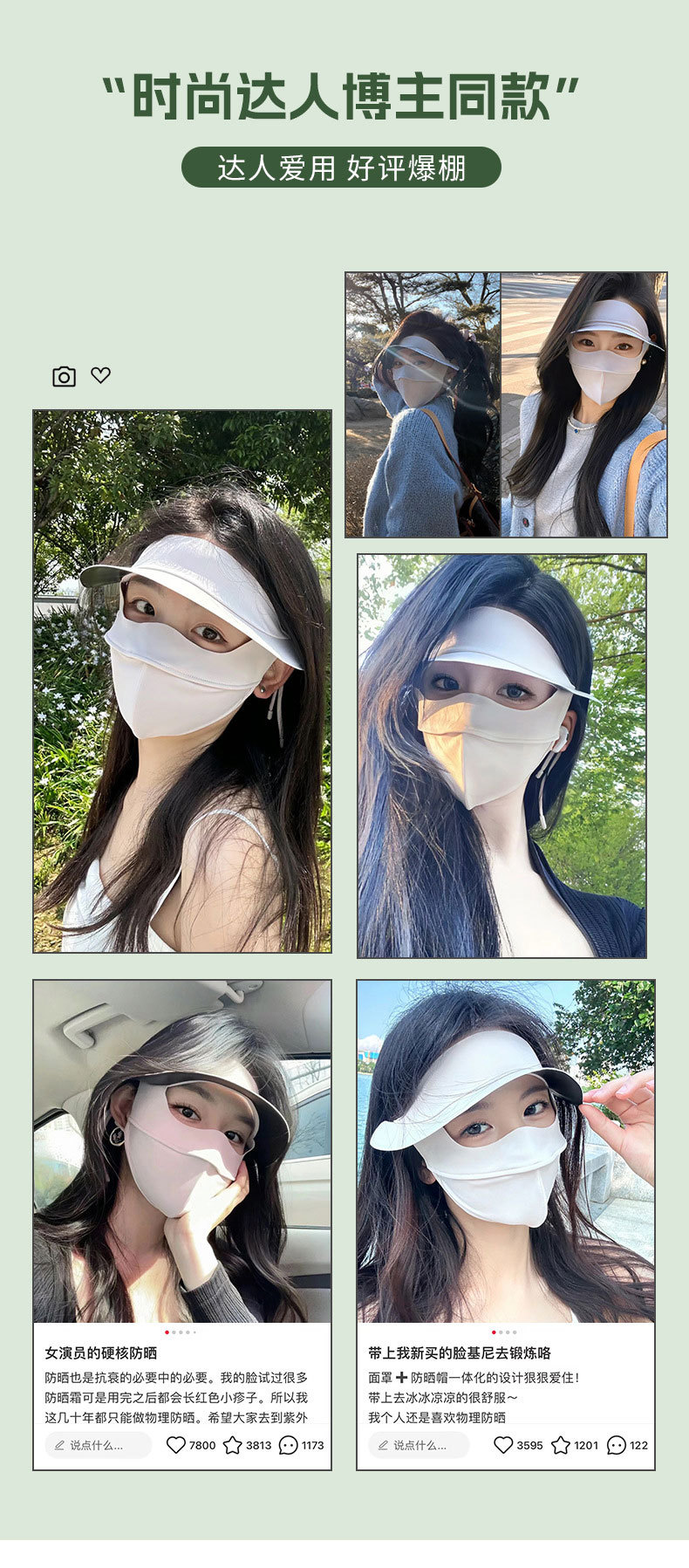 【冰感透气❗️一触降温】黑胶防晒面罩全脸口罩防紫外线女透气遮阳脸基尼帽檐太阳脸罩护颈。ya