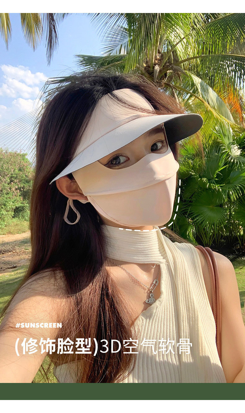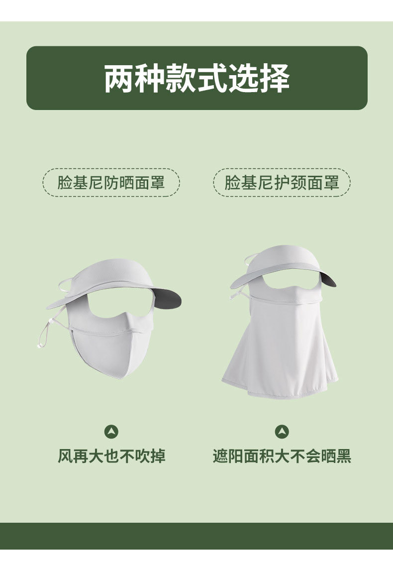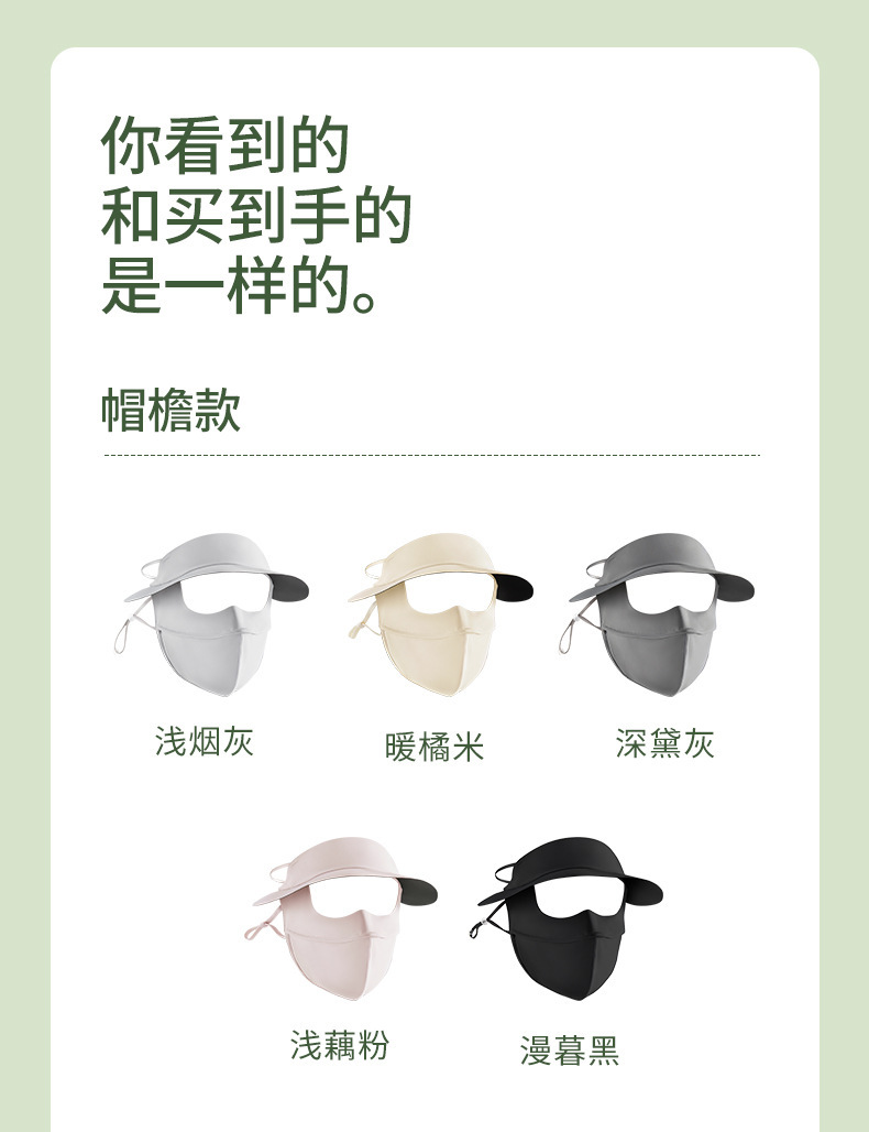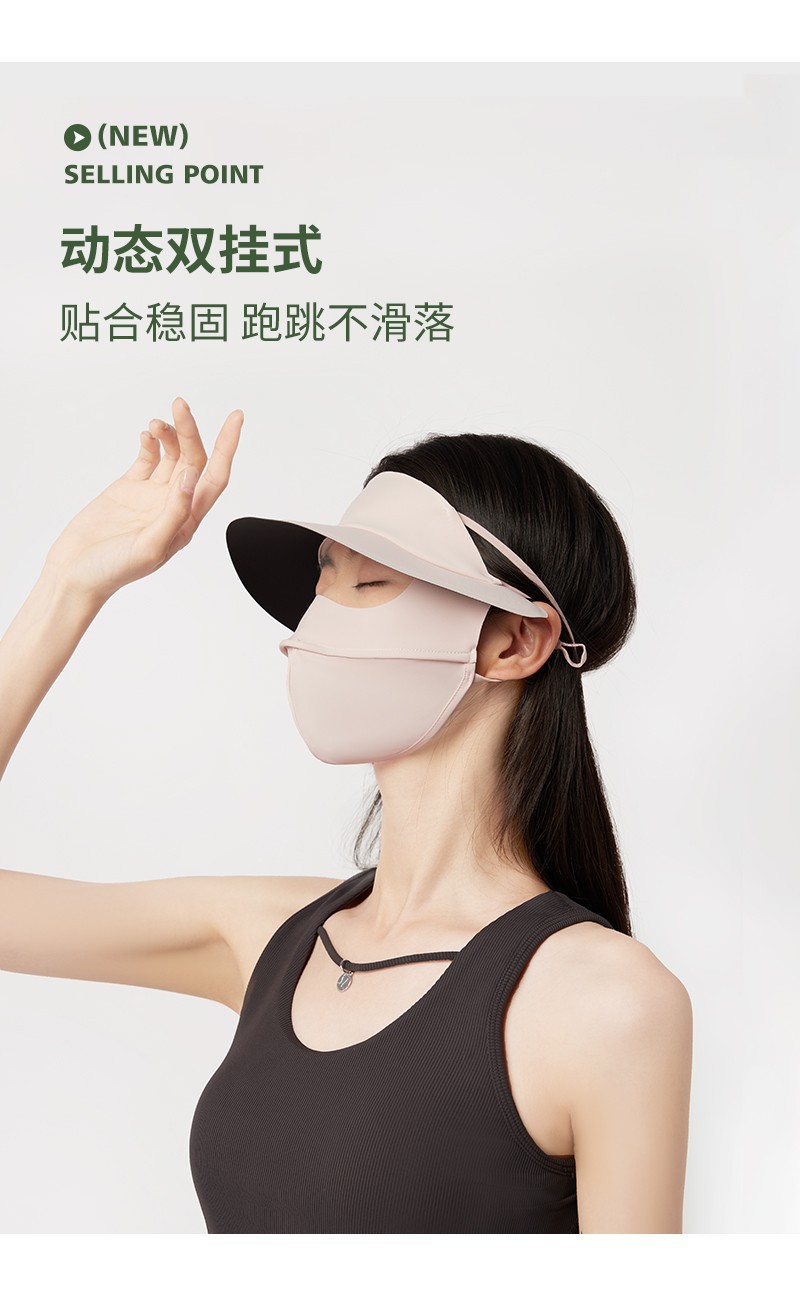 【冰感透气❗️一触降温】黑胶防晒面罩全脸口罩防紫外线女透气遮阳脸基尼帽檐太阳脸罩护颈。ya