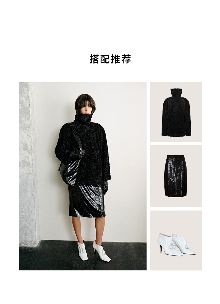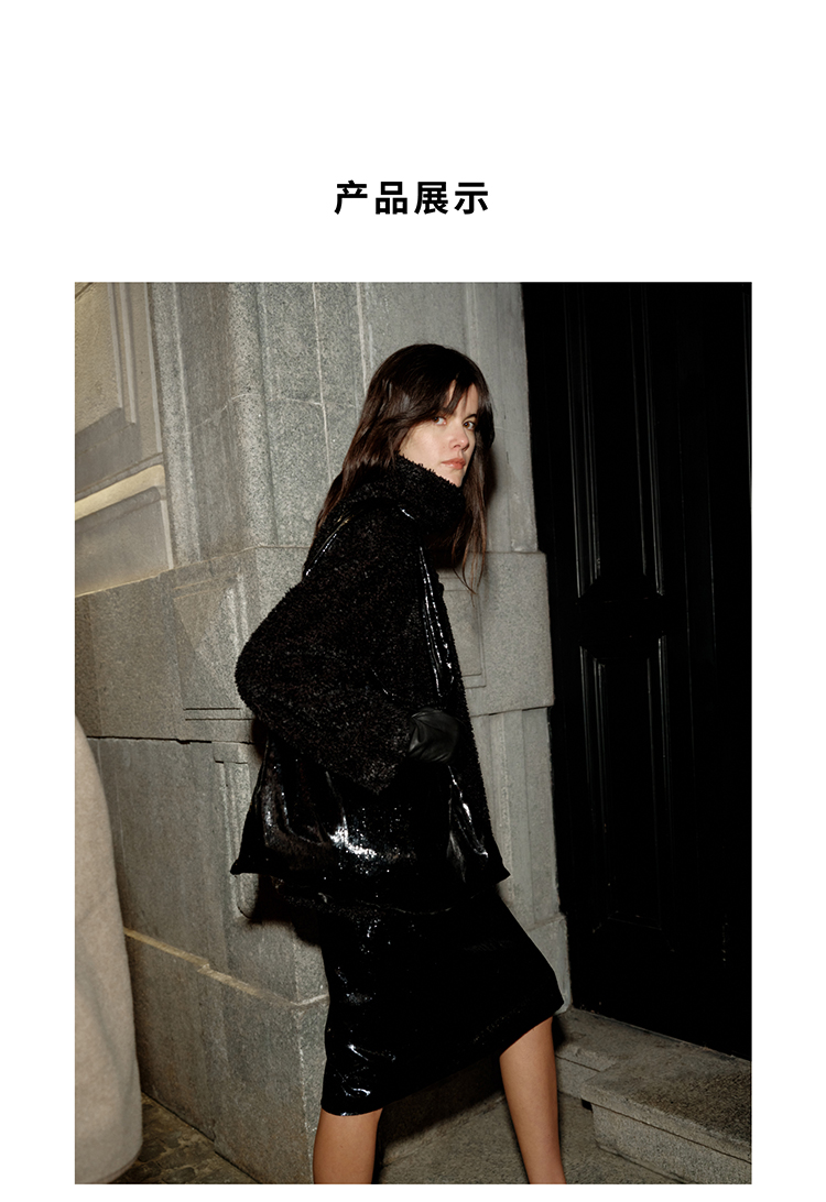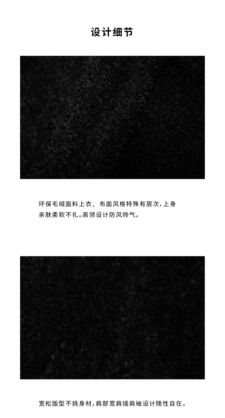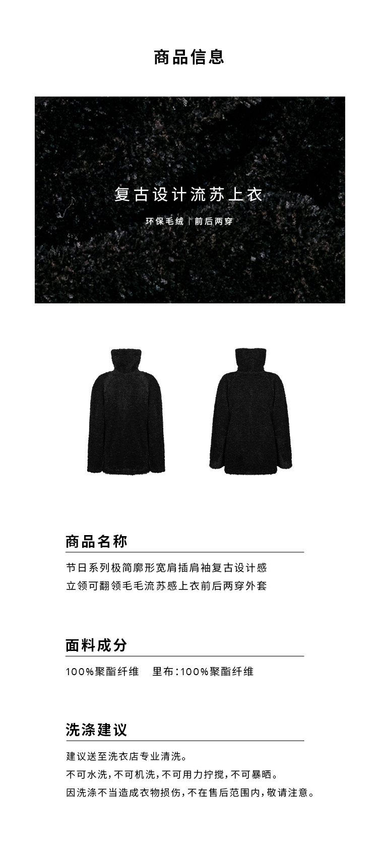 HIDEMI 节日系列极简廓形宽肩插肩袖复古设计感立领可翻领毛毛流苏感上衣前后两穿外套