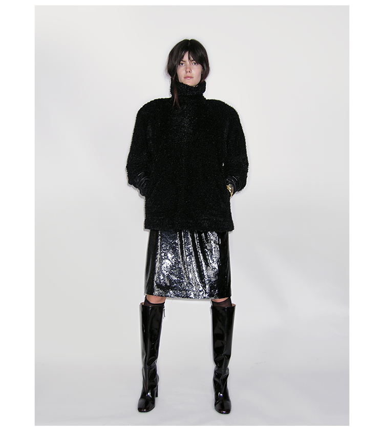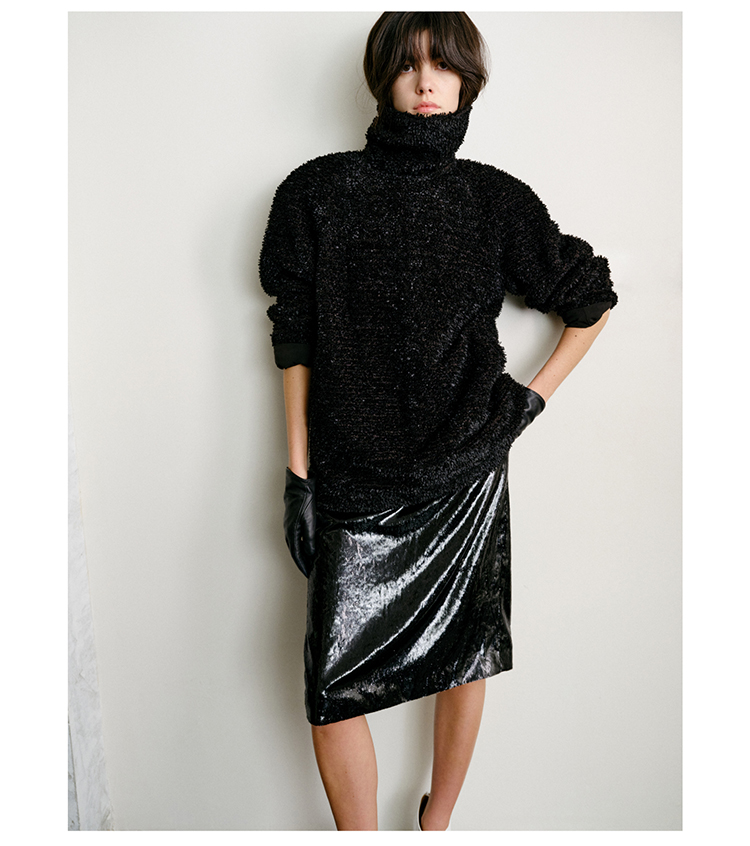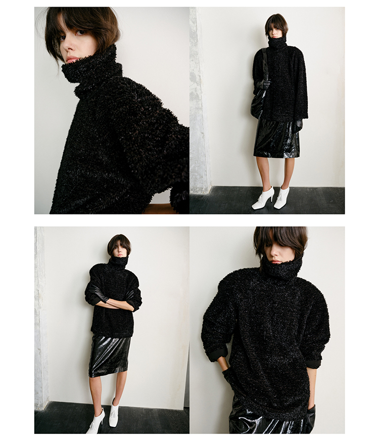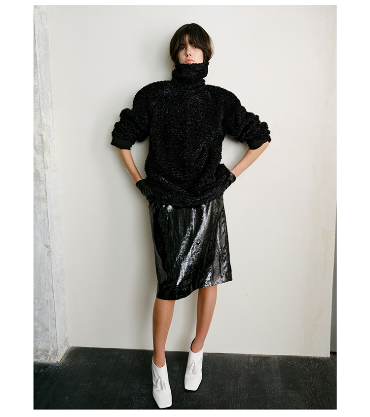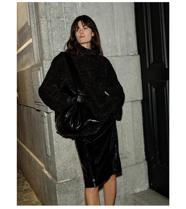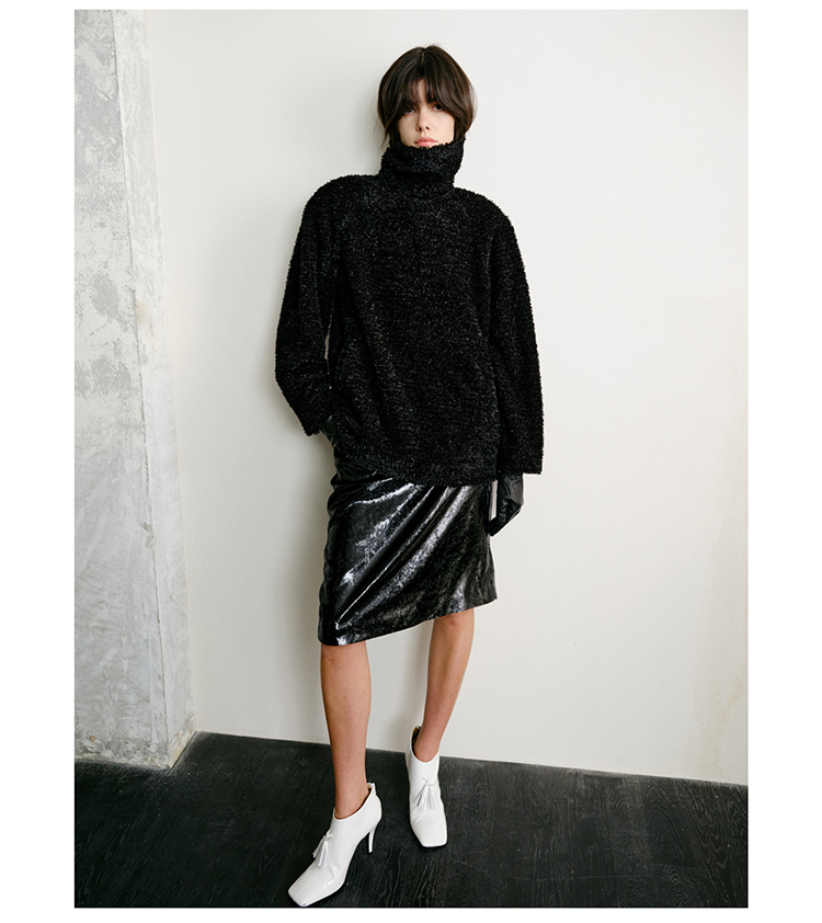 HIDEMI 节日系列极简廓形宽肩插肩袖复古设计感立领可翻领毛毛流苏感上衣前后两穿外套