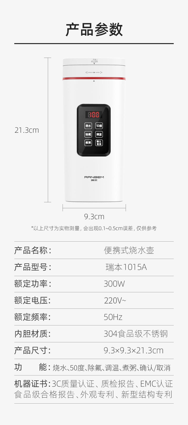 瑞本便携式烧水壶家用电热水杯小型办公室迷你旅行保温加热养生杯