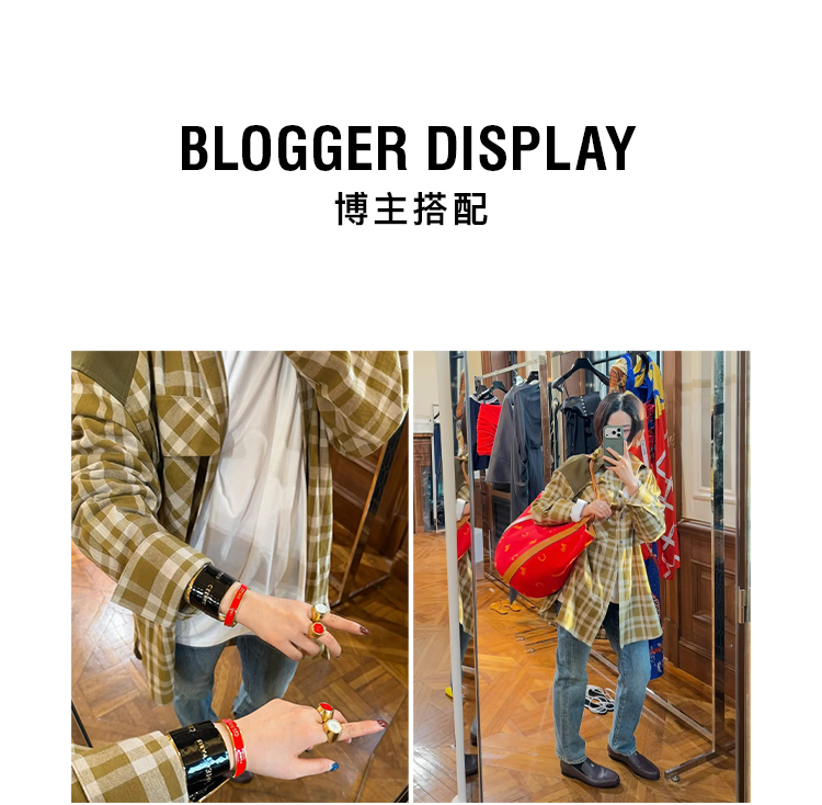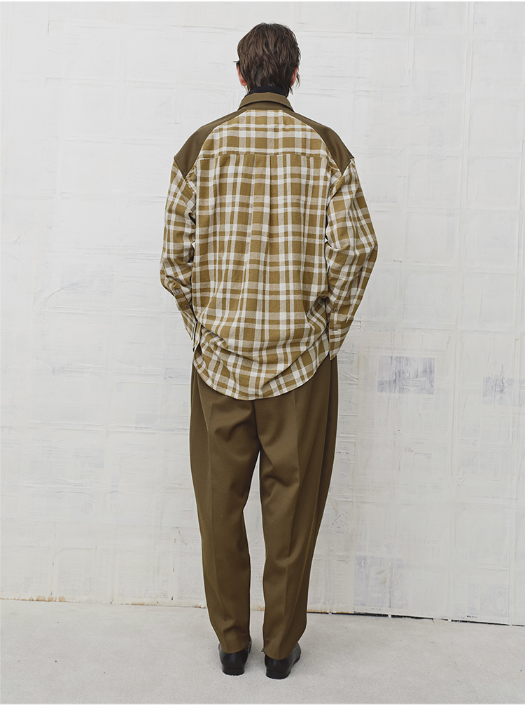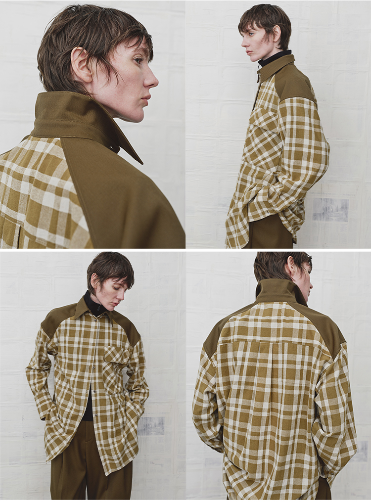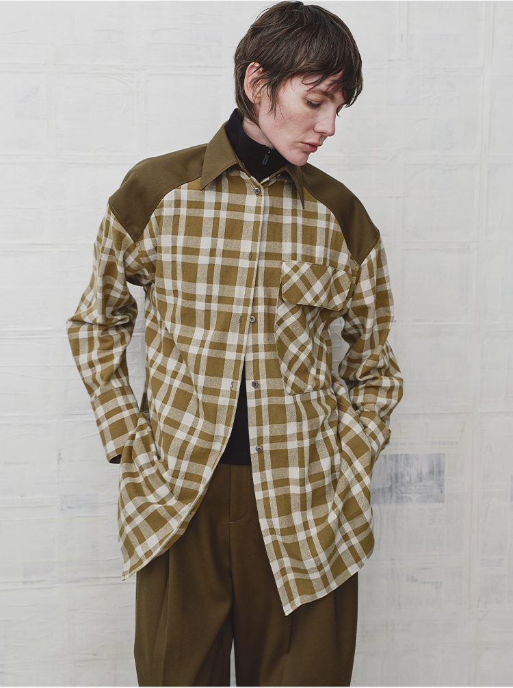 HIDEMI 色织格纹撞色拼接贴袋衬衫外套上衣
