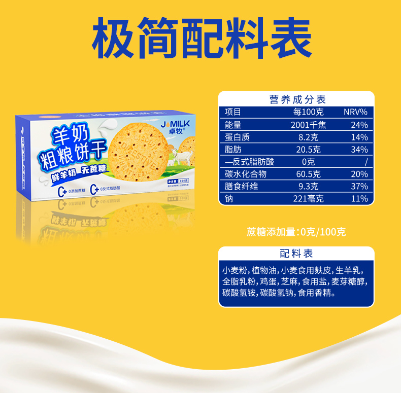 【冯站长专享】卓牧(JOMILK)鲜羊奶粗粮饼干160g 富含膳食纤维羊乳高纤粗粮 羊乳膳食纤维饼干