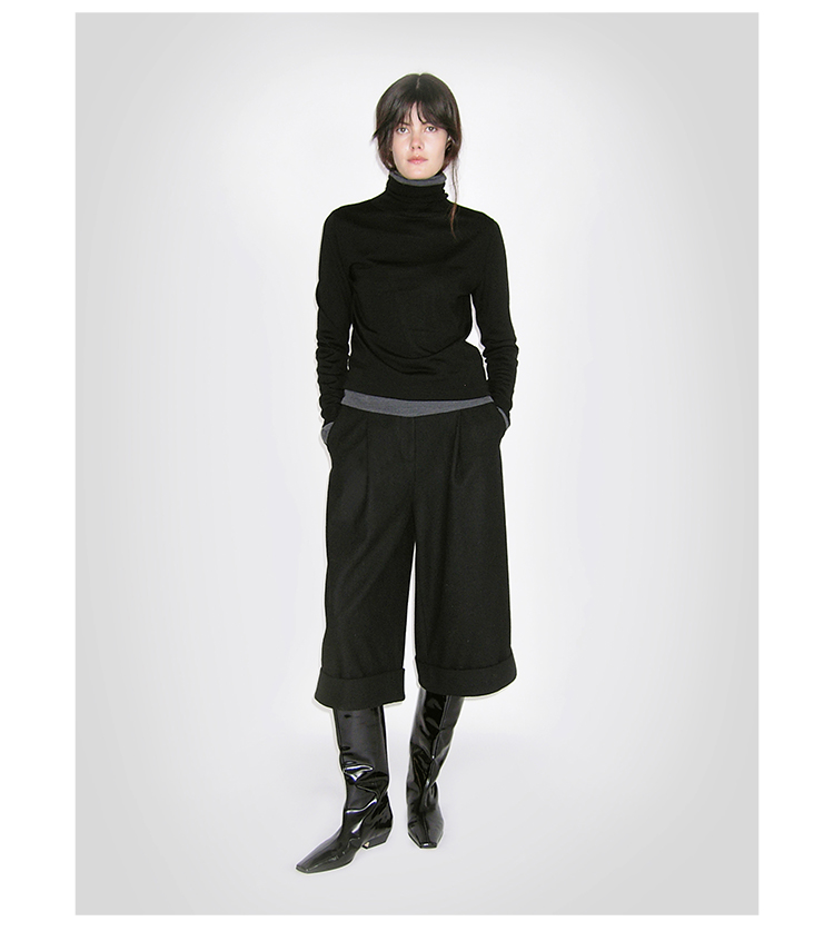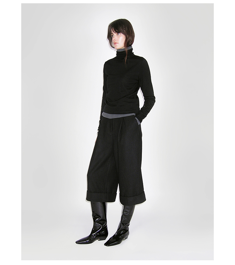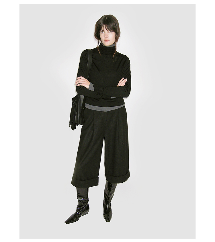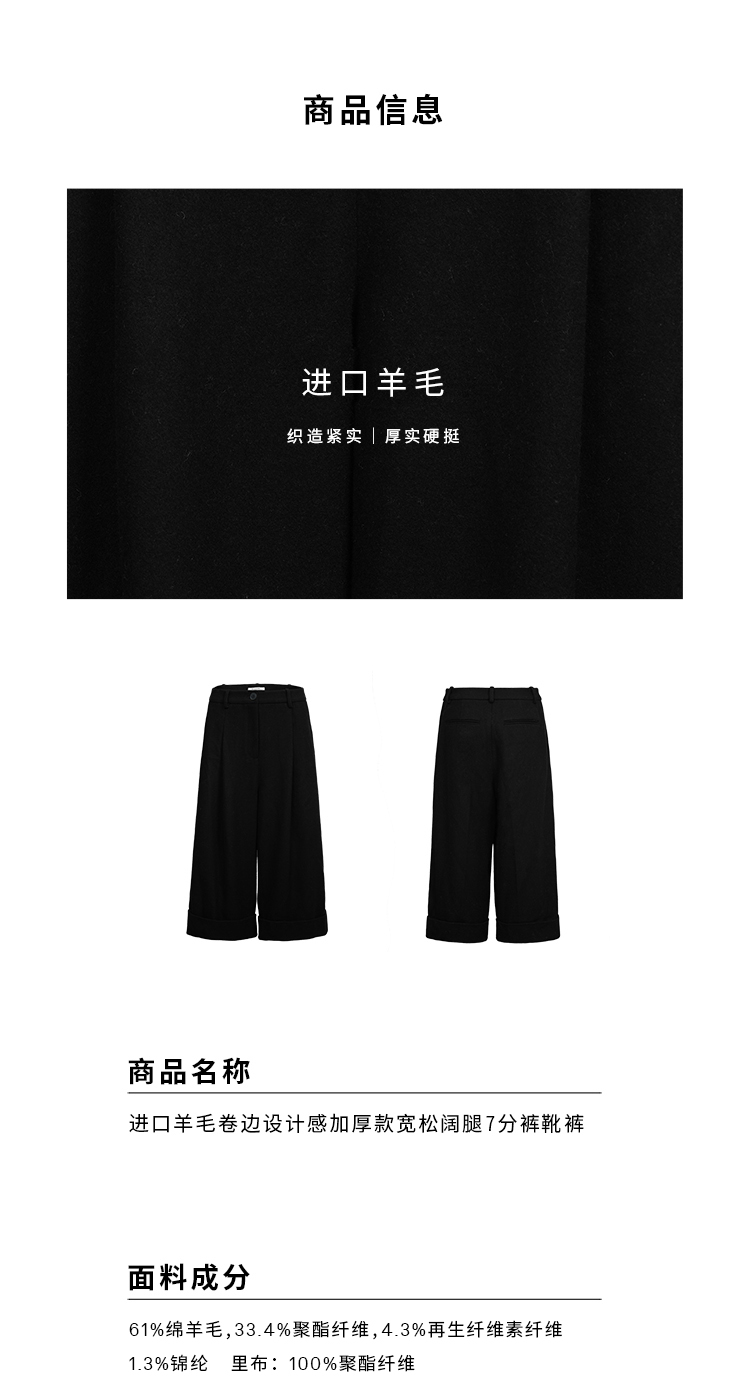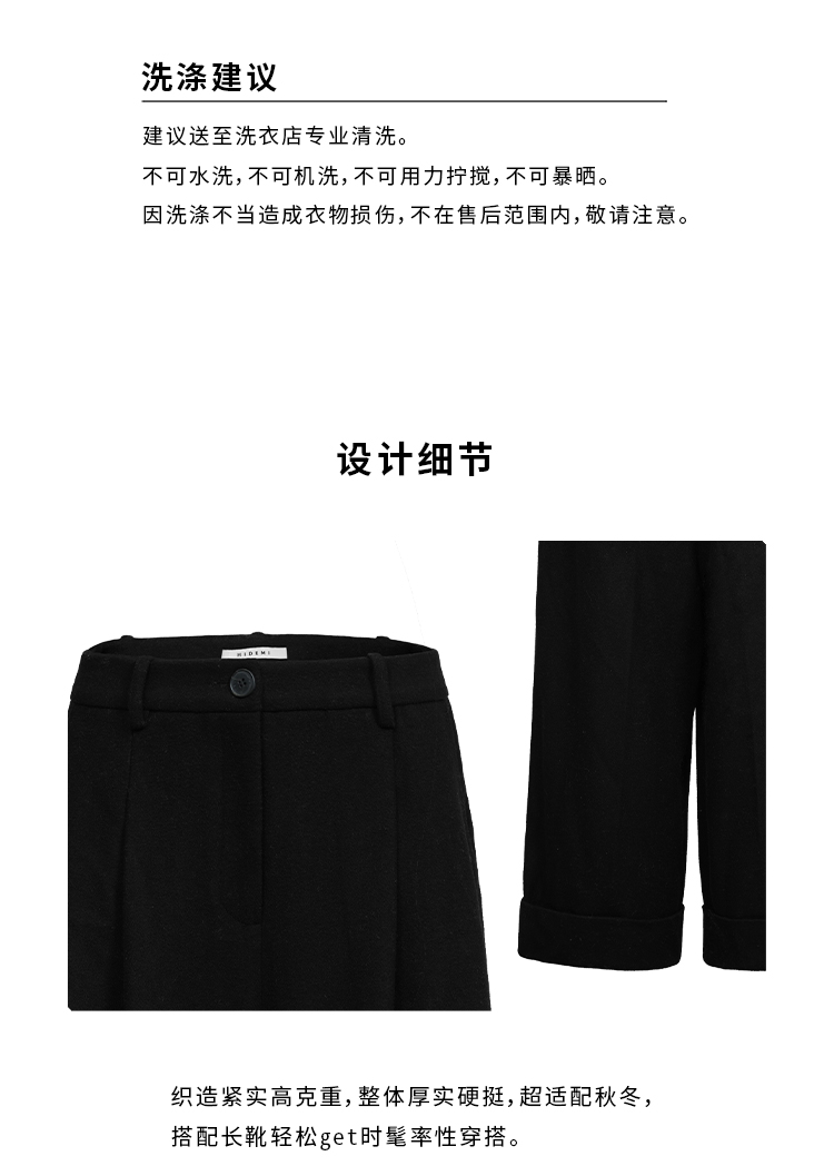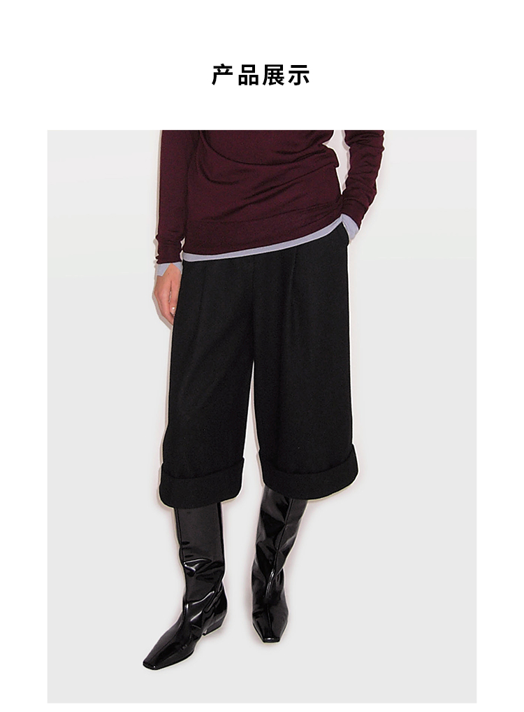 HIDEMI 进口羊毛卷边设计感加厚款宽松阔腿七分裤靴裤