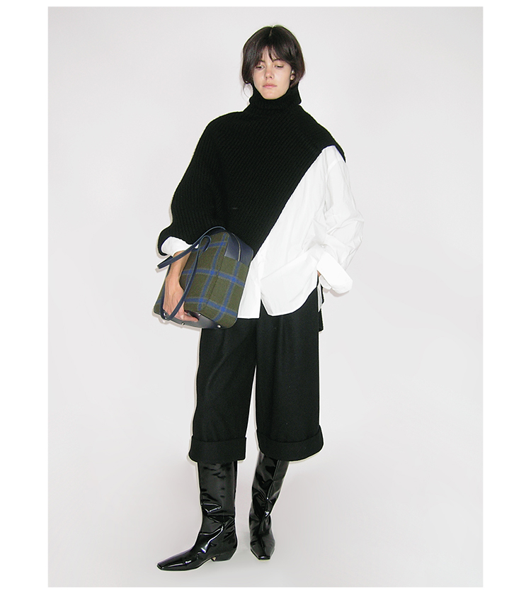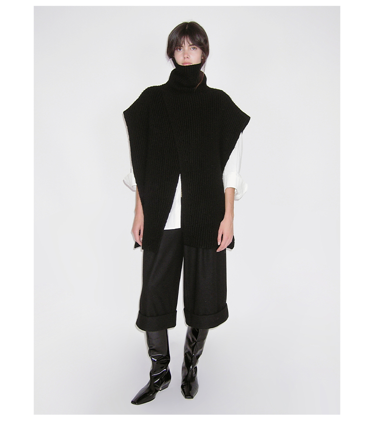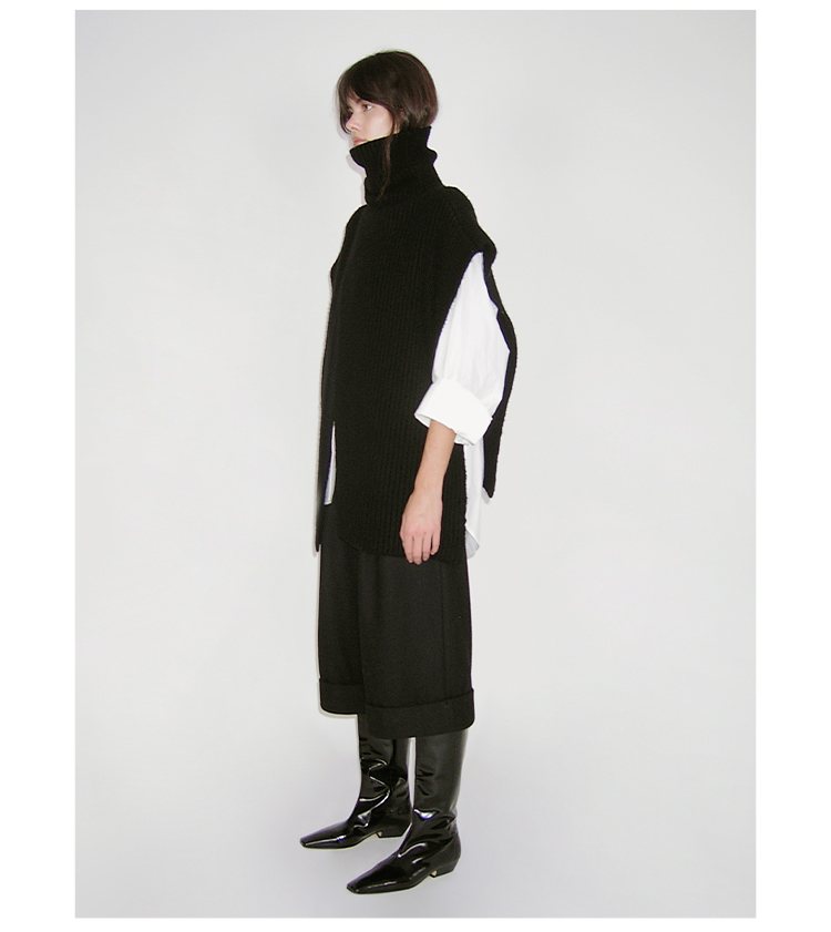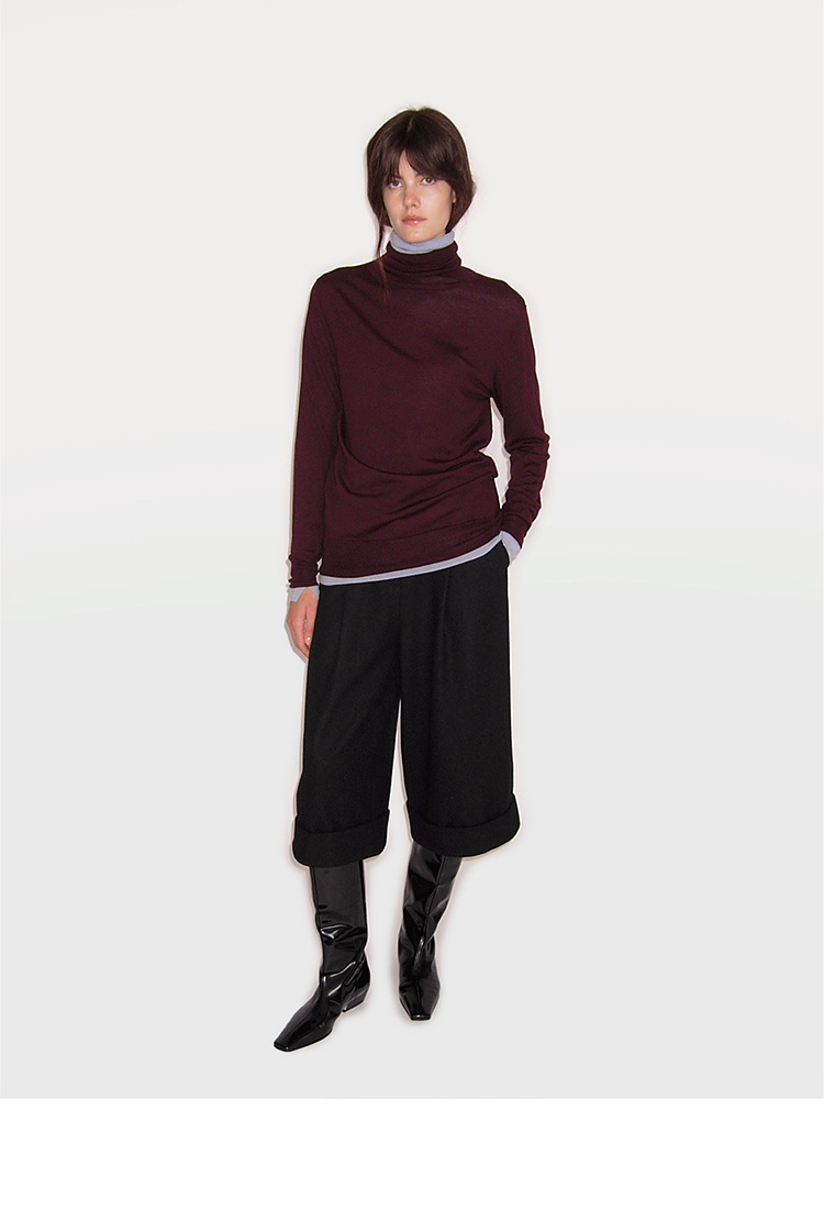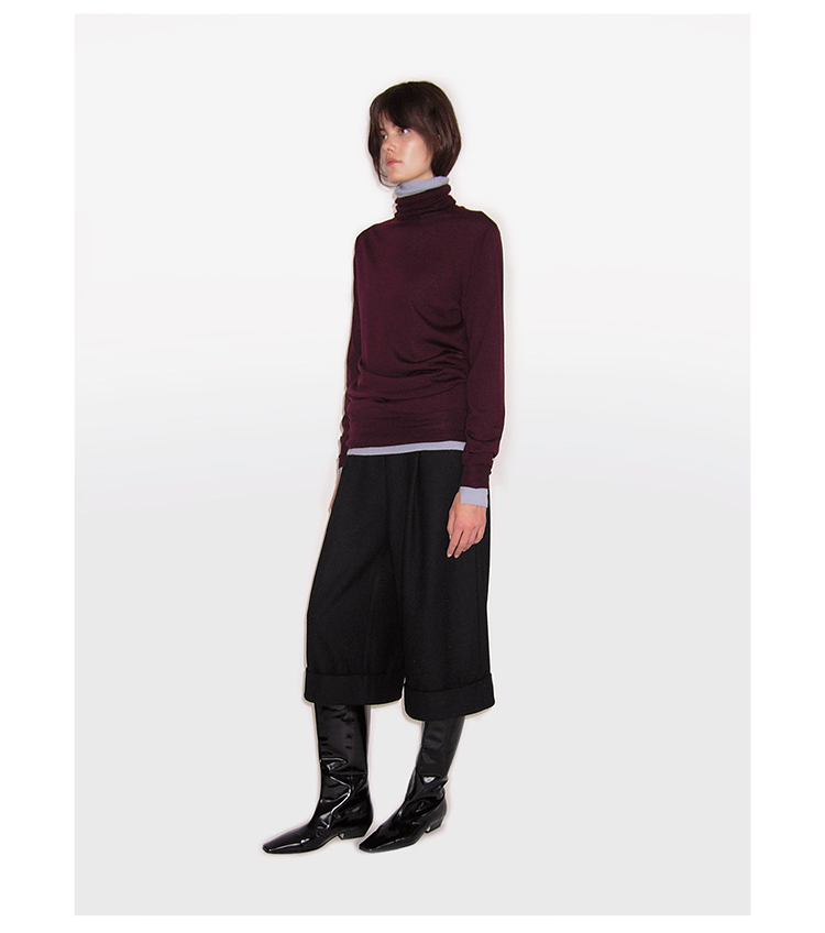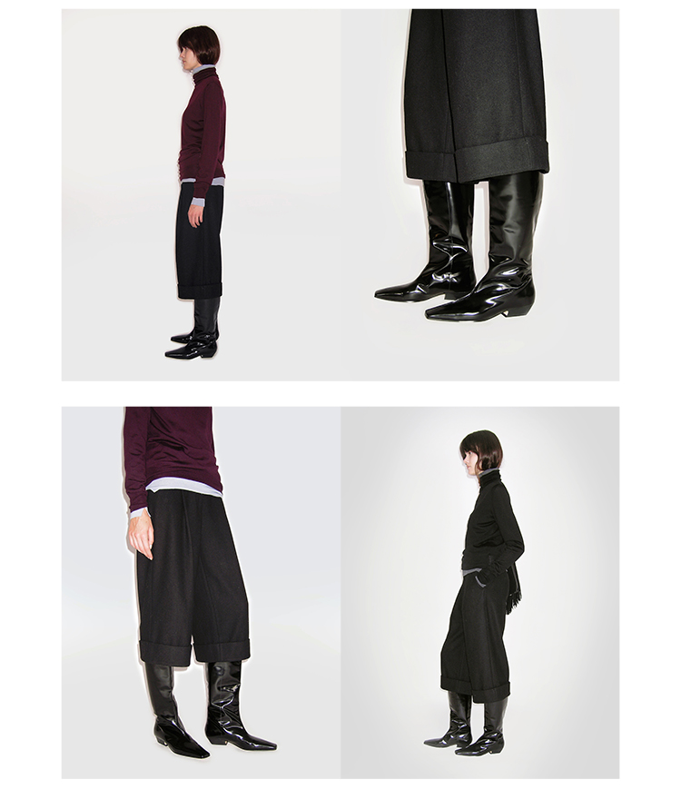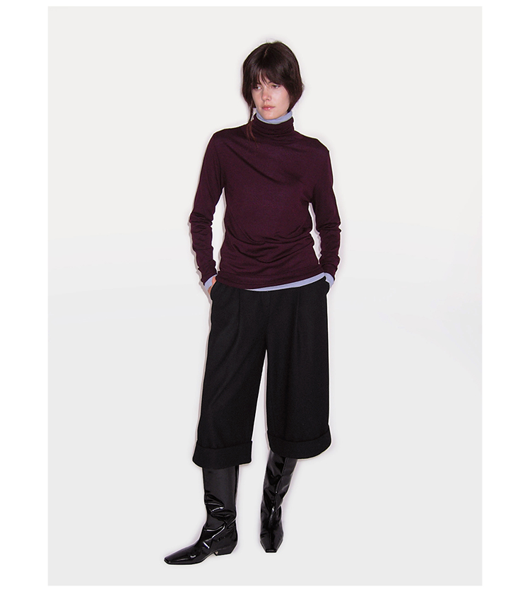 HIDEMI 进口羊毛卷边设计感加厚款宽松阔腿七分裤靴裤