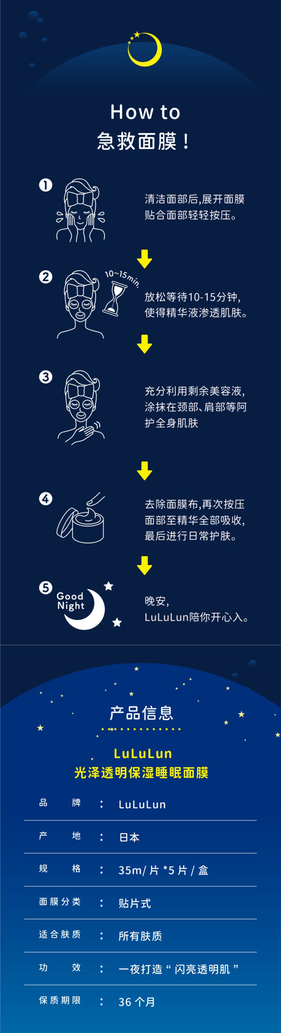 LuLuLun夜间急救补水清透保湿滋润/丰盈滋润日本面膜5片*2盒