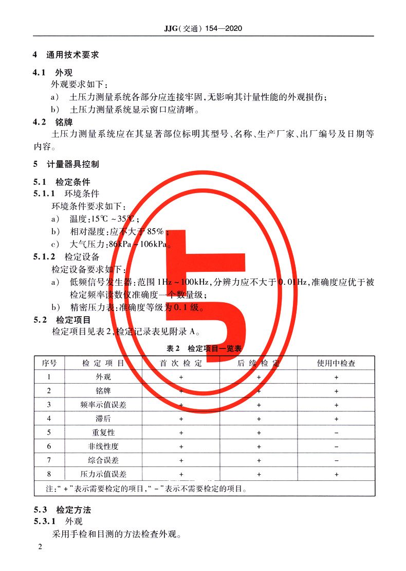 土压力测量系统 JJG(交通)154—2020