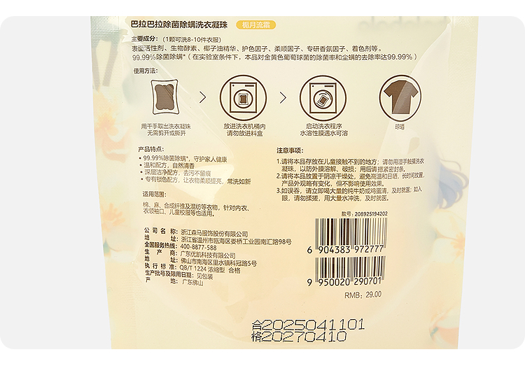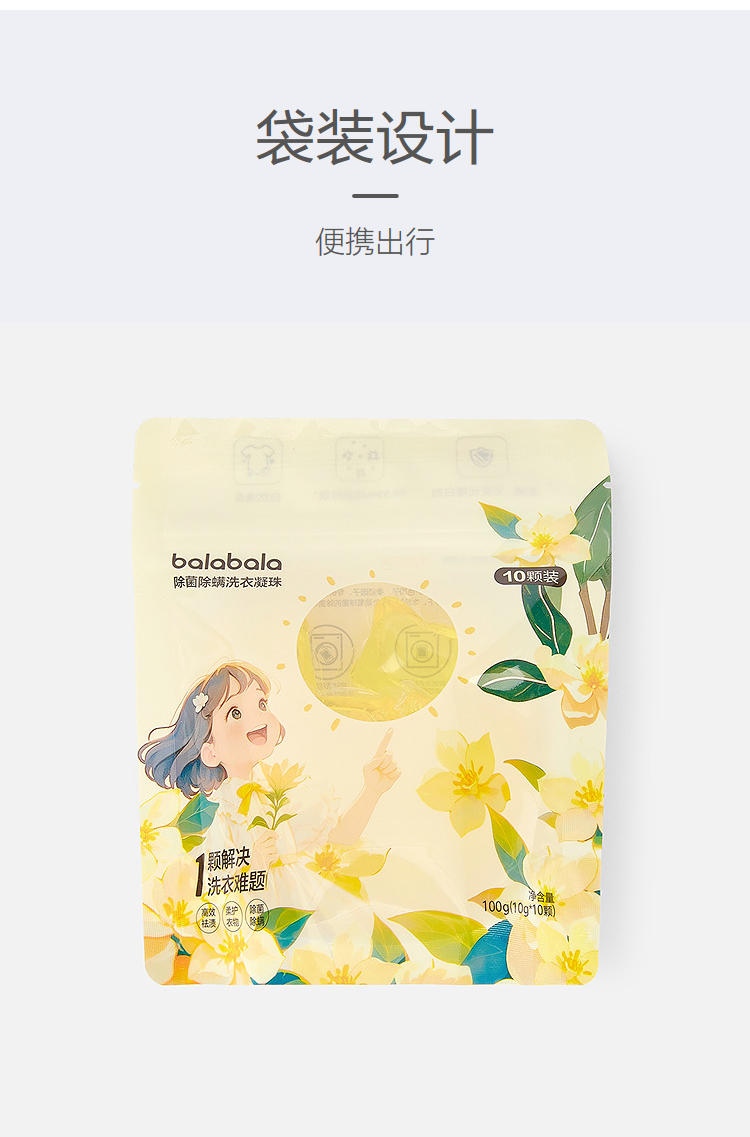 巴拉巴拉儿童抑菌浓缩洗衣凝珠宝宝专用婴幼儿去渍留香洗衣液除螨
