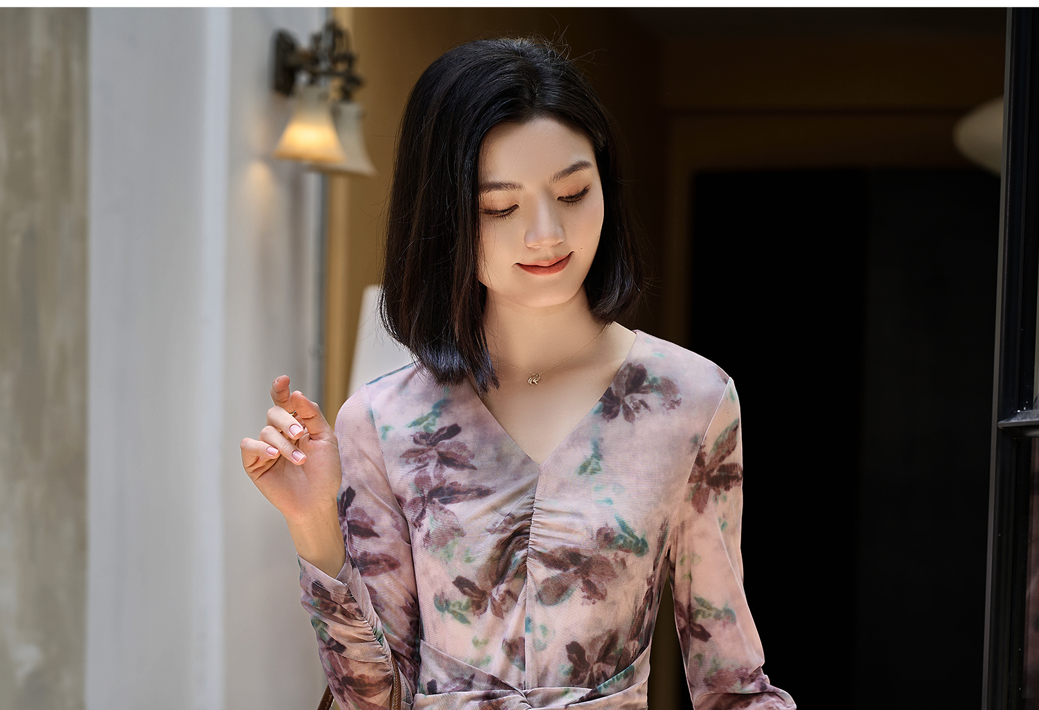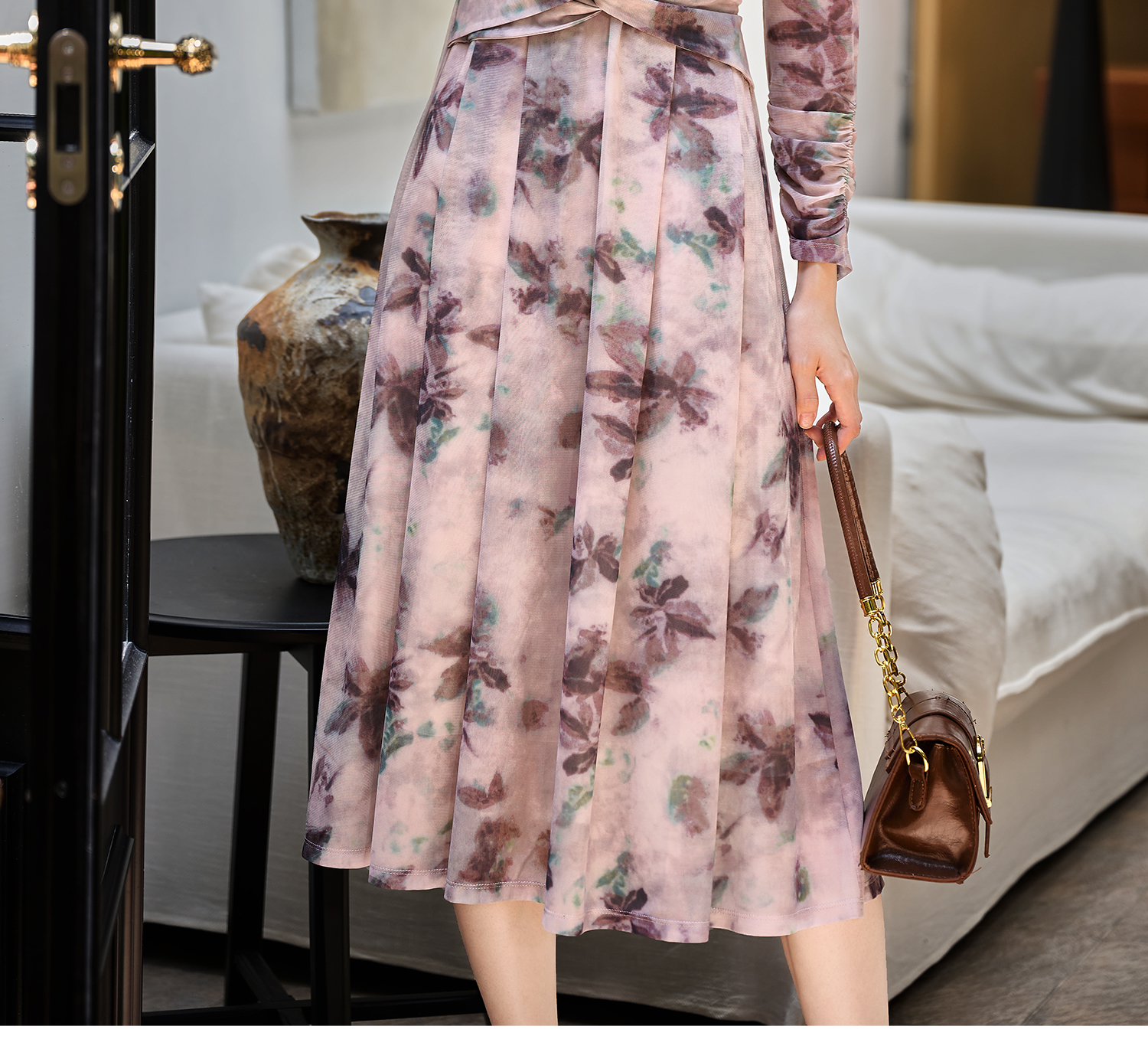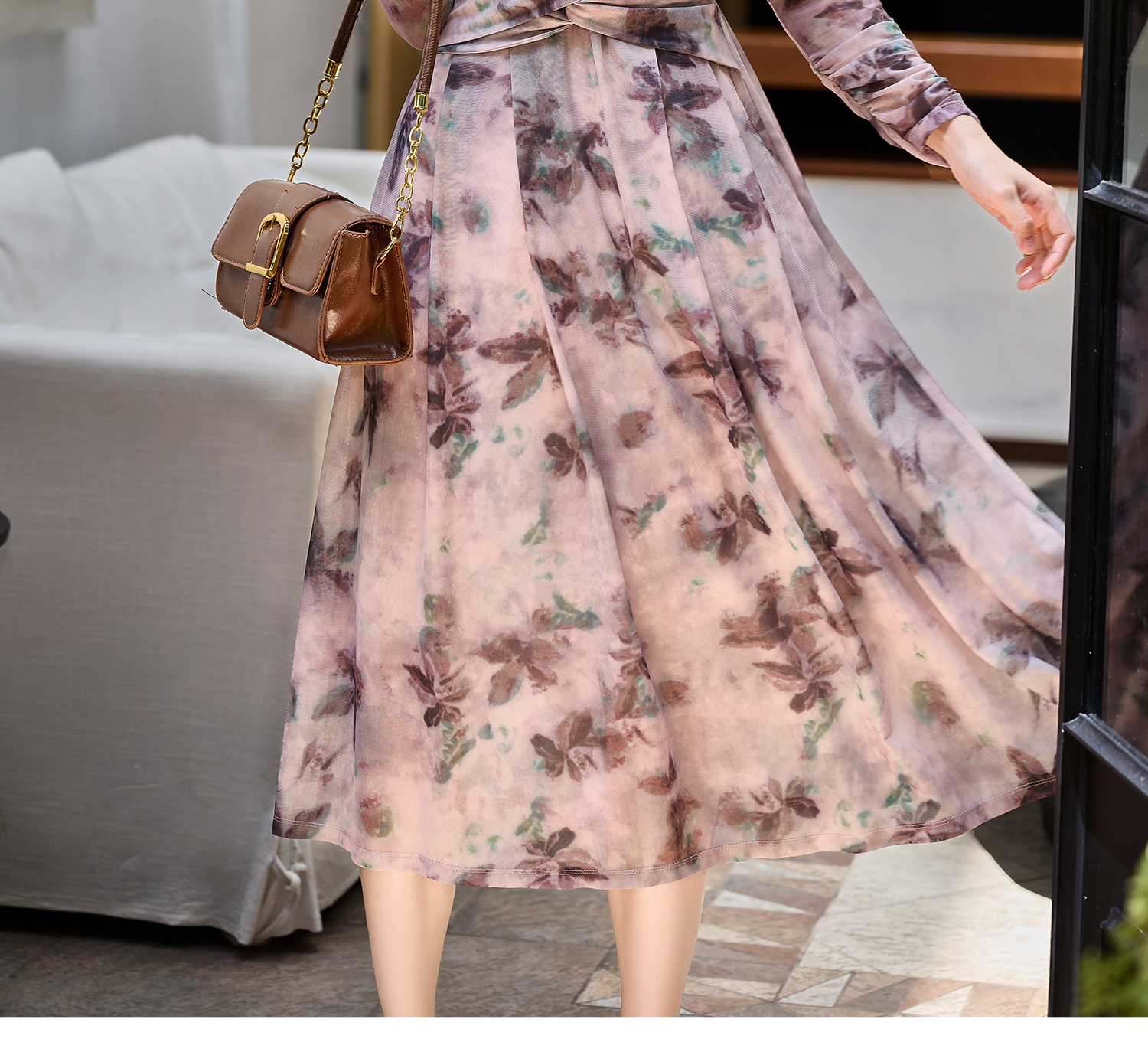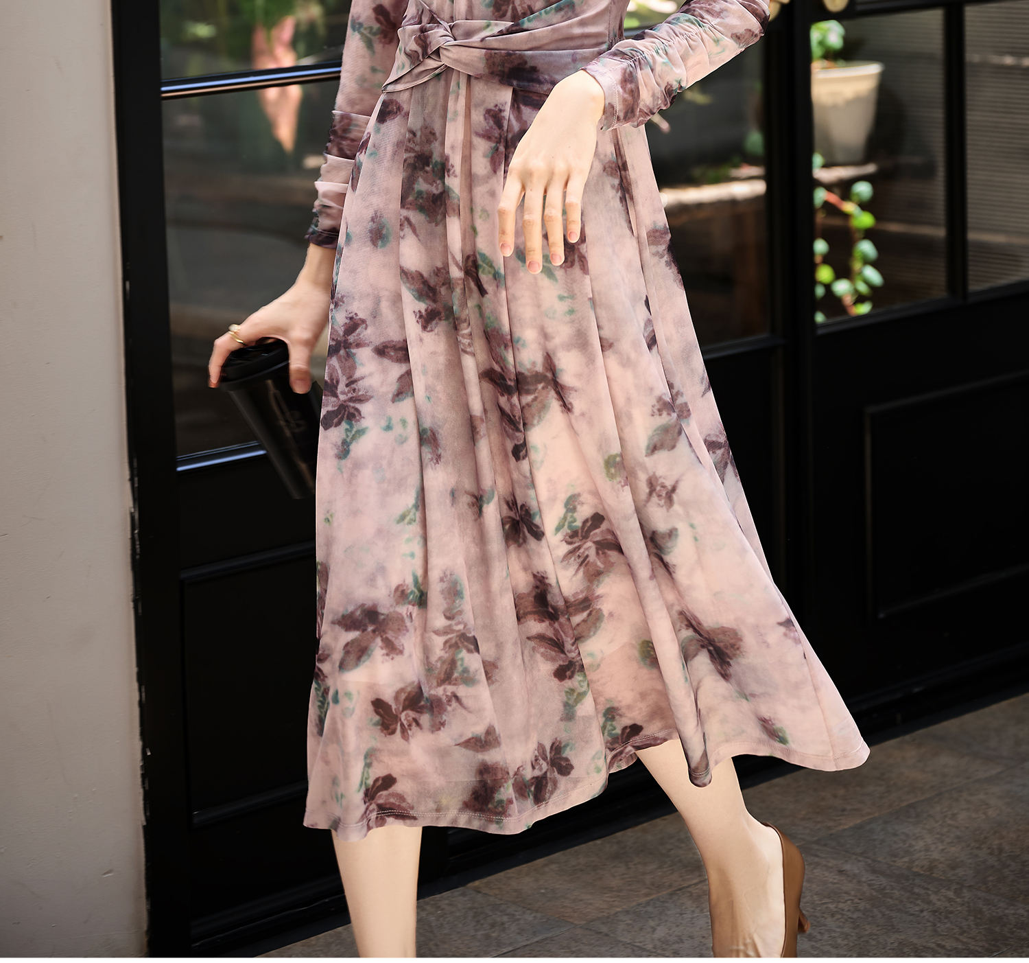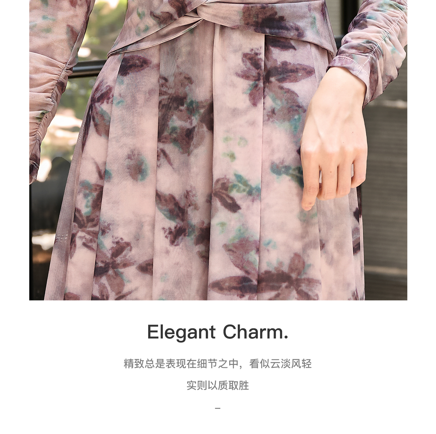剩S/M 米思阳2026春季新款水墨晕染网纱连衣裙气质垂感显瘦茶歇裙女3705