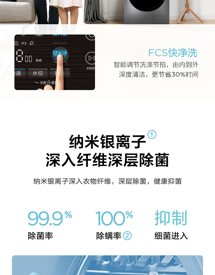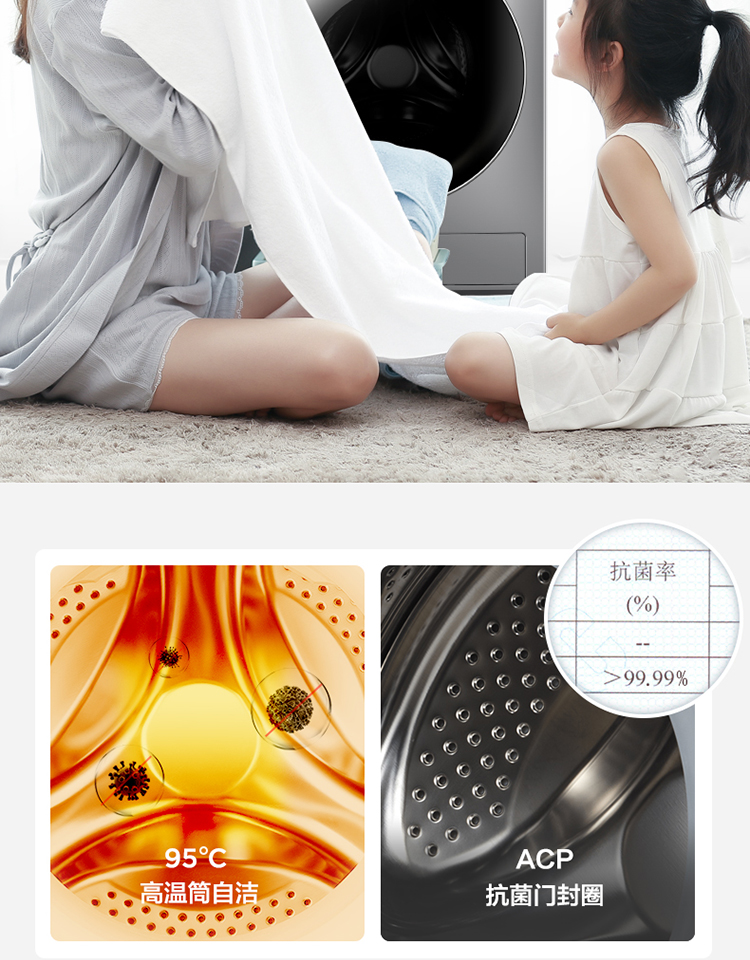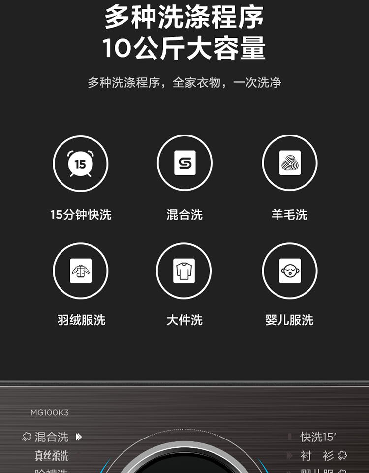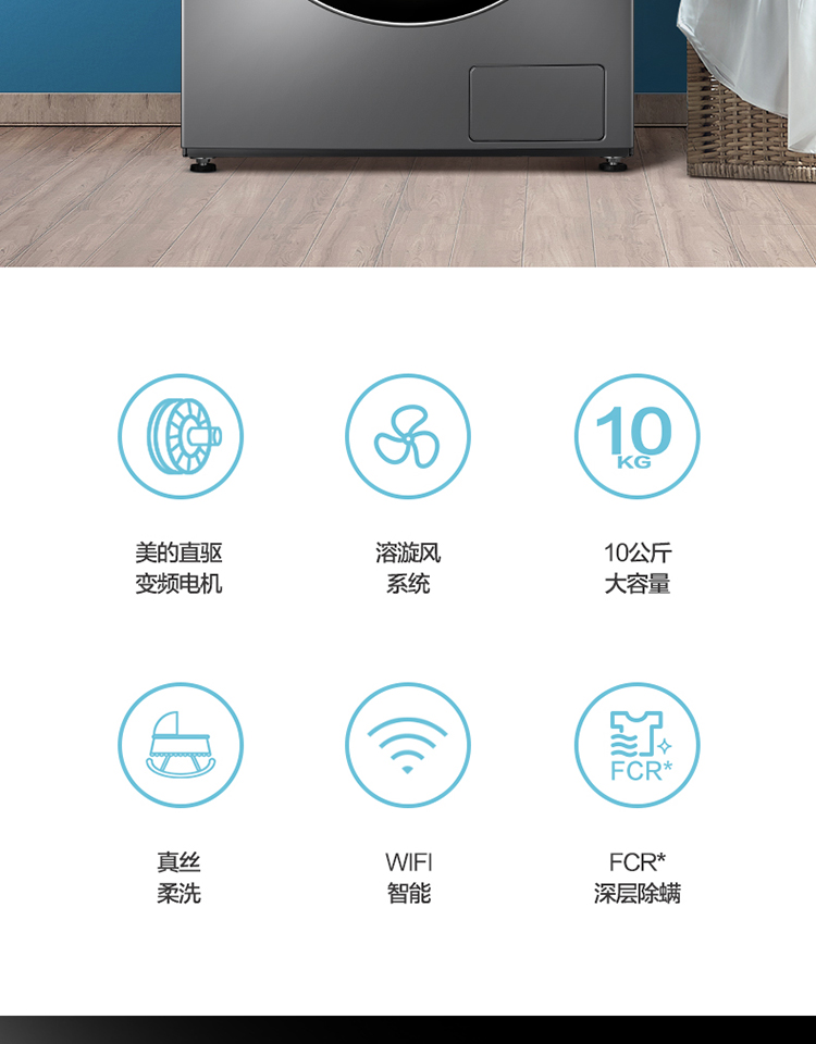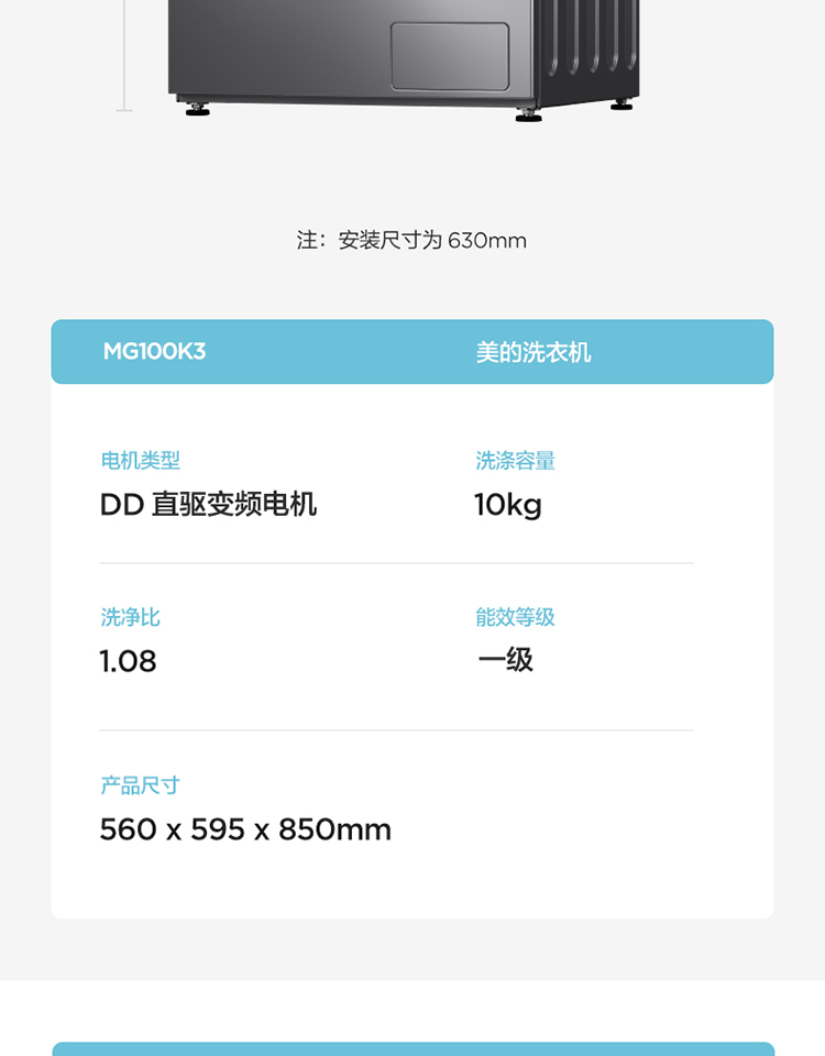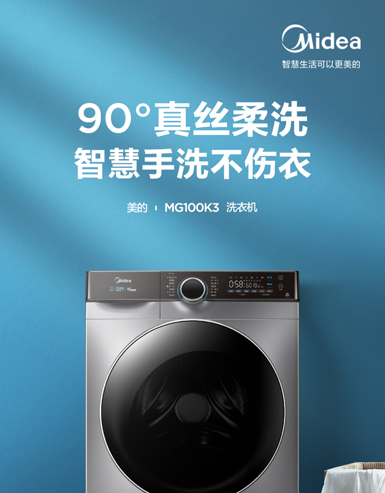 美的(Midea)(251902)滚筒洗衣机全自动 10公斤变频 DD直驱电机 除菌蒸汽洗 智能家电 95度筒自洁 MG100K3