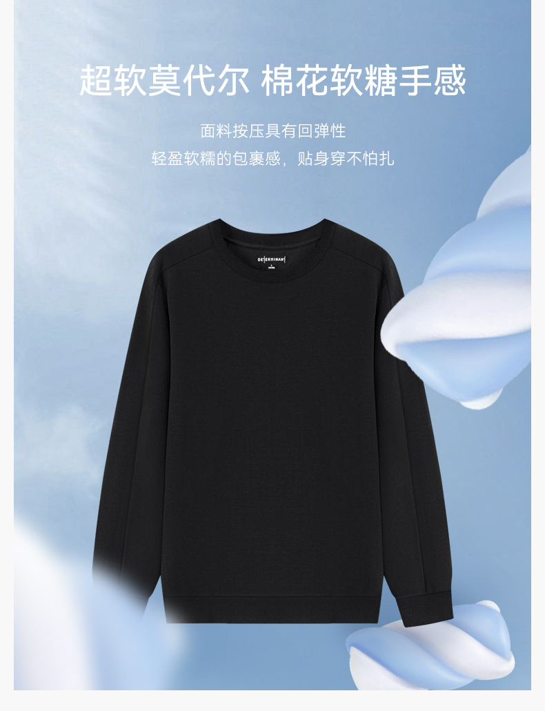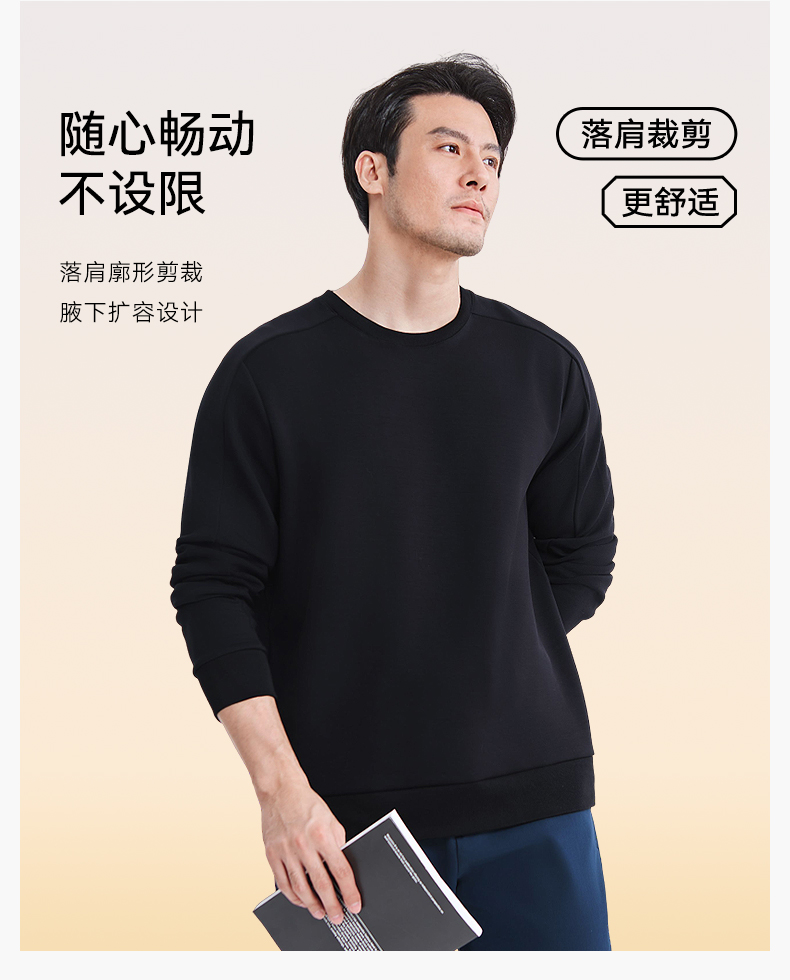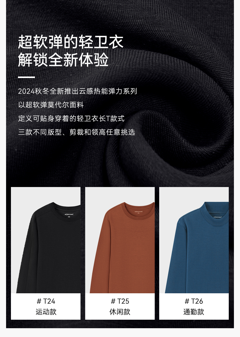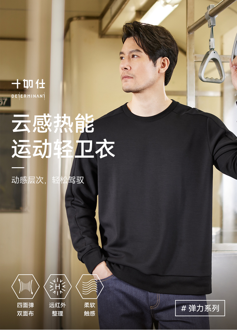 十如仕针织圆领莫代尔四面弹立体剪裁运动轻卫衣-T24