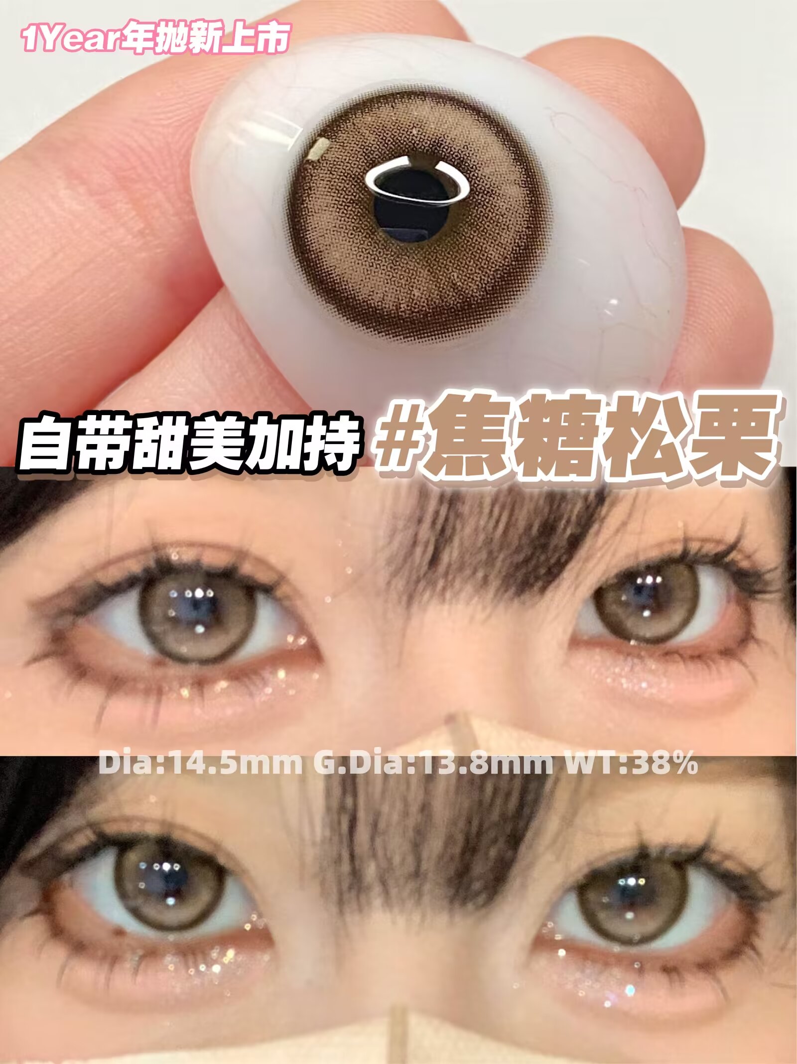 【大直径新品~】Moni Choco焦糖松栗(硅水凝胶)14.5mm 着色13.8mm【年抛】
