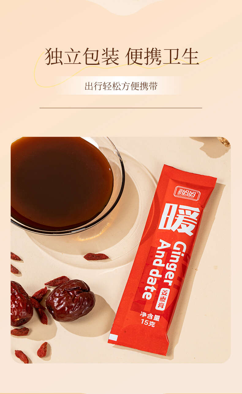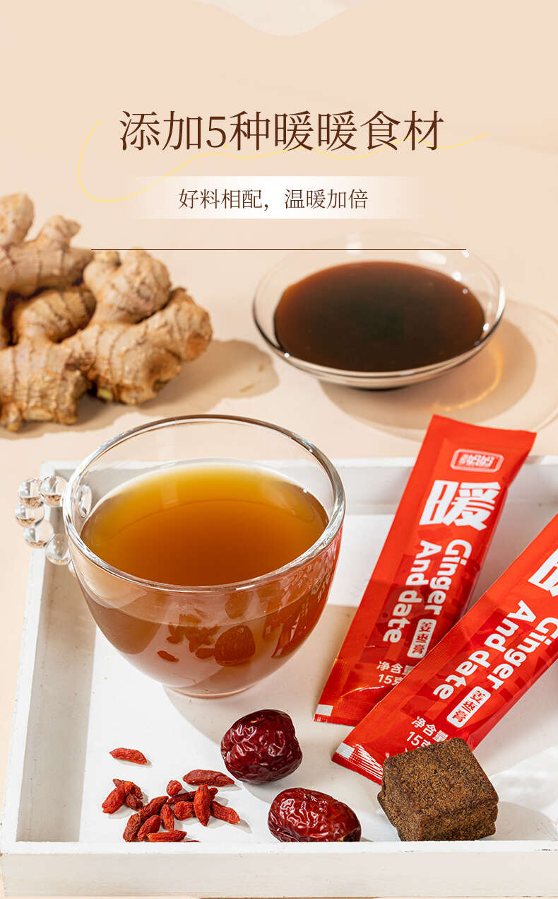 【配料】生姜、红枣、枸杞、重瓣玫瑰、红糖