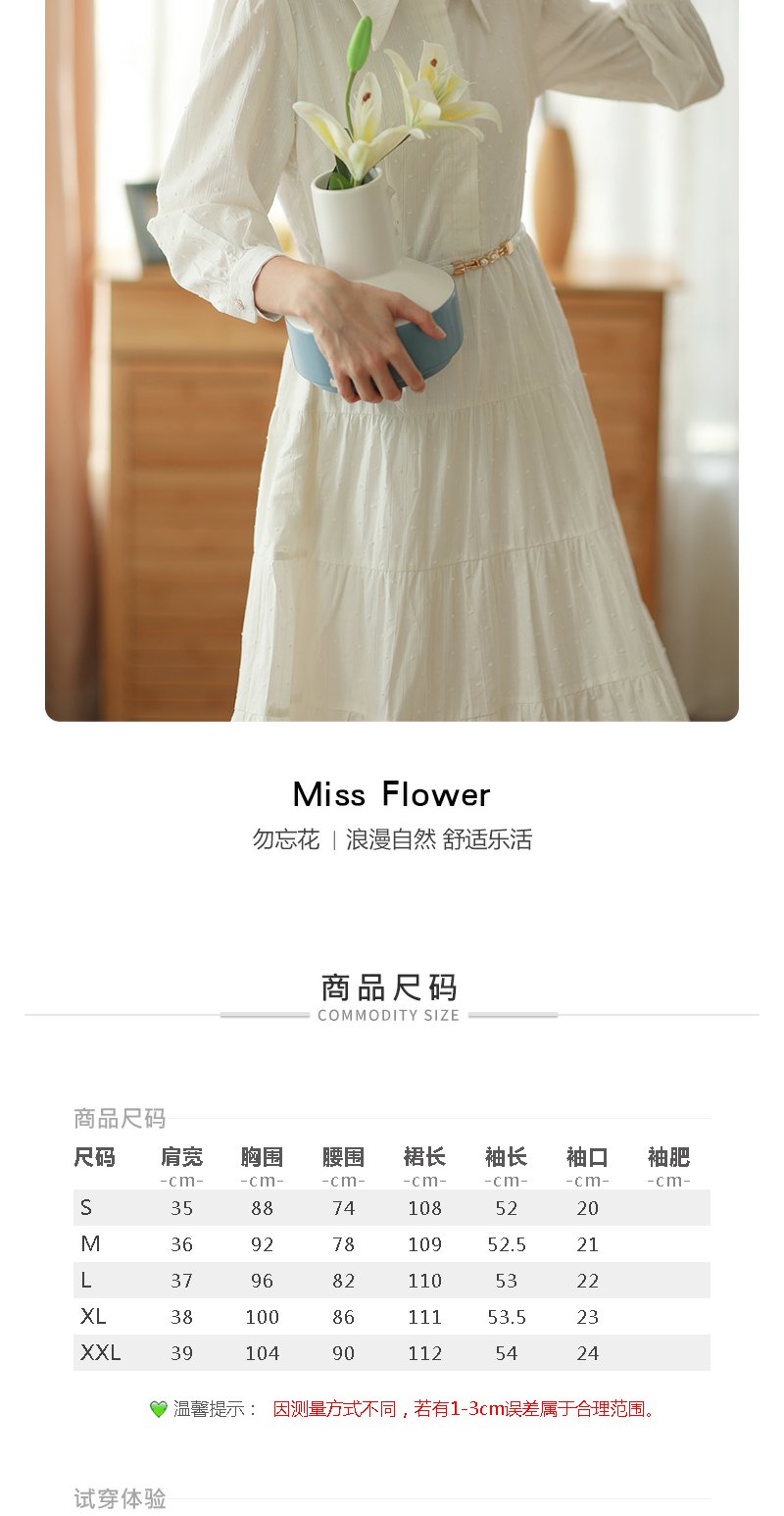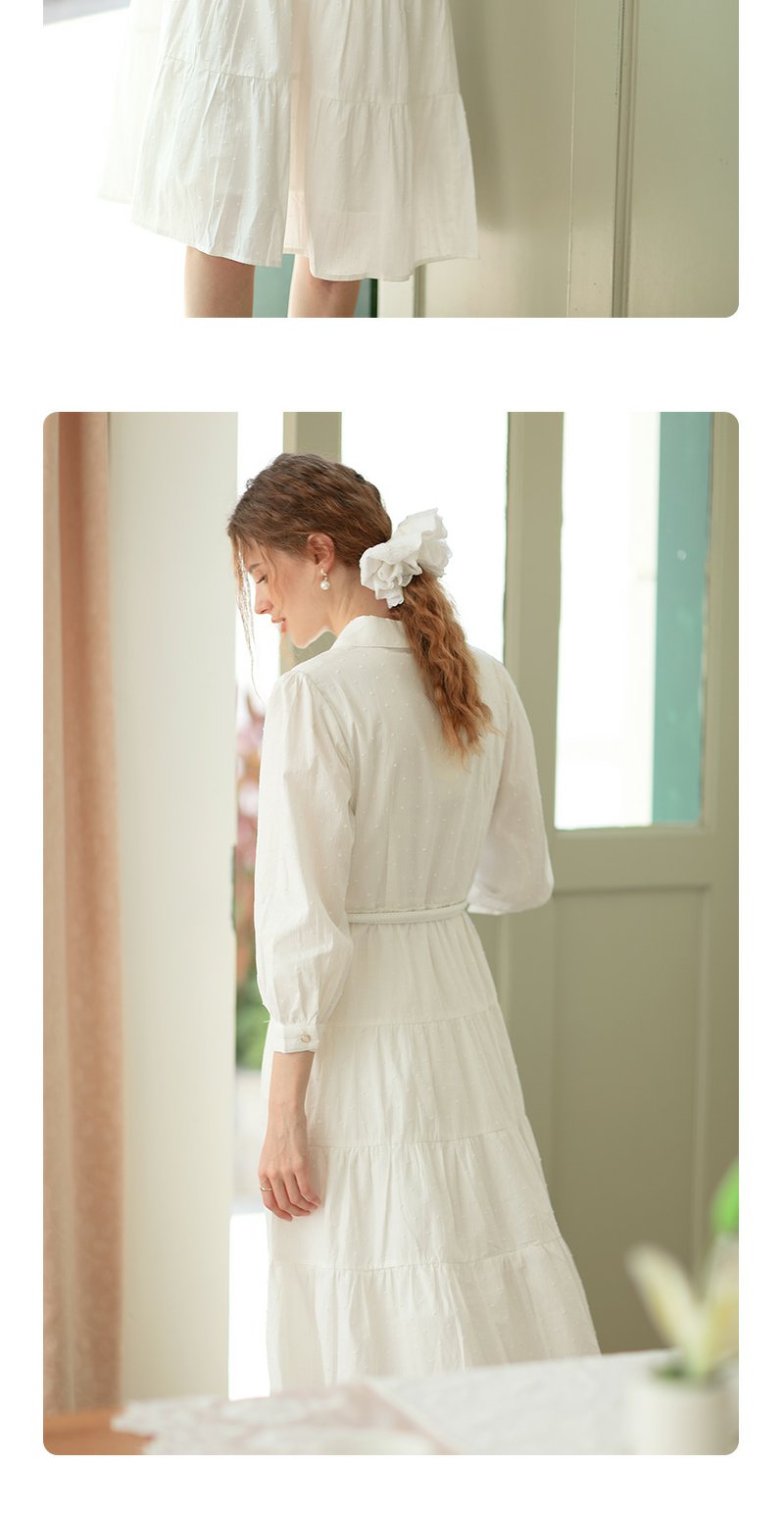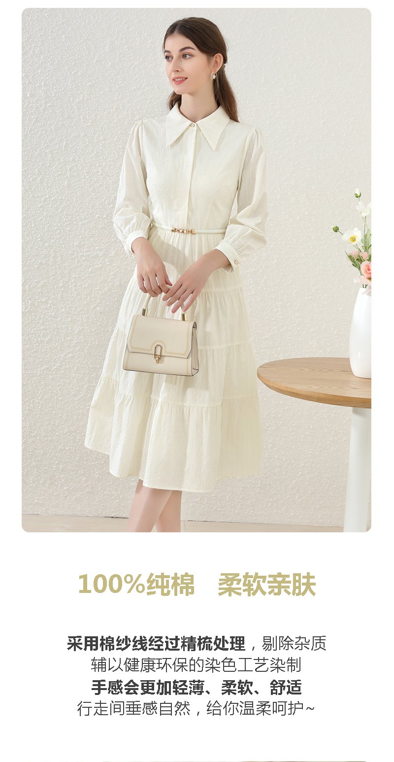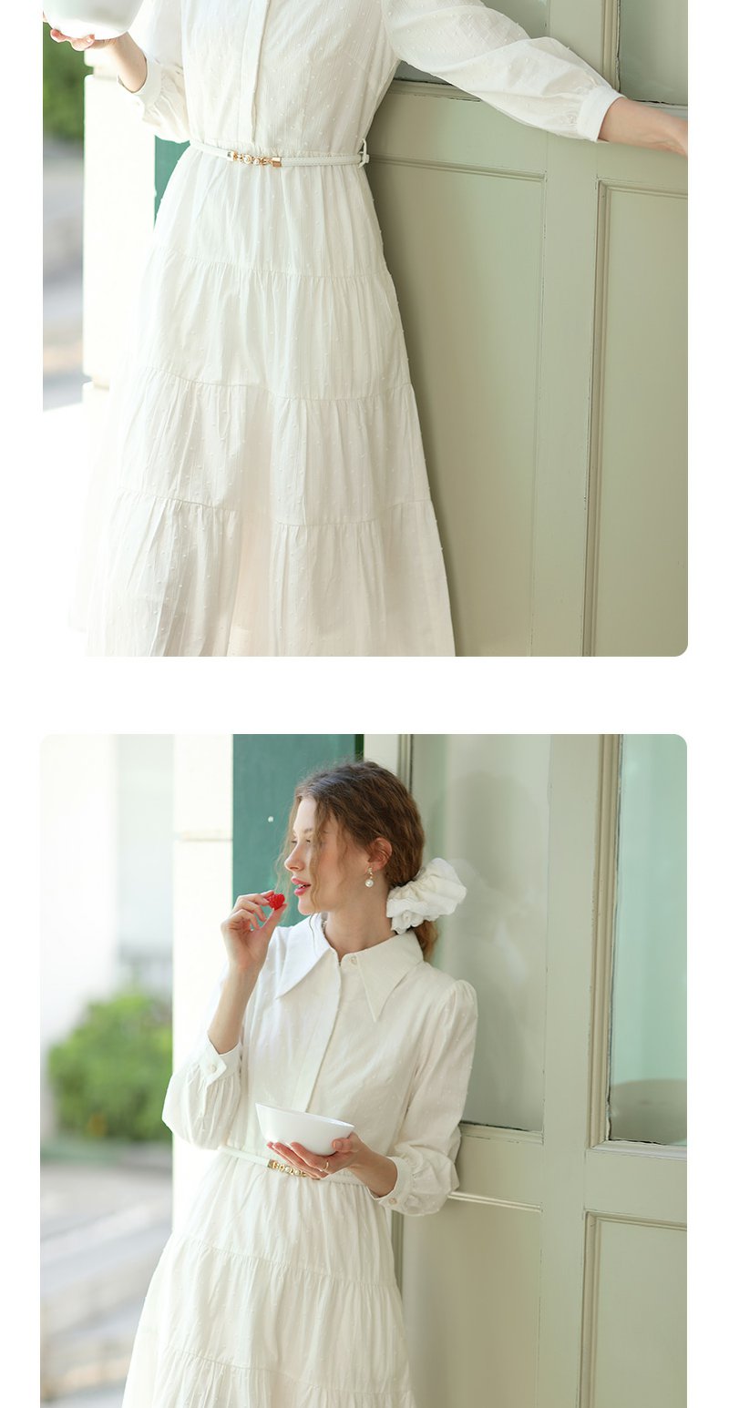 勿忘花米白色纯棉法式衬衫连衣裙春季新款长裙温柔淑女裙子