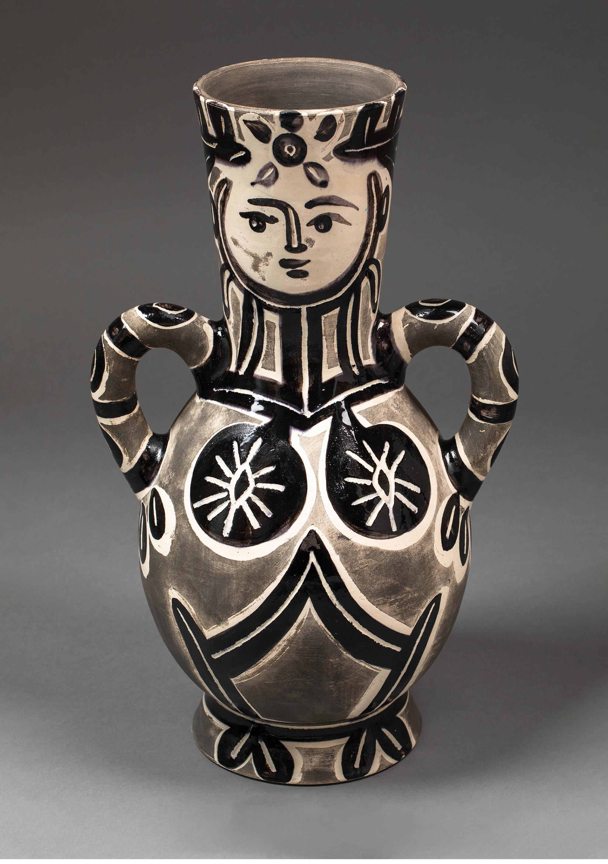 1953年代西班牙艺术巨匠毕加索与法国Madoura工坊合作出品限量装饰陶瓶「Vase deux Anses Hautes (A.R.213) 双高耳壶 213」