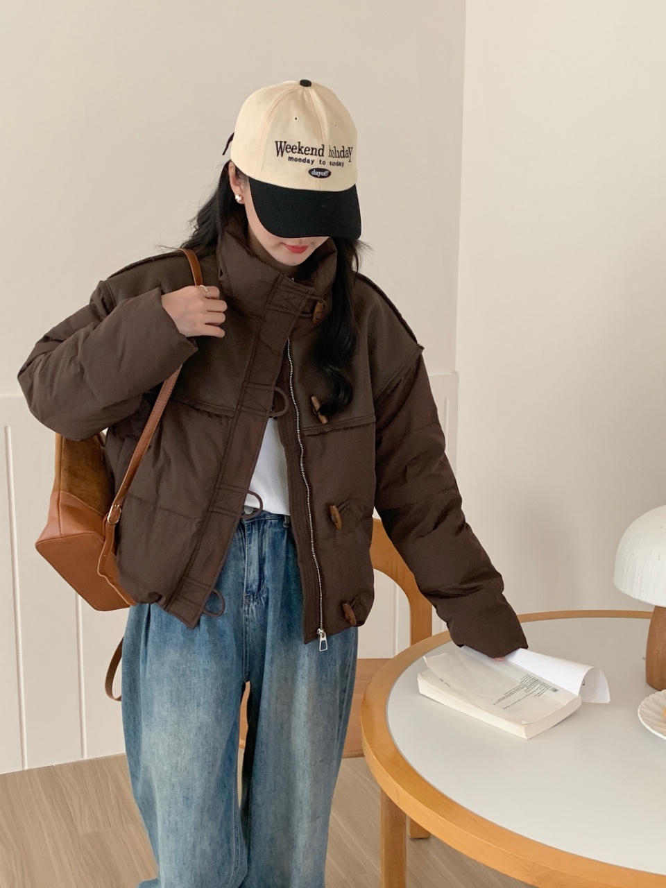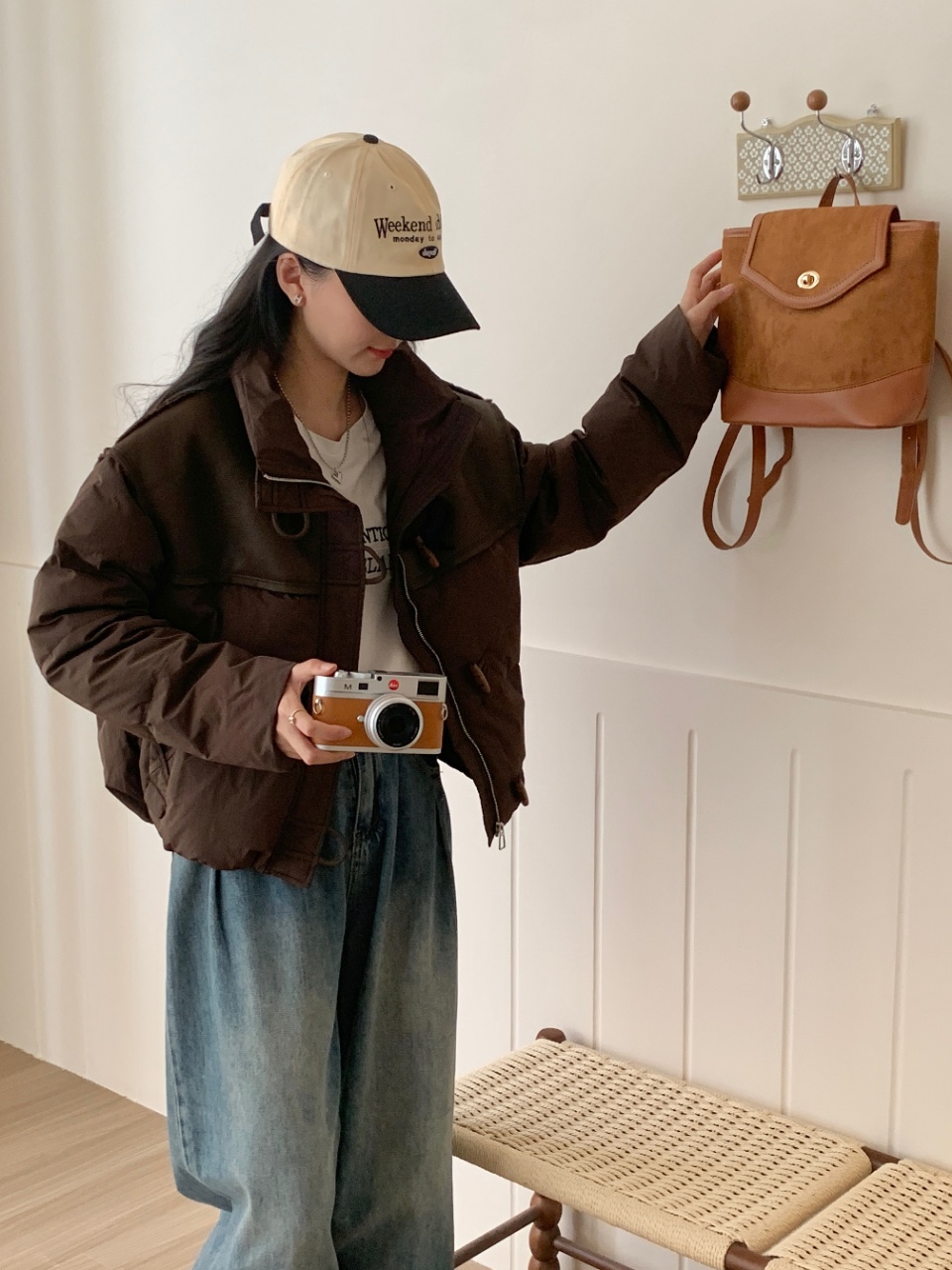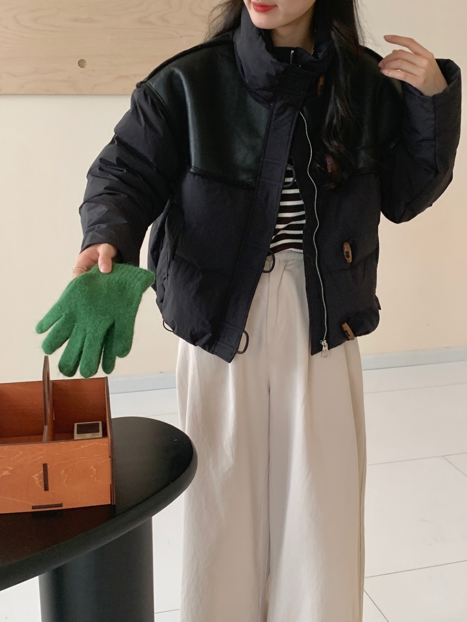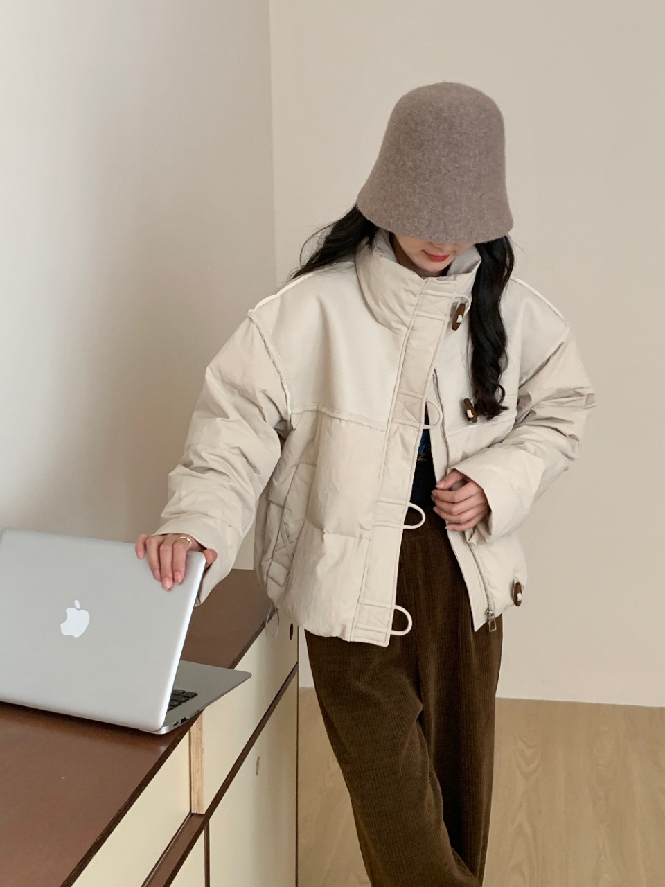【YW】无忧购“清仓福利”韩版简约小众设计感50%白鸭绒立领拼皮羽绒外套2408(截单后7天发货)25年清仓捡漏