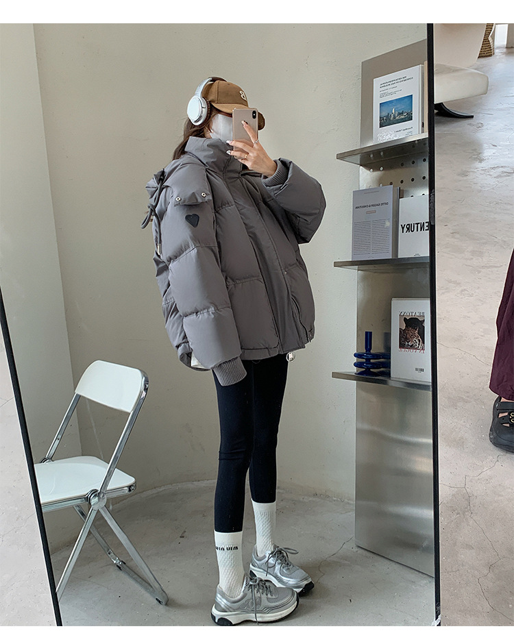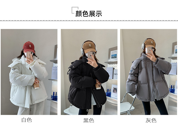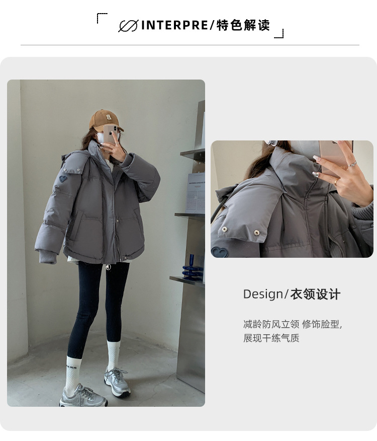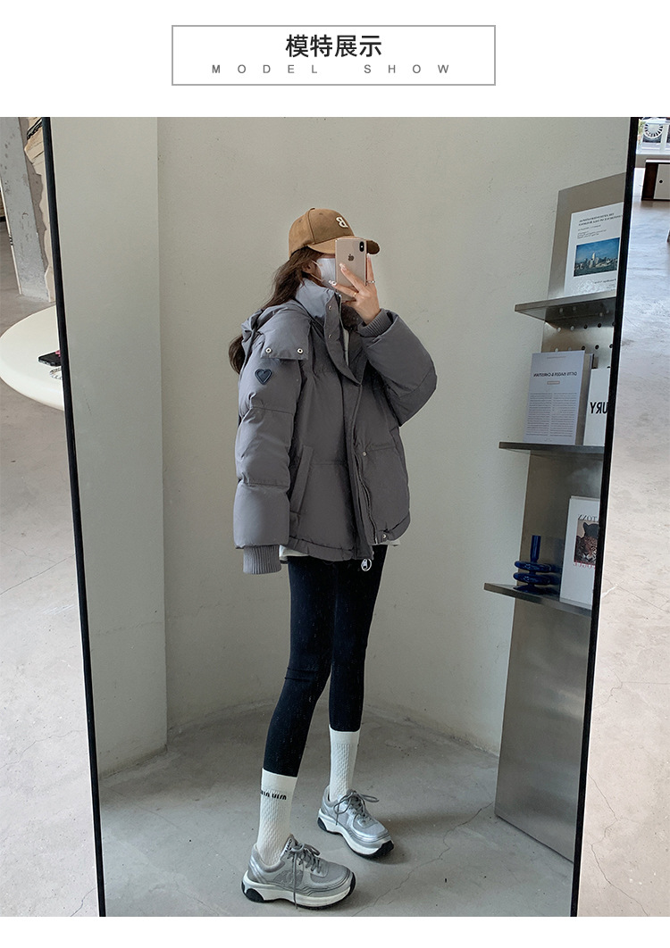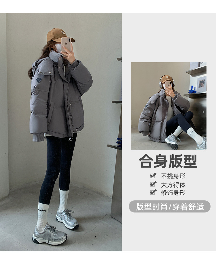棉衣女冬季新款韩版灰色小爱心短款羽绒棉服学生款大码面包服
