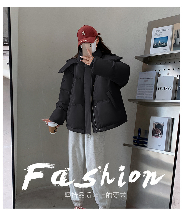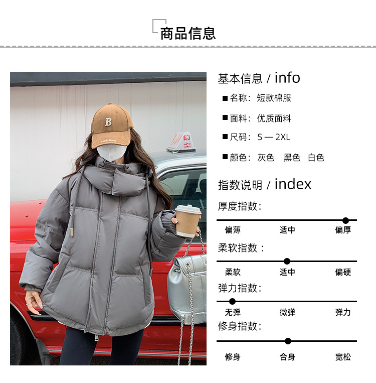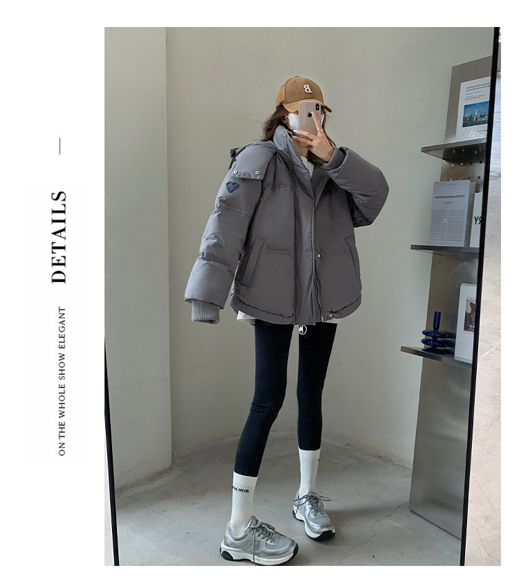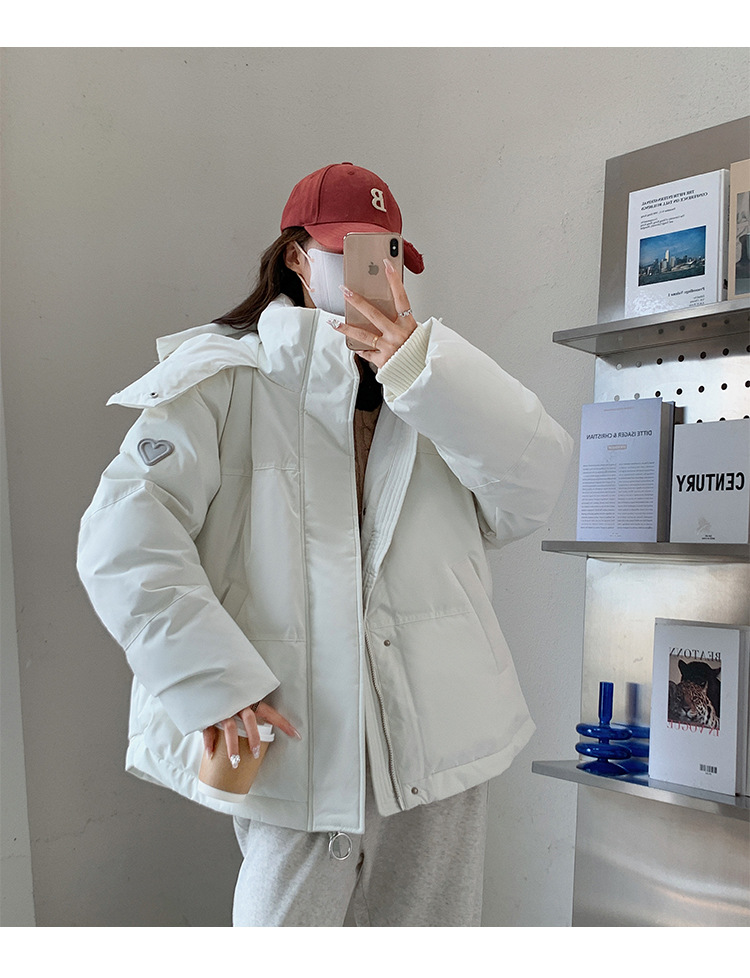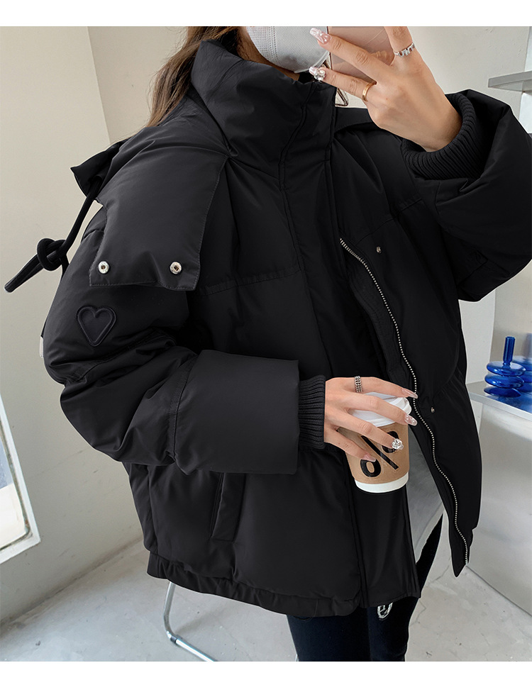 棉衣女冬季新款韩版灰色小爱心短款羽绒棉服学生款大码面包服