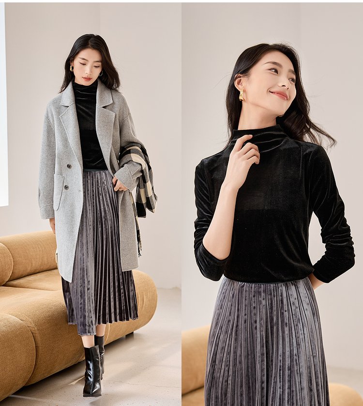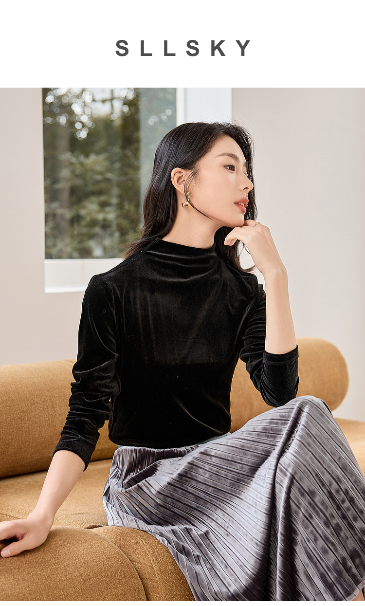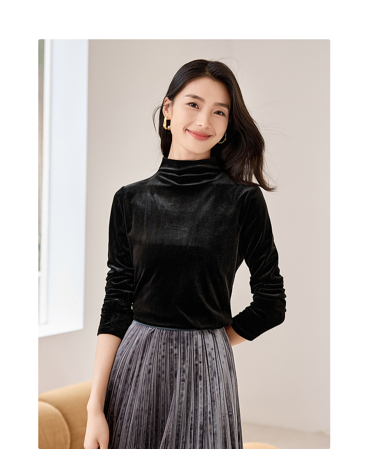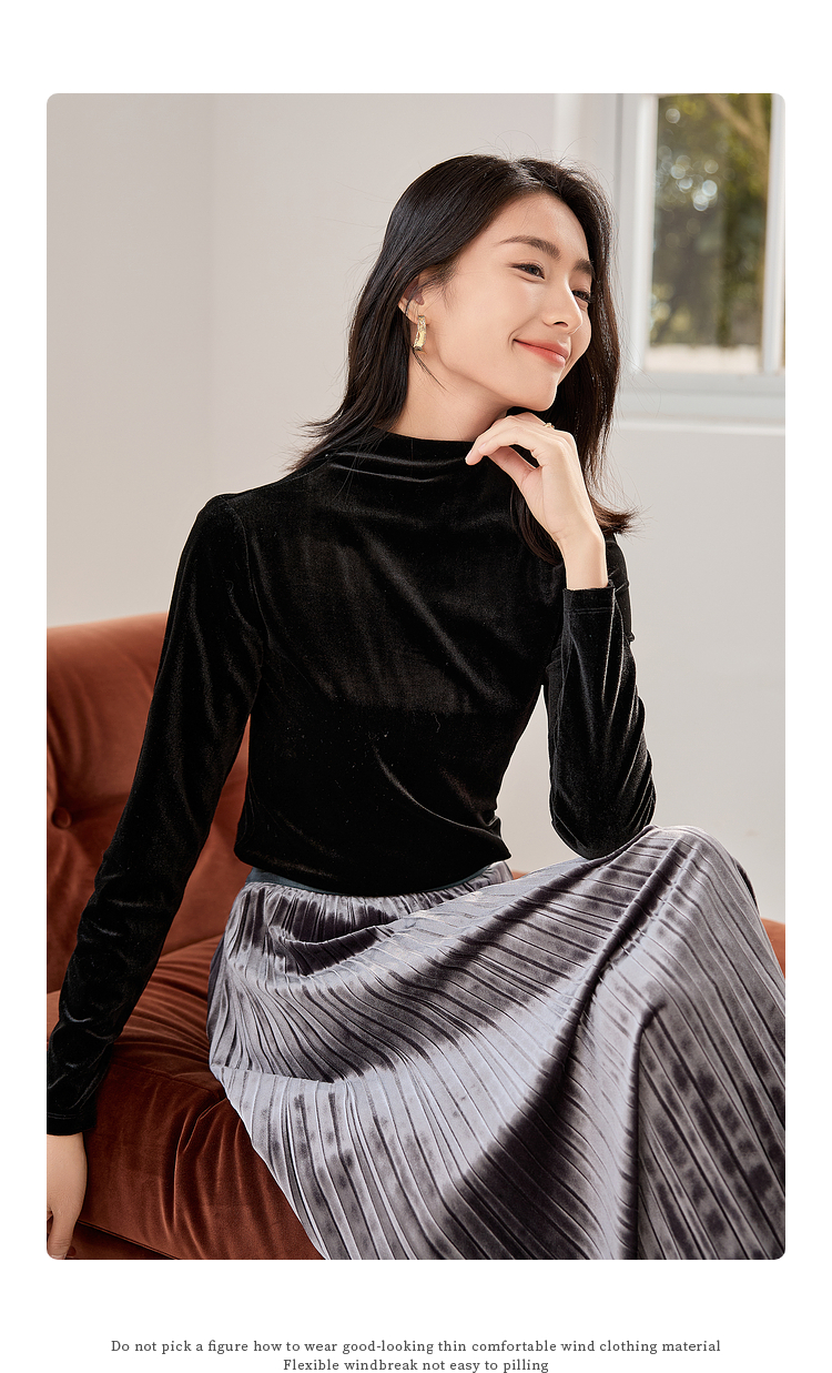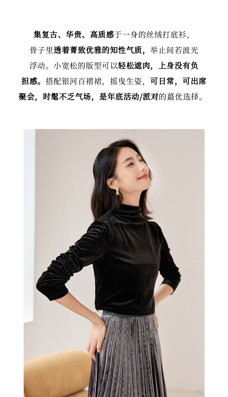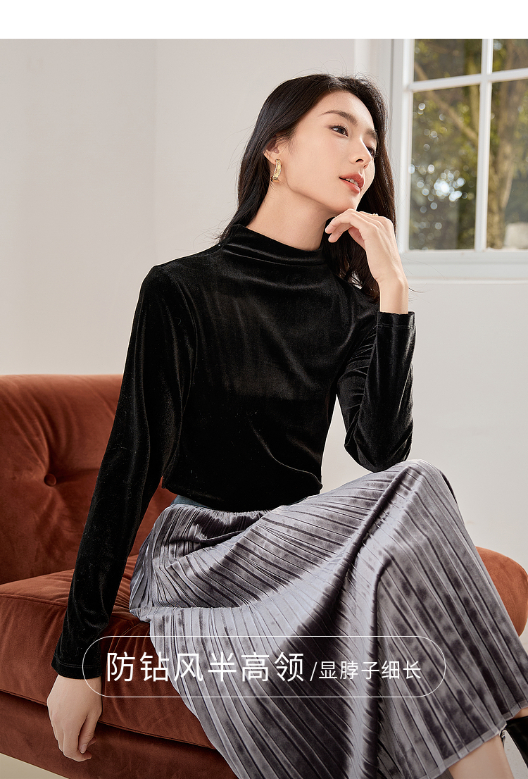【年终特卖】熙世界半高领金丝绒打底小衫T恤秋冬2025新款洋气内搭保暖上衣