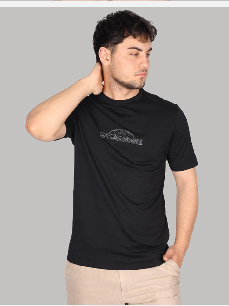 EMPORIO ARMANI 阿玛尼 男士徽标刺绣棉质圆领短袖T恤 海蓝色 3D1TG8 1JOCZ 09Q5