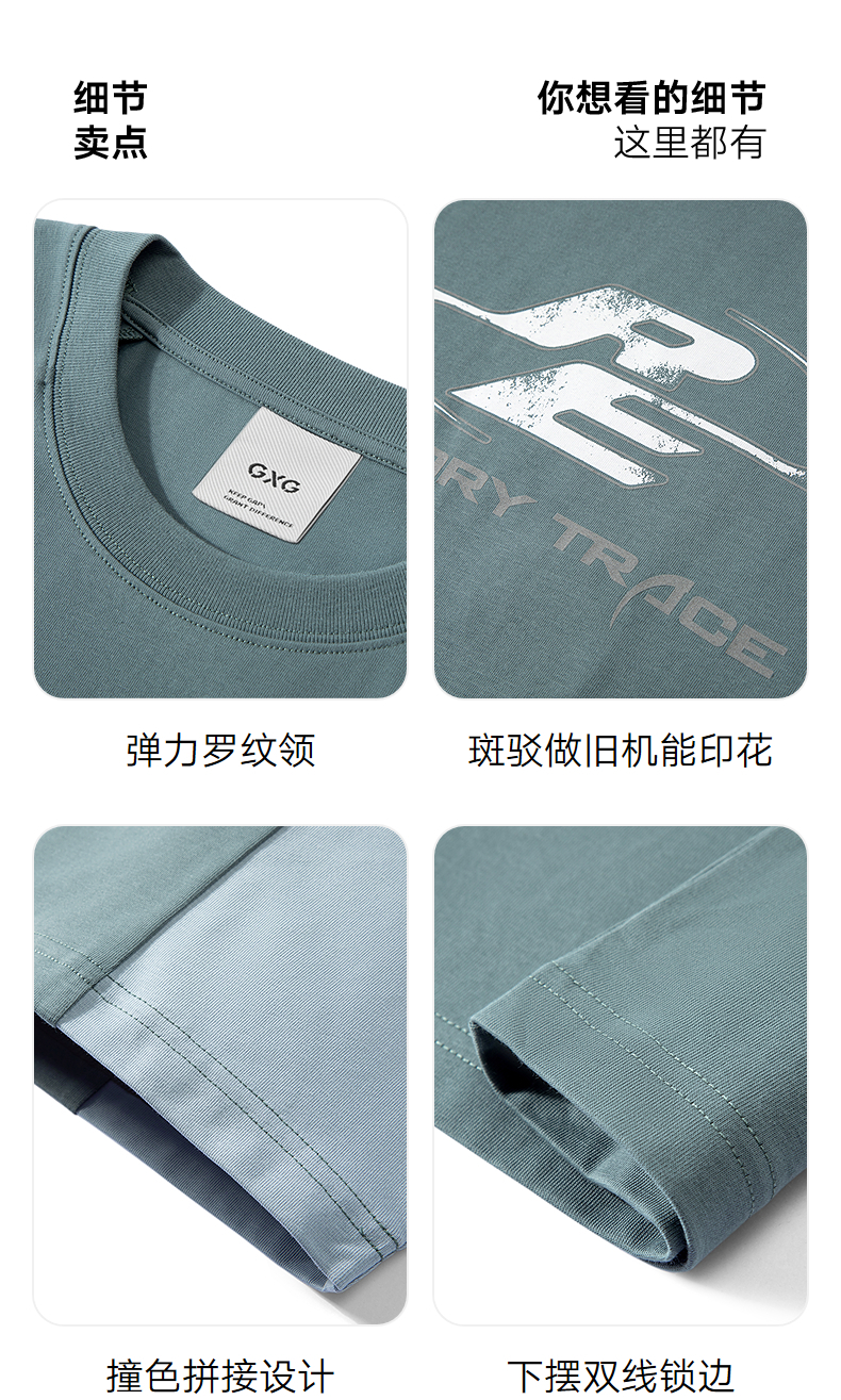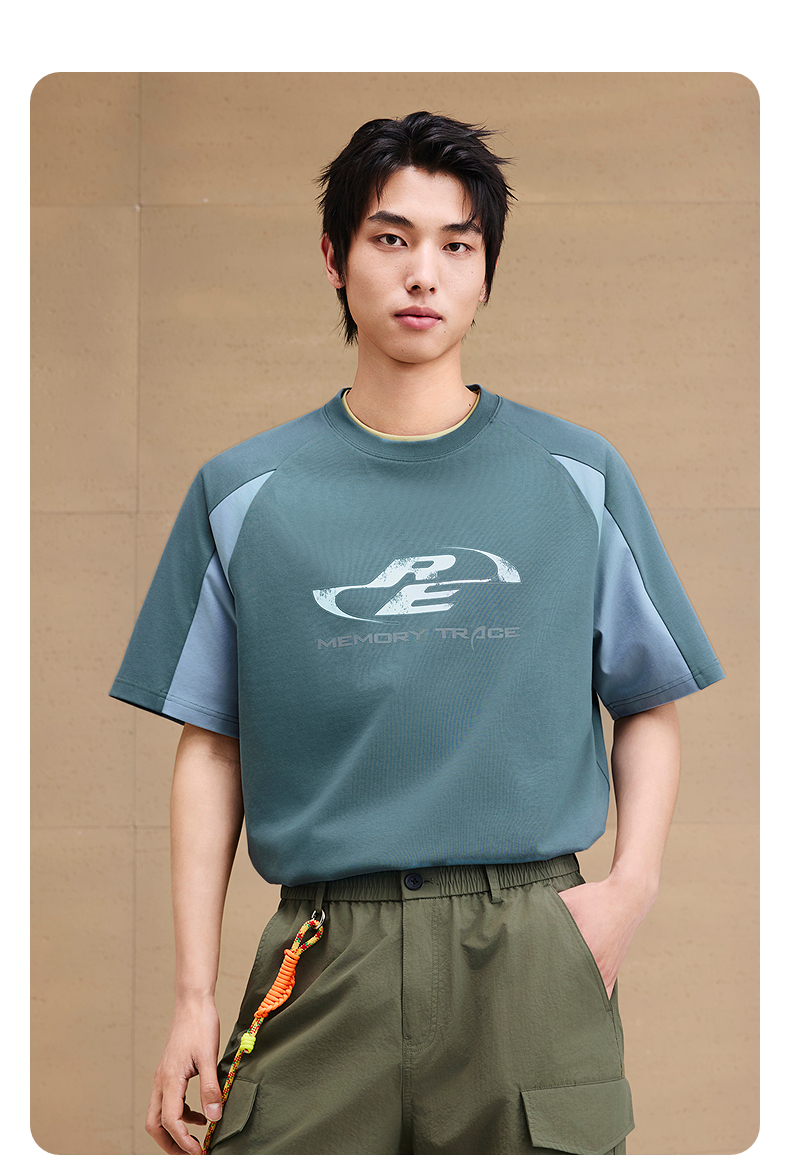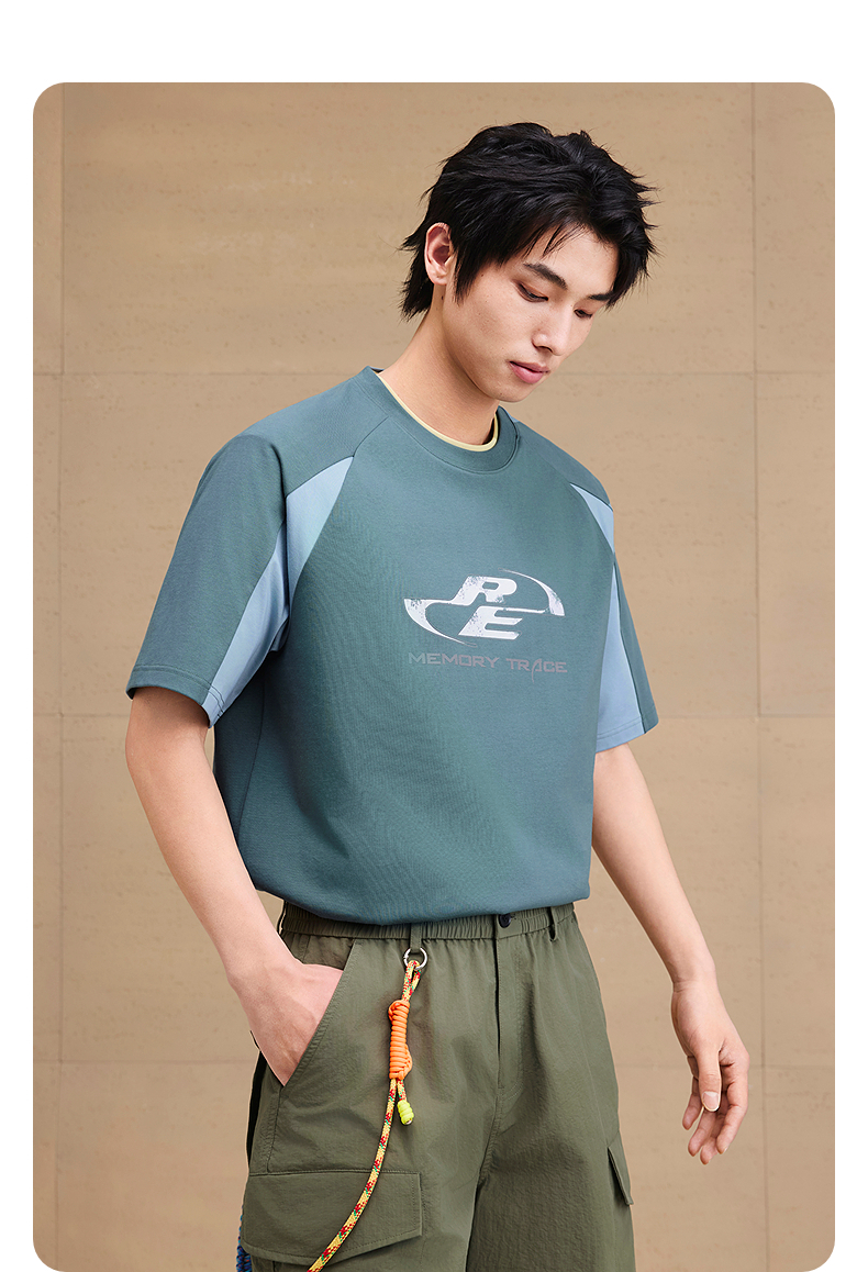GXG男装 圆领T恤撞色拼接图案印花上衣凉感短袖针织 2025夏季热卖
